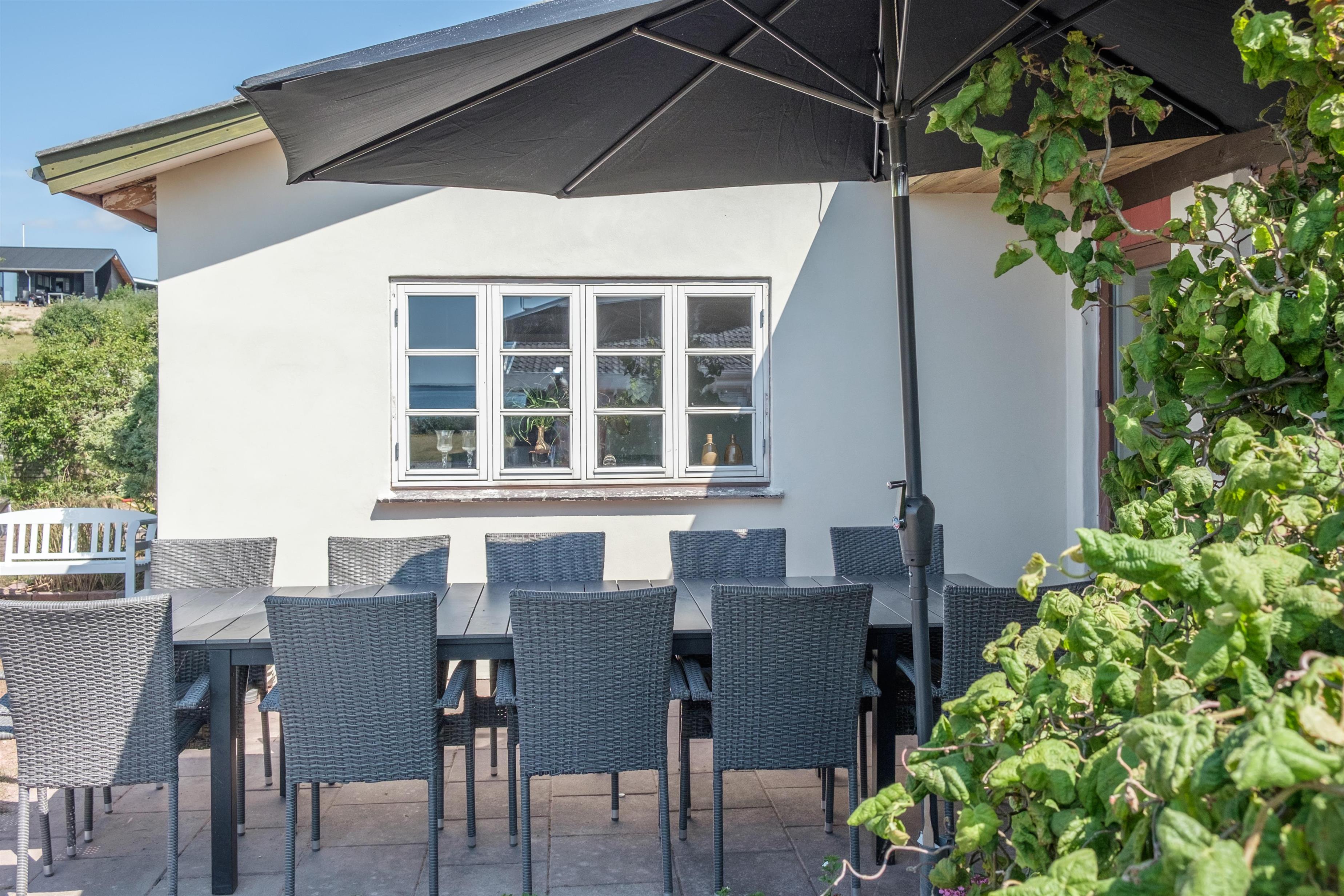 Neu renoviertes älteres Ferienhaus mit Panoramablick auf die Bucht Ebeltoft Vig, nur 100 m vom kinderfreundlichen Sandstrand bei Egsmark Strand entfernt. Ein sehr geräumiges und gut eingerichtetes Haus auf einem abgeschirmten Grundstück mit gemütlicher Laube und Fliesenterrasse mit Meeresblick. Außerdem verfügt das Haus über einen Aussichtsbalkon mit Zugang vom Wohnzimmer im 1. Stock. Gute Gartenmöbel, Liegestühle, Sonnenschirm und Grill.
