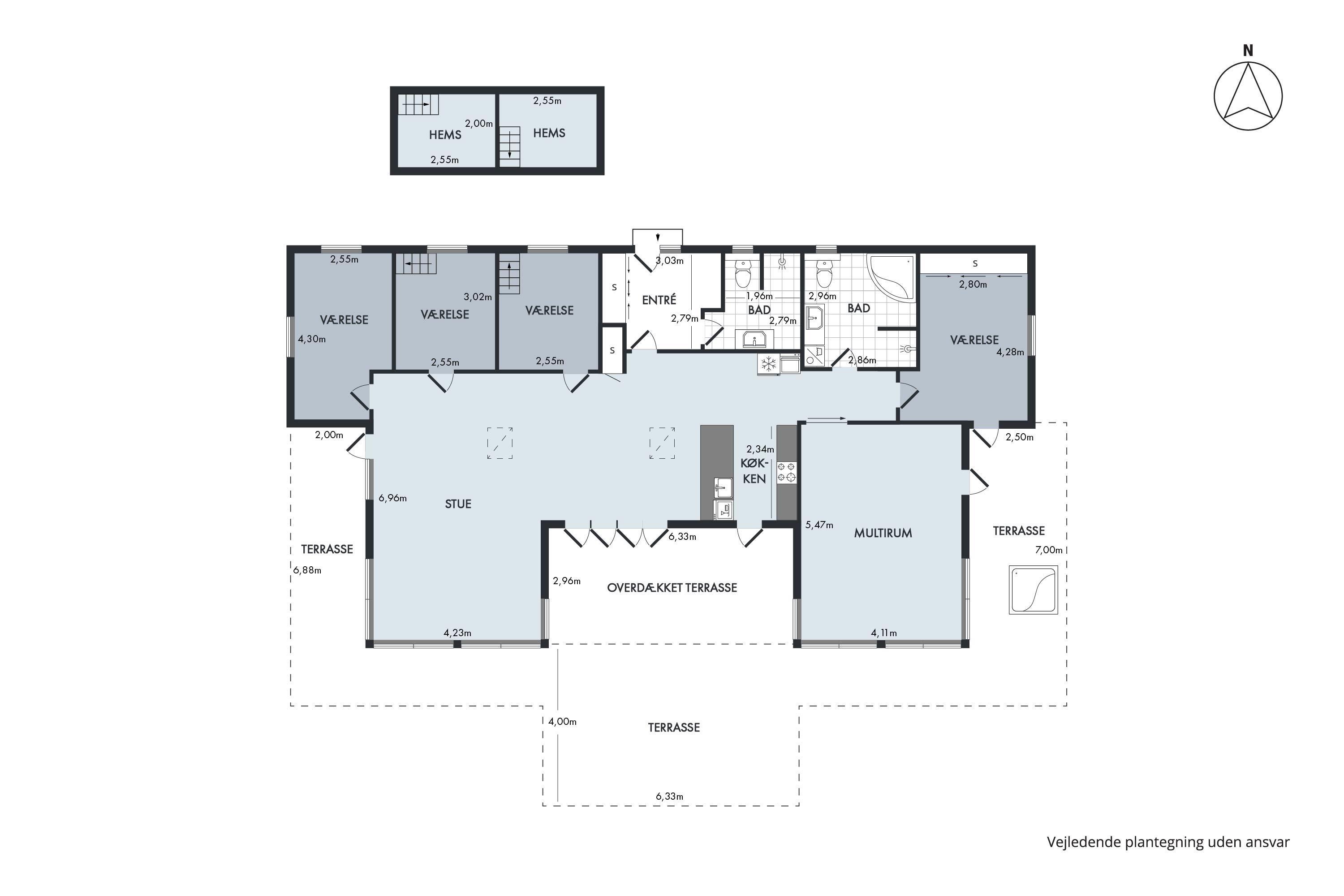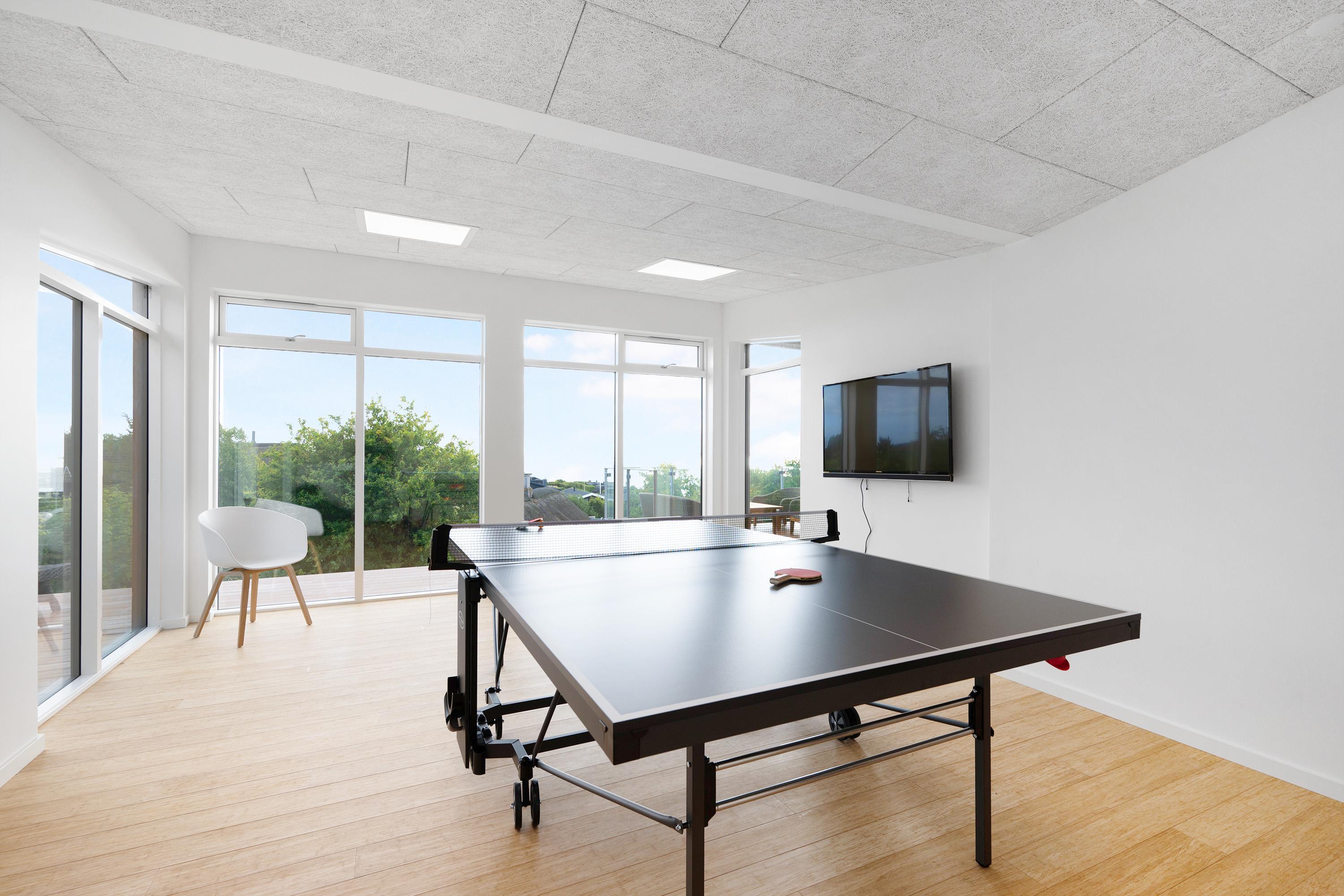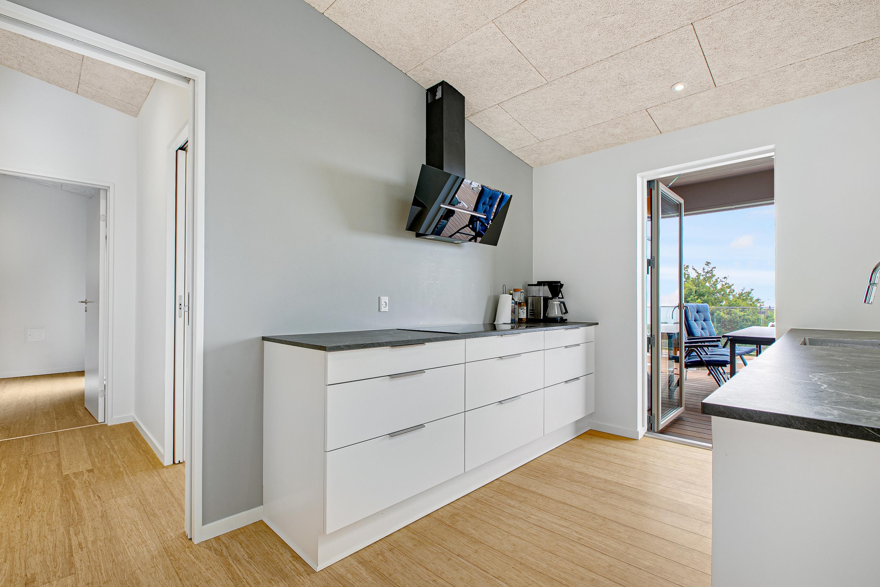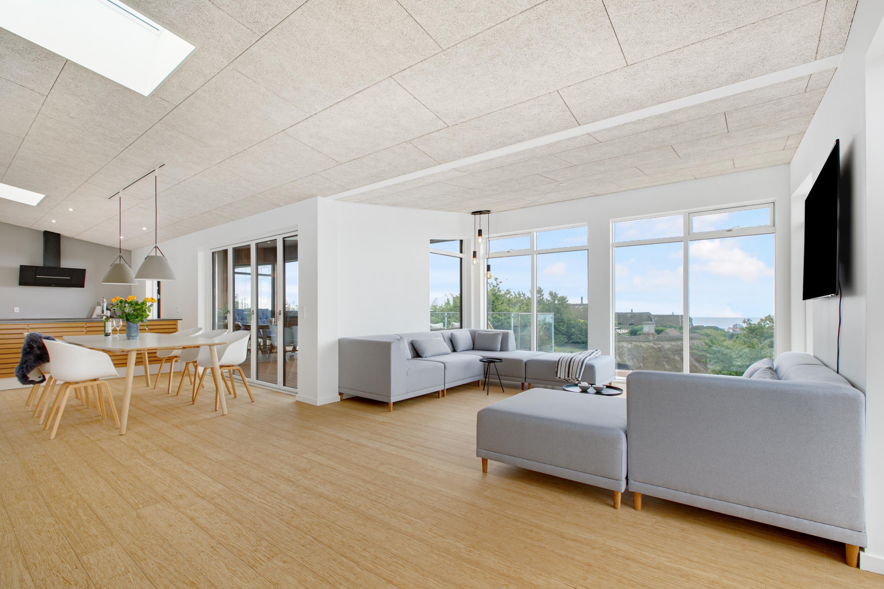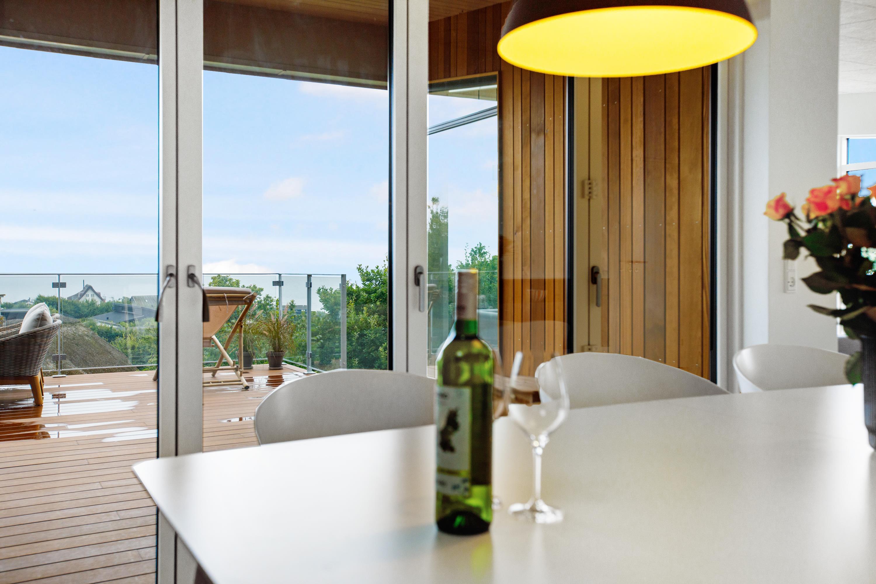 Mit der schönsten Aussicht über Ebeltoft Bucht und bis nach Samsø finden Sie dieses schöne neu gebaute Haus. Das Haus wurde von einem Architekten entworfen und im Hinblick auf Nachhaltigkeit in soliden Materialien gebaut. Das Haus besteht aus Zedernholz, auf dem Dach befinden sich Solarzellen und die Böden sind aus massivem Bambus. Das Haus verfügt über ein großes, helles Wohnzimmer mit stilvollen Möbeln und Panoramablick auf das Wasser. In Verbindung mit dem Wohnzimmer befindet sich die superschöne Küche mit allen Elektrogeräten und von der aus man Zugang zu einer sehr großen und schönen Terrasse mit guten Gartenmöbeln hat. Ein Teil der Terrasse ist überdacht, so dass man bei fast jedem Wetter die schöne Aussicht nach draußen genießen kann. Auf der Terrasse mit Blick auf die Bucht befindet sich ein Whirlpool im Freien für 5 Personen. Die acht Schlafplätze des Hauses verteilen sich auf vier große Zimmer mit Doppelbetten. Es gibt auch einen großen Aktivitätsraum/Spielzimmer mit Tischtennis, Duplo, Flexi-Trax und Spielen. Das Haus verfügt über zwei schöne Badezimmer, von denen eines über einen Whirlpool verfügt. Es gibt auch Zugang zu einer Waschmaschine und einem Wäschetrockner. Es gibt Internet im Haus und Fernsehen ist über Streaming. Das Haus wird mit einer Luft-Wasser-Wärmepumpe beheizt und ist daher günstig im Verbrauch.