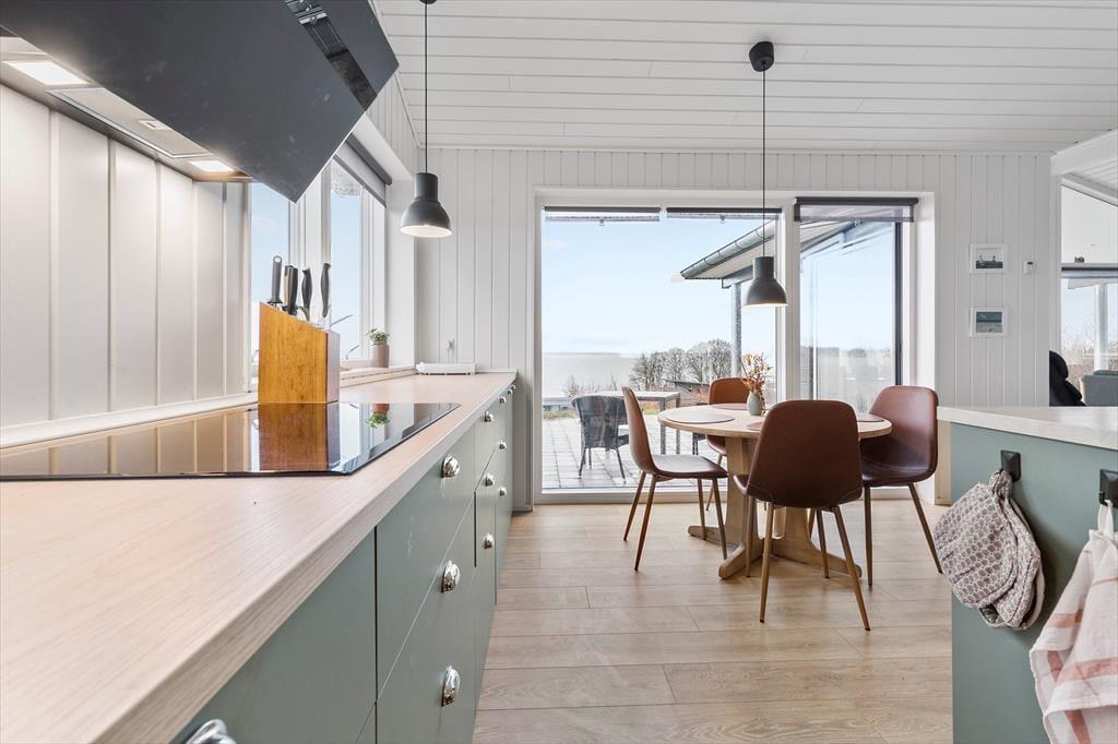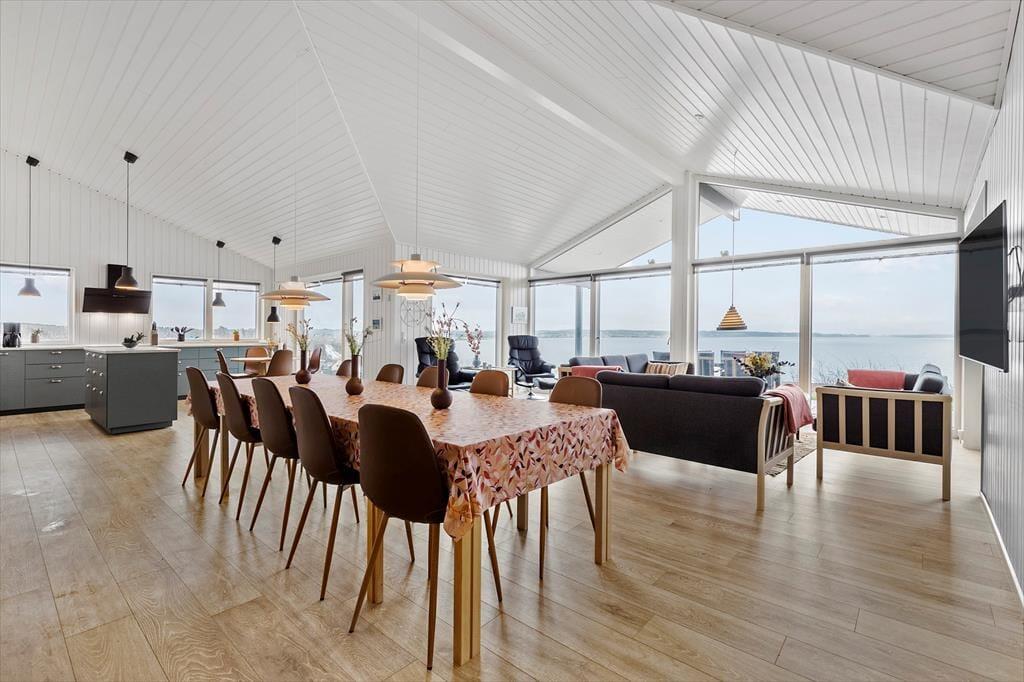 Willkommen in diesem schönen, im Jahr 2022 erbauten Ferienhaus in der Nähe Ebeltofts, das modernen Komfort und eine gemütliche Wohnatmosphäre in schönster Weise kombiniert. Herzstück deines Ferienhauses ist der helle Küchen- und Essbereich, der dich dank großer Fensterpartien mit einer fantastischen Aussicht auf die Ebeltoft Vig verwöhnt. Die gut ausgestattete Küche, die unter anderem einen Geschirrspüler beinhaltet, und der Essbereich laden zu stimmungsvollen Mahlzeiten vor toller Kulisse ein. Der Wohnraum empfängt dich mit guten Möbeln und einem Ausgang auf die Terrasse. Mit vier geräumigen Schlafräumen bietet das Haus Platz für deine gesamte Familie. Die beiden ansprechenden Badezimmer verfügen jeweils über eine Duschnische und eine Fußbodenheizung. Das gesamte Mietobjekt wird mittels einer energieeffizienten Luft-zu-Wasser-Fußbodenheizung beheizt. Auf dem umzäunten Grundstück können deine kleinen Kinder und eure Hunde sicher spielen und umhertollen.
