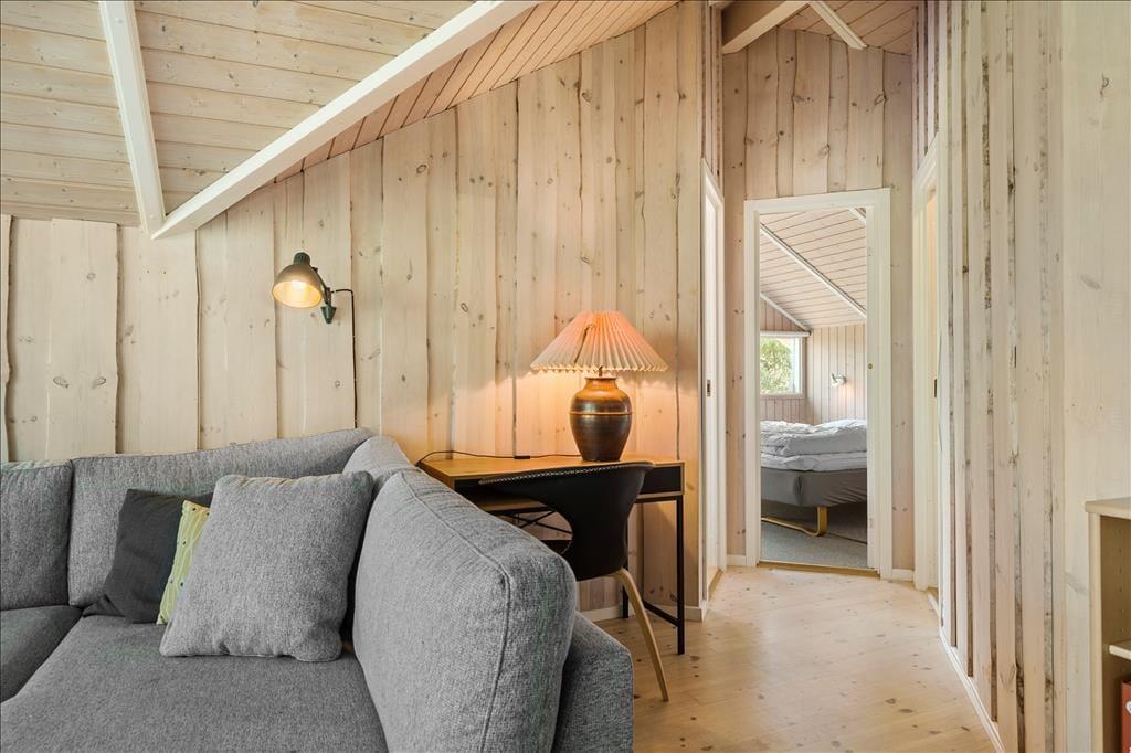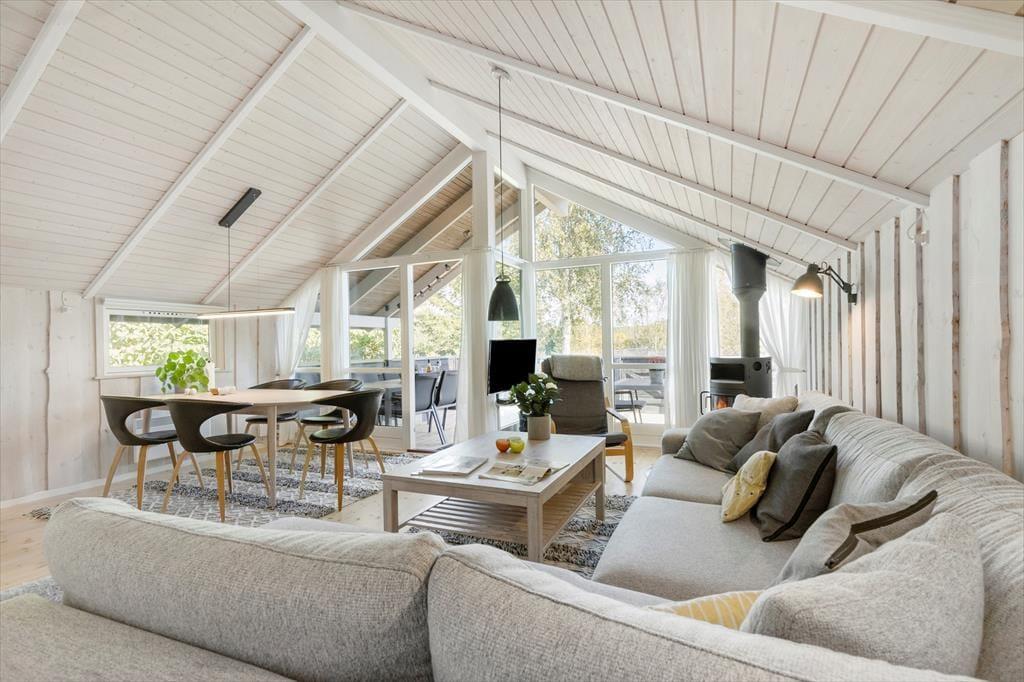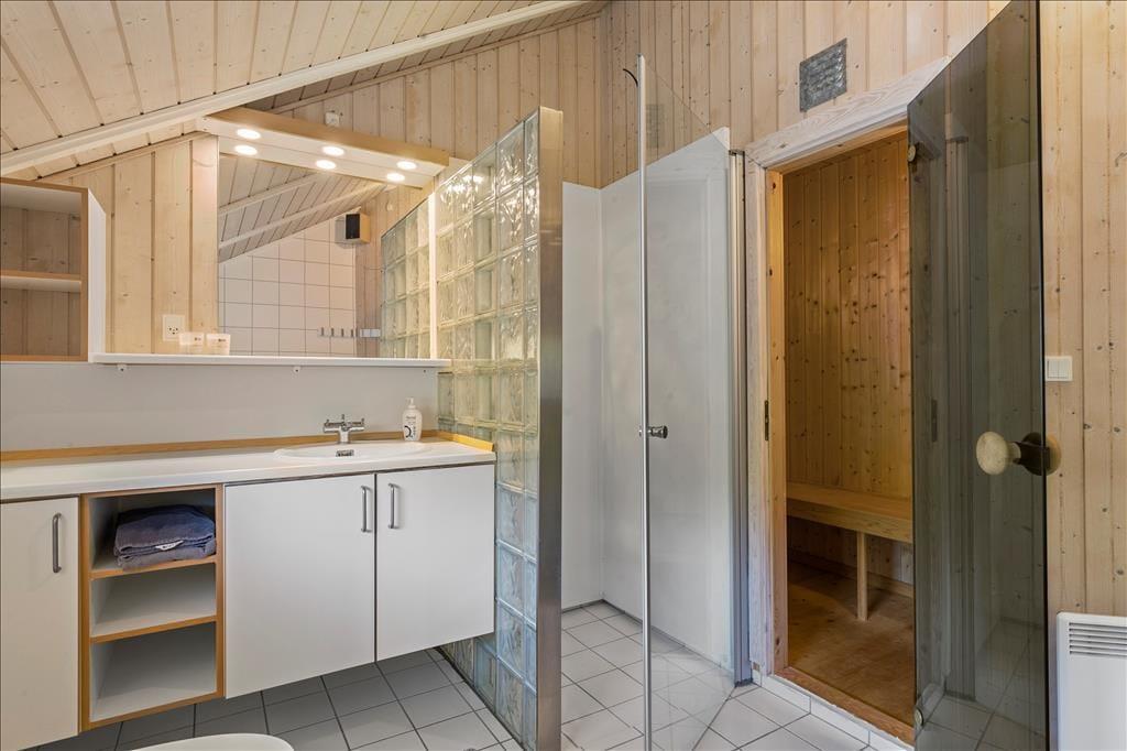 Dein Ferienhaus begrüßt dich mit einer hellen, behaglichen Wohnatmosphäre. Große Fenster sorgen für einen attraktiven Tageslichteinfall. Der mit komfortablen Möbeln eingerichtete Wohnraum verwöhnt mit einem romantisch knisternden Kaminofen. Viele Stunden wirst du in diesem Raum mit guten Büchern und mit deinen Lieblingsfilmen oder Lieblingsserien verbringen. Chromecast und kostenlos nutzbares WiFi sind vorhanden. Die offene Küche bietet dir alles, was du für die Zubereitung euer täglichen Mahlzeiten benötigst. Zur Ausstattung gehören unter anderem ein Geschirrspüler und eine Kühl-Gefrier-Kombination. Die Schlafplätze für sechs Personen verteilen sich auf zwei Schlafräume mit je einem Doppelbett und auf einen Schlafraum mit zwei Einzelbetten - perfekt für Familien und Gruppen guter Freunde. Das Badezimmer erweist sich als kleine Wellnessoase. Es verfügt nicht nur über ein WC und eine Duschnische, sondern überzeugt zudem mit einem Whirlpool und einer Sauna. Bester Erholung und Entspannung nach langen Urlaubstagen steht somit nicht im Wege.