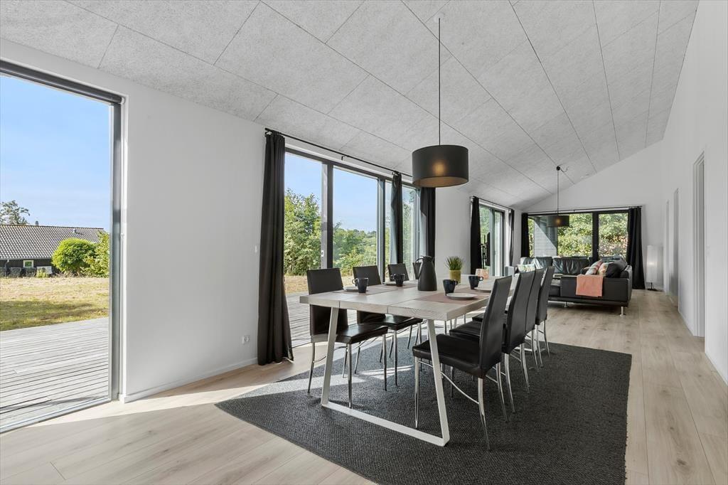 Willkommen in diesem modernen, gemütlichen Ferienhaus für acht Personen, das nur wenige Minuten von den reizenden alten Kopfsteinpflastergassen Ebeltofts trennen. Du verbringst deinen Urlaub in einem hellen, im Jahr 2021 erbauten Urlaubsdomizil, das Platz für bis zu acht Personen bietet. Die Schlafplätze verteilen sich auf vier einladende Schlafräume. Praktischerweise stehen außerdem zwei Badezimmer zur Verfügung. Der offen gestaltete und atmosphärisch schöne Küchen-, Wohn- und Essbereich besticht mit großen Fensterpartien, die einen tollen Tageslichteinfall bedingen und eine schöne Verbindung zur umliegenden Natur herstellen. Der Aufenthaltsbereich bietet dir somit beste Voraussetzungen für die gemeinsame Zubereitung der Mahlzeiten, für gesellige Runden am Esstisch und für gemütliche Abende im Kreise deiner Lieben. Dein Hund ist in diesem Mietobjekt übrigens ebenfalls herzlich willkommen.
