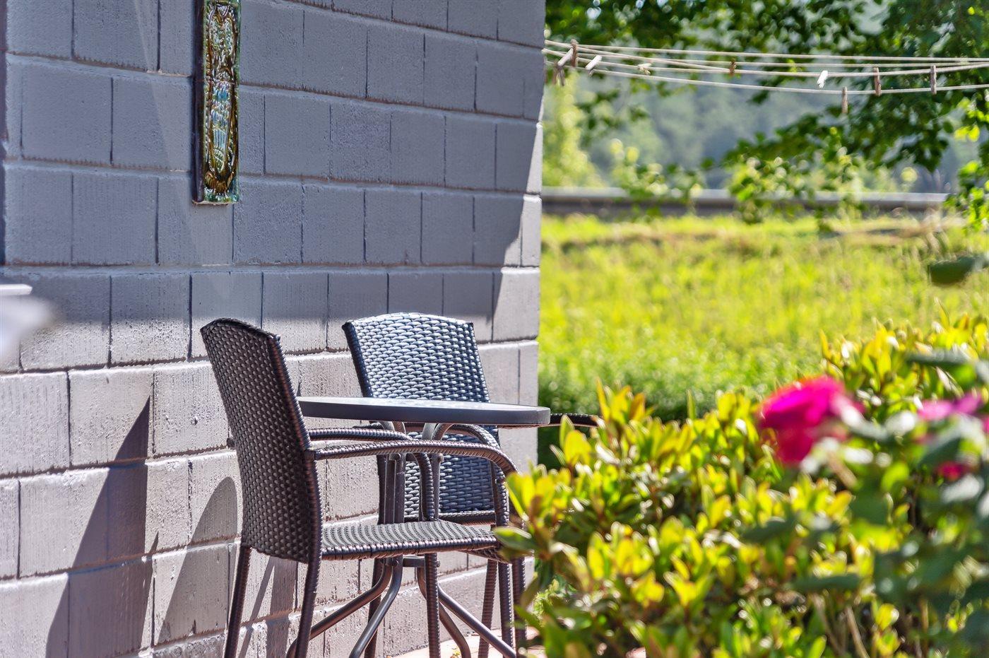 Das Haus ist von einer großen Terrassenfläche umgeben, auf der du den ganzen Tag über die Sonne genießen kannst. Darüber hinaus gibt es einen großen Rasen mit viel Platz zum Ballspielen oder Sonnenbaden.