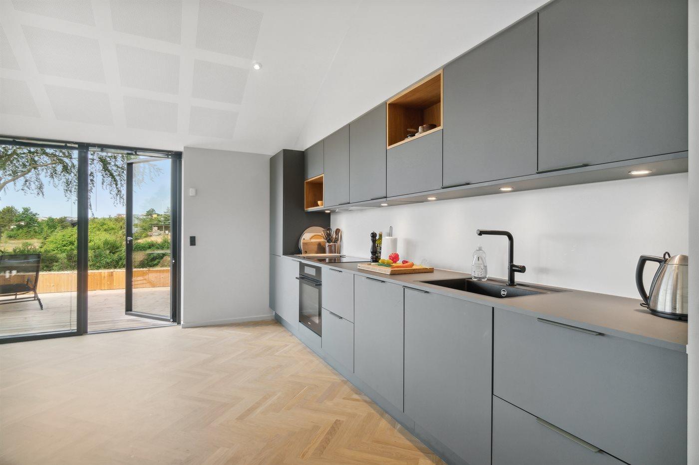 Hier findest du unter anderem eine besonders schöne Küche/Esszimmer, die mit dem herrlichen Ausblick über das Wasser besticht. Dasselbe macht sich auch auf der großen und teilweise überdachten Terrasse geltend, denn auch hier kommt die schöne Aussicht besonders gut zur Geltung.