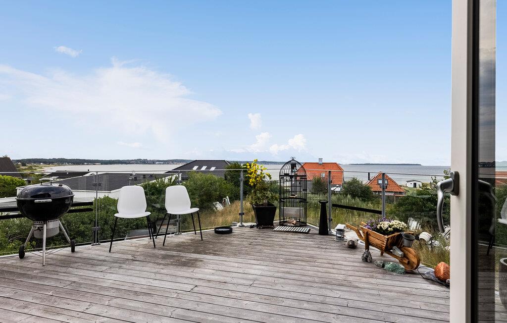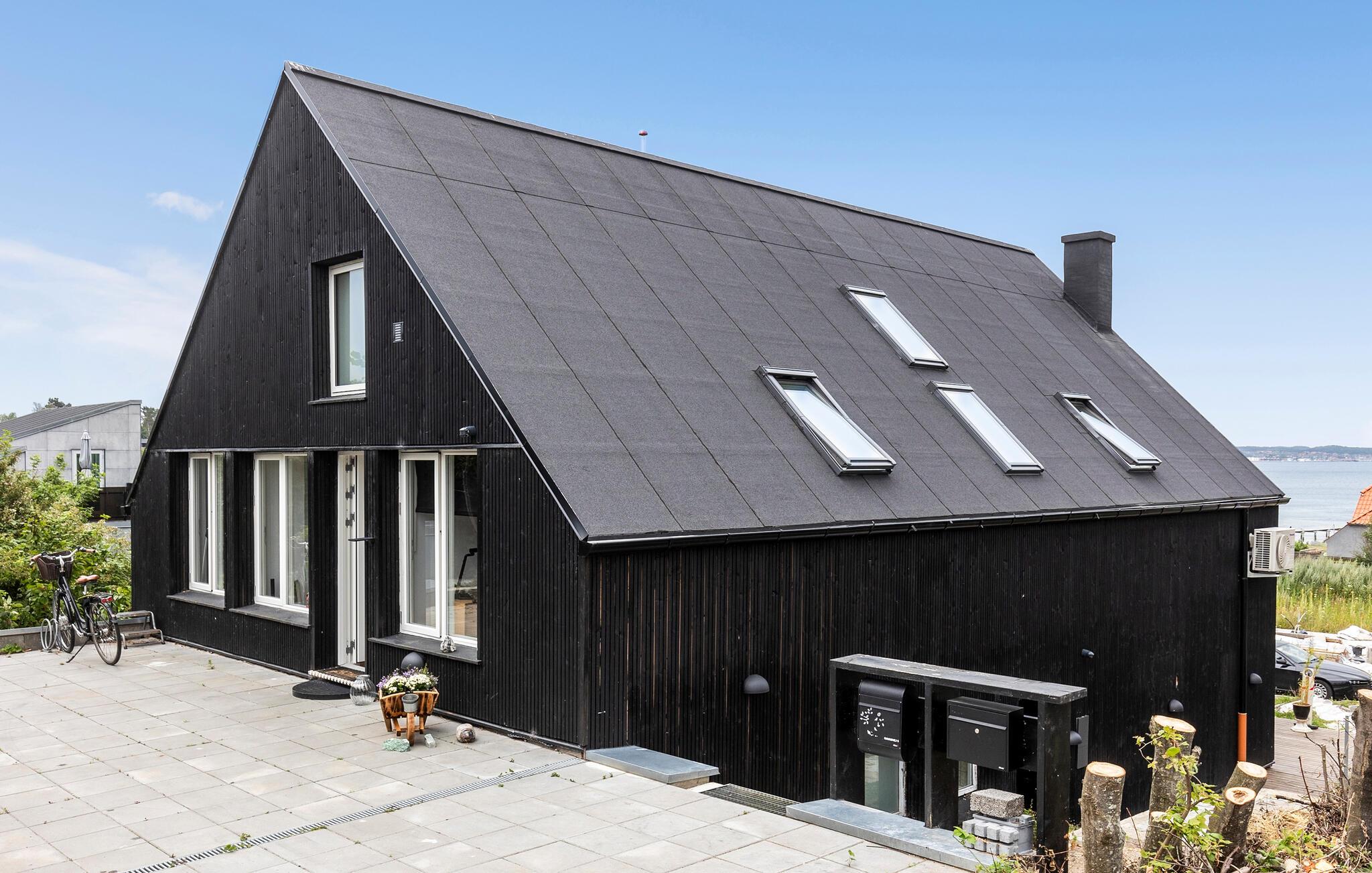 Genießen Sie Meerblick und Komfort in diesem modernen Ferienhaus in Ebeltoft, ideal für entspannte Urlaubstage am Strand.