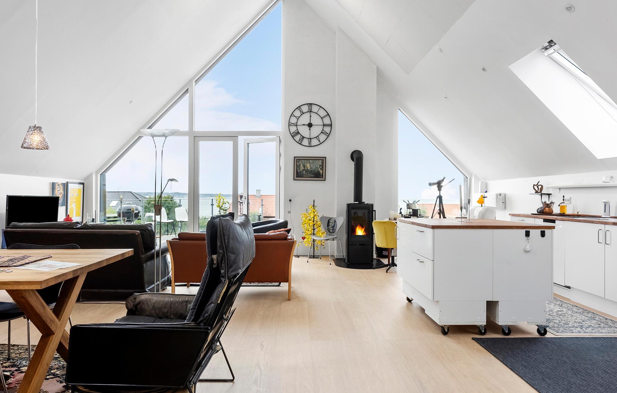 Mit einer hellen, wohnlichen Atmosphäre heißt Sie dieses komfortable Ferienhaus am Meer willkommen. Lassen Sie die originelle und geschmackvolle Einrichtung auf sich wirken und fühlen Sie sich wie zu Hause, während Sie in der geräumigen Küche kulinarische Highlights zaubern, die Sie im behaglichen Essbereich genießen. Entfachen Sie den Kaminofen und vertiefen Sie sich auf dem gemütlichen Sessel in Ihre Urlaubslektüre oder bewundern Sie den schönen Ausblick bei einem duftenden Tee.