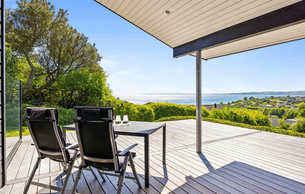 Freuen Sie sich in diesem stilvollen Ferienhaus mit Whirlpool auf erholsame Tage und einen traumhaften Blick aufs Meer.