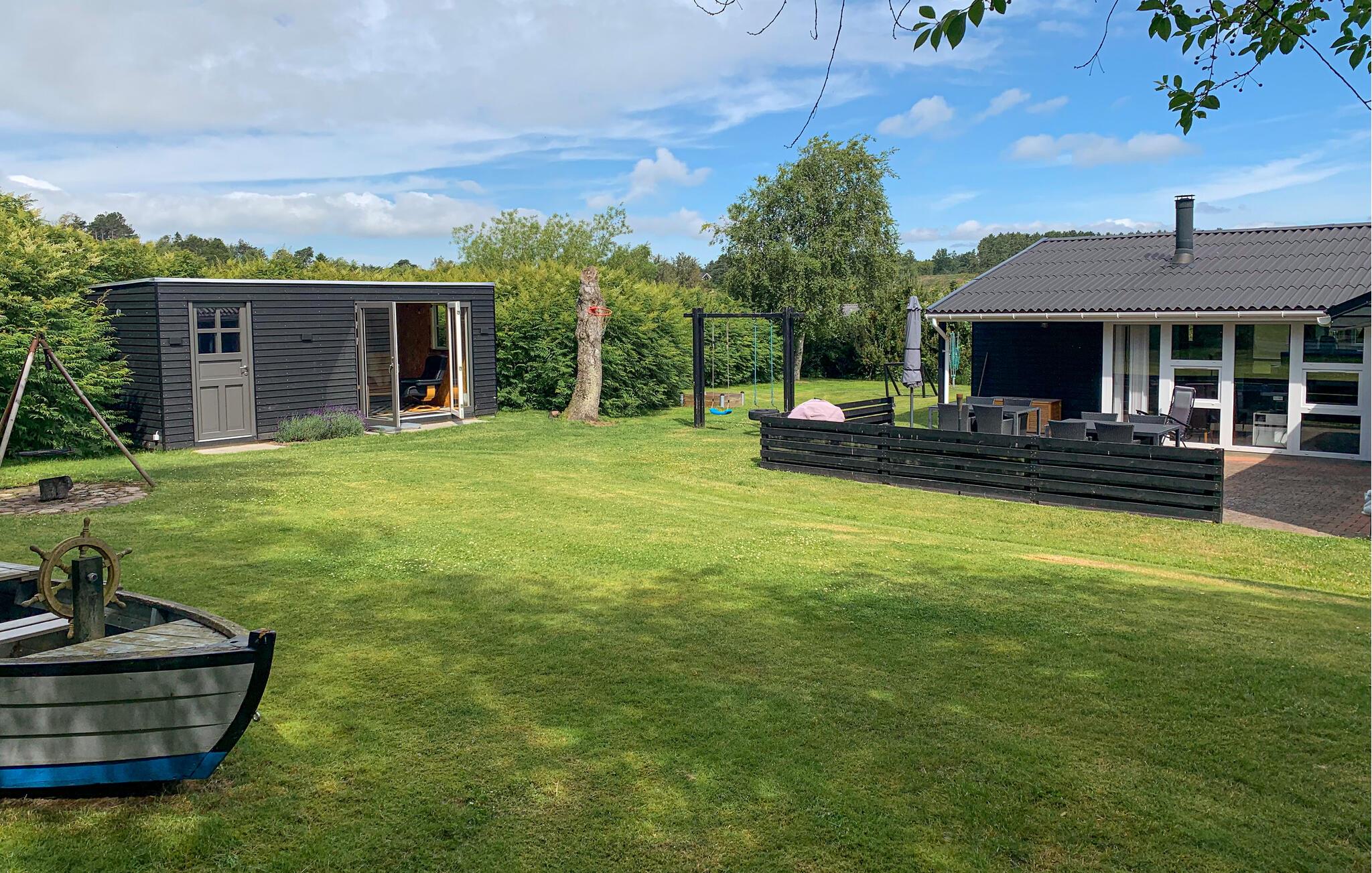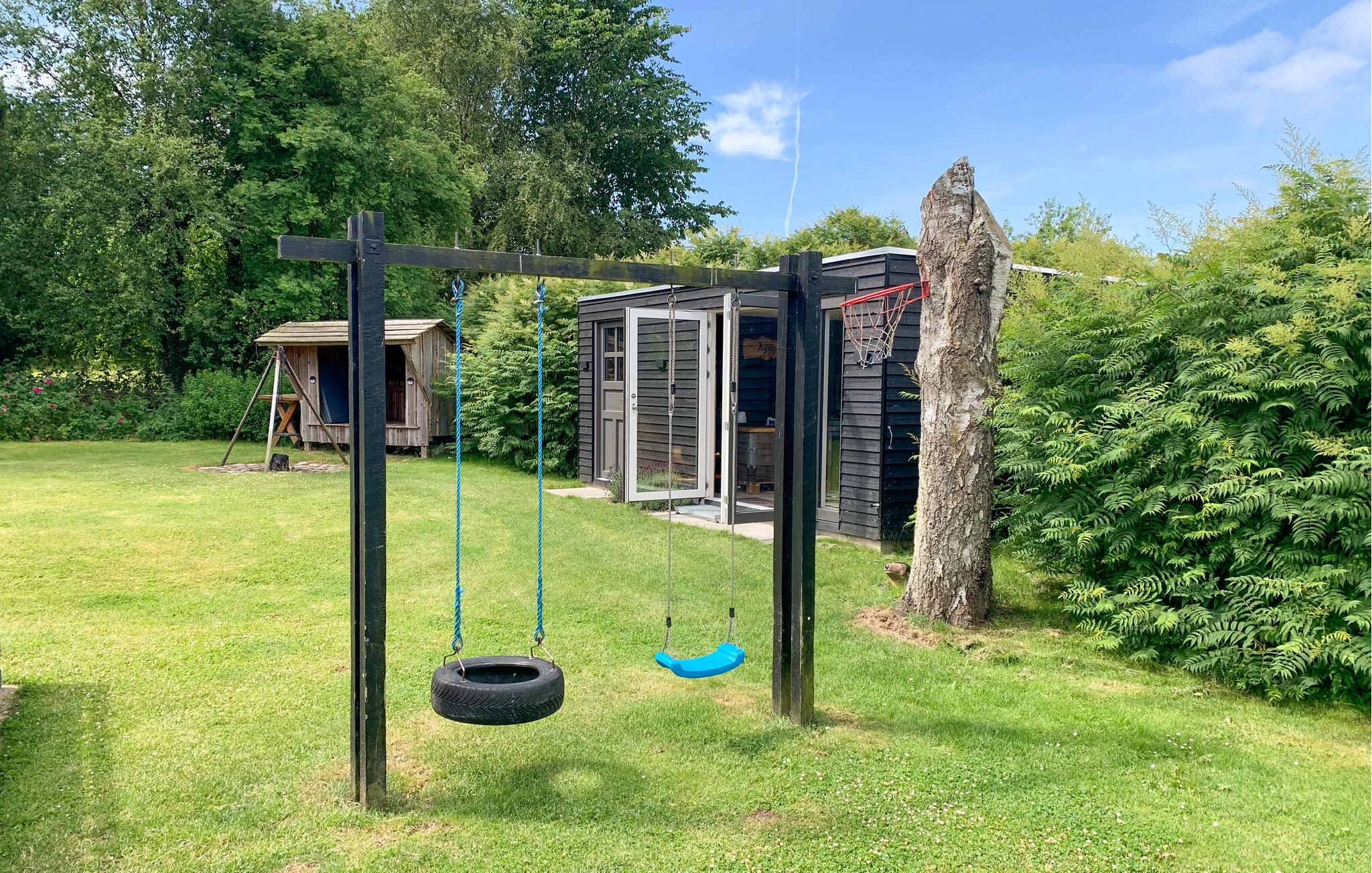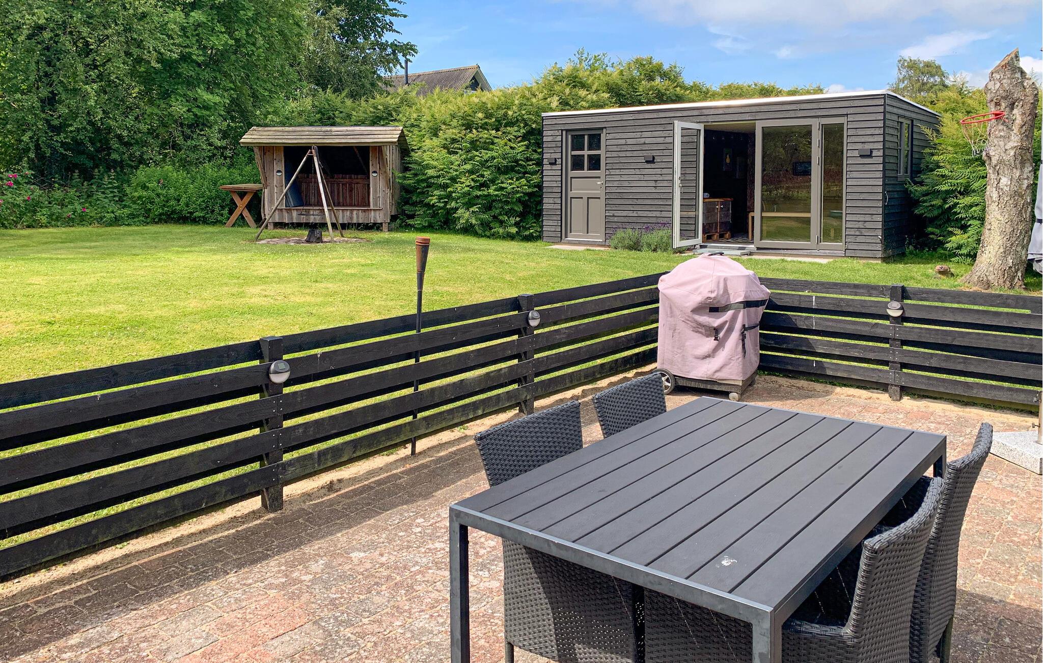 Entspannen Sie auf dem großen Grundstück mit Südwest-Terrasse, die mit Grill und Gartenmöbeln ausgestattet ist, für die Kleinsten gibt es Schaukel und Sandkasten. Im Garten steht ein Shelter und Sie können an der Feuerstelle ein Lagerfeuer machen, außerdem finden Sie hier einen gemütlichen Annex.