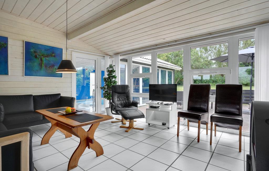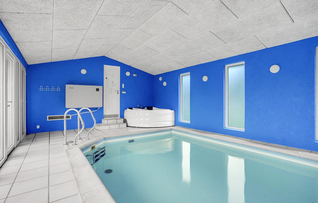 Das einladende Ferienhaus begrüßt seine Gäste nicht weit vom Meer. Die Einrichtung des Hauses ist modern mit komfortablen Möbeln und lädt zum Entspannen ein. Machen Sie es sich im Wohnzimmer am Kaminofen gemütlich, von hier aus haben Sie Zugang zur Terrasse. Am Ende des Pool-Raumes haben Sie einen schönen Blick auf die Terrasse und den Whirlpool. Im Pool ist Trainingshilfe beim Schwimmen vorhanden.