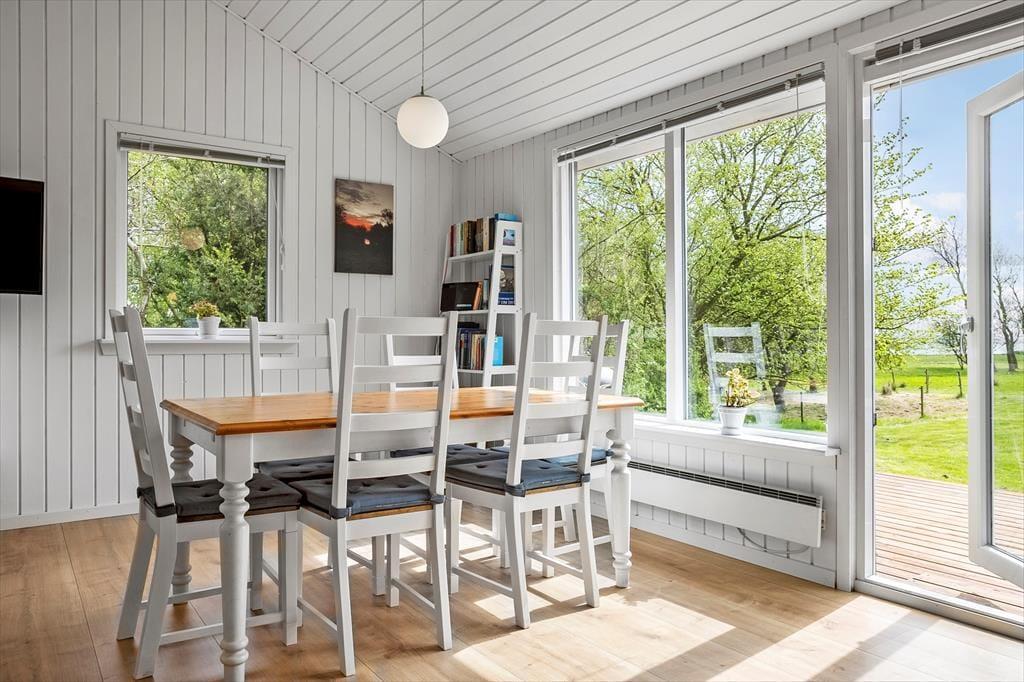 Sie wohnen in der ersten Häuserreihe zum Limfjord, wenn Sie sich für dieses schöne Ferienhaus in Ejerslev Lyng auf Nordmors entscheiden. Im Wohnraum und in der offenen Küche genießen Sie die Aussicht auf die blauen Wellen des Limfjords. Der gleiche schöne Ausblick erwartet Sie, wenn Sie sich auf der Terrasse sonnen oder auf der Grasfläche Fußball spielen.