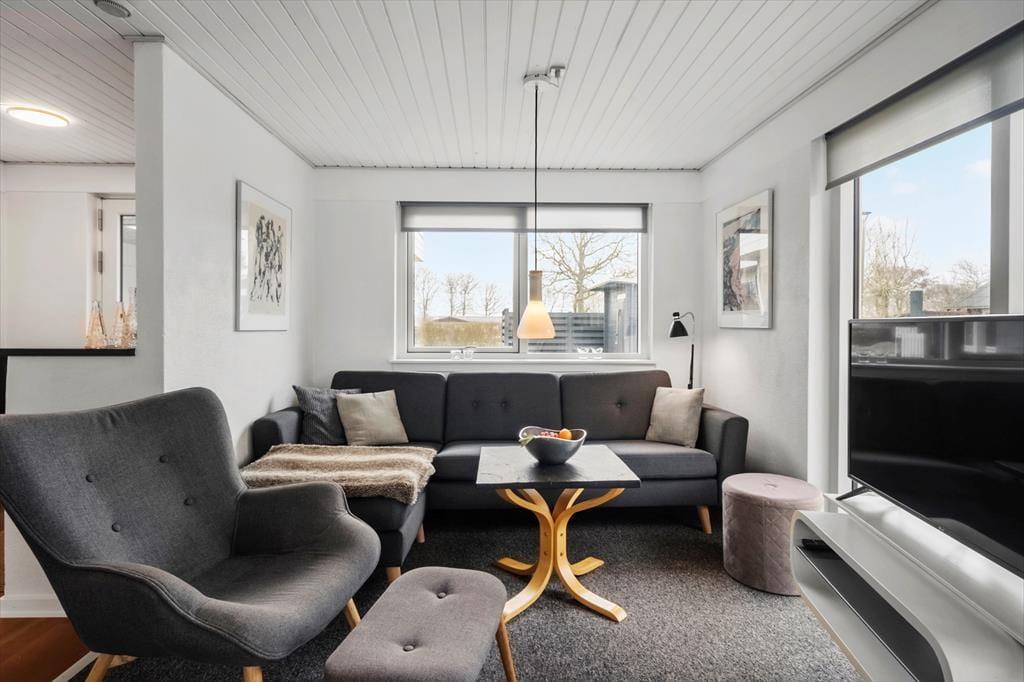 Dein Ferienhaus liegt ruhig platziert in der Sackgasse Solsortevej. Nur wenige Minuten trennen euch zu Fuß vom Strand. Dank der hauseigenen Sauna spricht absolut nichts gegen viele erfrischende Bäder im kühlen Nass - selbst außerhalb der warmen Sommermonate. Im Sommerhalbjahr werdet ihr ganze Tage an der Wasserkante verbringen. Am Ejsingholm Strand könnt ihr sehr gut baden, planschen, spielen und spazieren gehen. Auf beste Möglichkeiten dürfen sich natürlich auch Wassersportler wie SUP-Boarder und Kajakfahrer freuen. Angler treffen ebenfalls auf gute Bedingungen. Der Sportboothafen Handbjerg Marina erweist sich als beschauliches, wunderbar maritimes Ausflugsziel am Fjordufer. Gut per Pkw oder Fahrrad erreichbar ist zudem die Handelsstadt Struer, die mit dem Struer Museum, einem Yachthafen, einem beliebten Kurbad sowie Geschäften und Lokalitäten zu überzeugen weiß.
