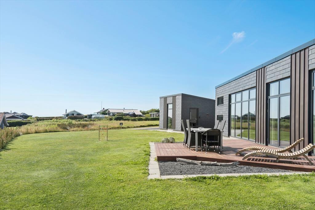 Auf der Terrasse des Hauses spürt ihr sofort, dass ihr Urlaub habt. Von hier aus habt ihr einen wunderschönen Blick über die Bucht – perfekt für den Morgenkaffee, ein Mittagessen in der Sonne oder lange, laue Abende unter freiem Himmel. Wenn der Körper nach Verwöhnung verlangt, springt ihr in den Außen-Whirlpool – vielleicht mit einem Glas Wein und Blick auf den sternenklaren Himmel. Der grüne Garten ist ideal zum Entspannen und Spielen, wo Kinder und Junggebliebene sich austoben können, während auf der Terrasse schon zum Grillabend gedeckt wird. Ob ihr einen faulen Tag in der Sonne oder geselliges Beisammensein im Schatten bevorzugt – der Außenbereich bietet den perfekten Rahmen dafür.