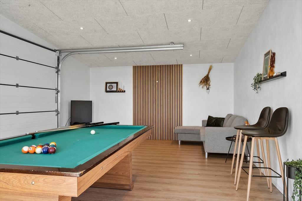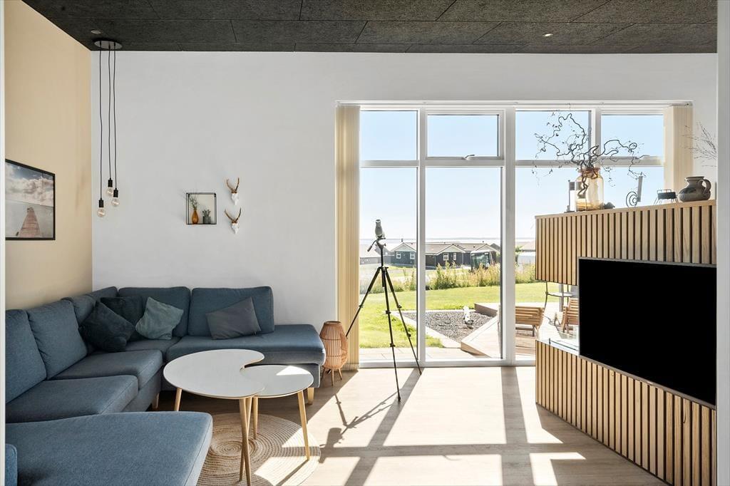 Das Ferienhaus ist für schöne Erlebnisse gebaut. Der großzügige Wohnbereich bildet mit offener Küche, Essplatz und einem gemütlichen Wohnzimmer das natürliche Zentrum, in dem ihr den Blick auf den Fjord genießen könnt – vielleicht mit einer Tasse Kaffee in der Hand. Die Einrichtung ist modern, doch die Atmosphäre ist warm und entspannt. Es ist hell und freundlich, mit hoher Decke und viel Platz zum Zusammensein – ob beim Kochen, Spielen oder beim gemütlichen Entspannen auf dem Sofa. Wenn der Abend hereinbricht, könnt ihr euch auf die Schlafzimmer im Haus verteilen – und den Tag vielleicht mit einer Partie Billard im Aktivitätsraum ausklingen lassen, während die Sonne über dem Fjord am Horizont untergeht.