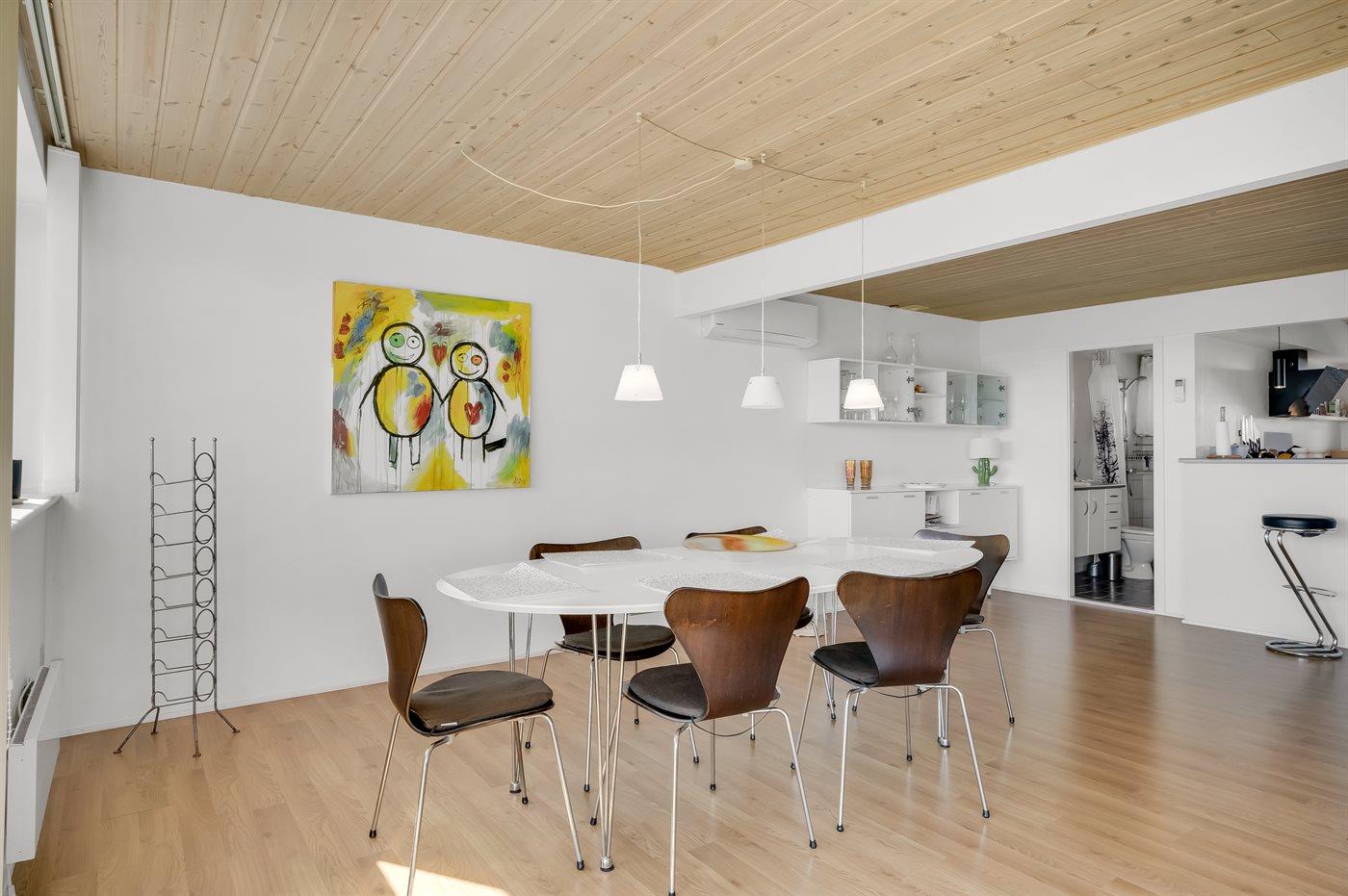 Wer möchte nicht gern mit einer tollen Aussicht auf den Limfjord aufwachen? In diesem schönen Haus, das über ein großes, ungestörtes Grundstück verfügt, ist das möglich. Auch die Möglichkeit für verschiedene Aktivitäten wartet hier auf Sie. Wenn Sie Wassersport mögen, können Sie am Jachthafen Handbjerg entsprechende Ausrüstung ausleihen. Wenn Sie sich für Historisches interessieren, liegt die Burg Spøttrup nur 15-20 Minuten vom Haus entfernt. Wenn es Sie eher in die Stadt zieht, erreichen Sie in nur 20 Autominuten die Städte Struer und Skive.