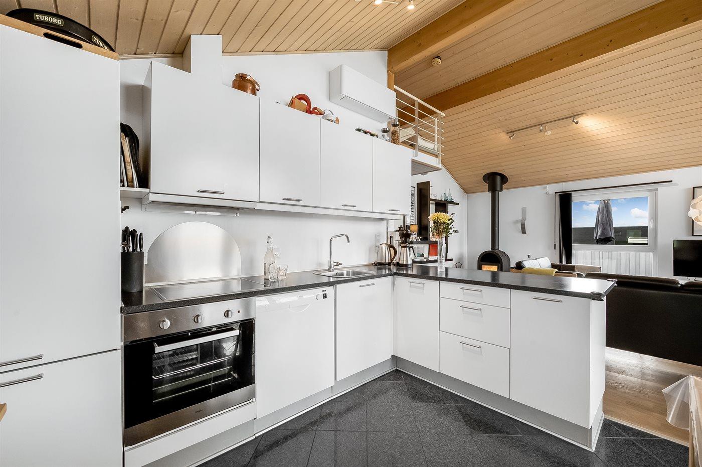 Charmantes Holzferienhaus in Vinderup mit Sauna, Whirlpool und Blick auf die Bucht, nur 300 m vom Wasser entfernt.