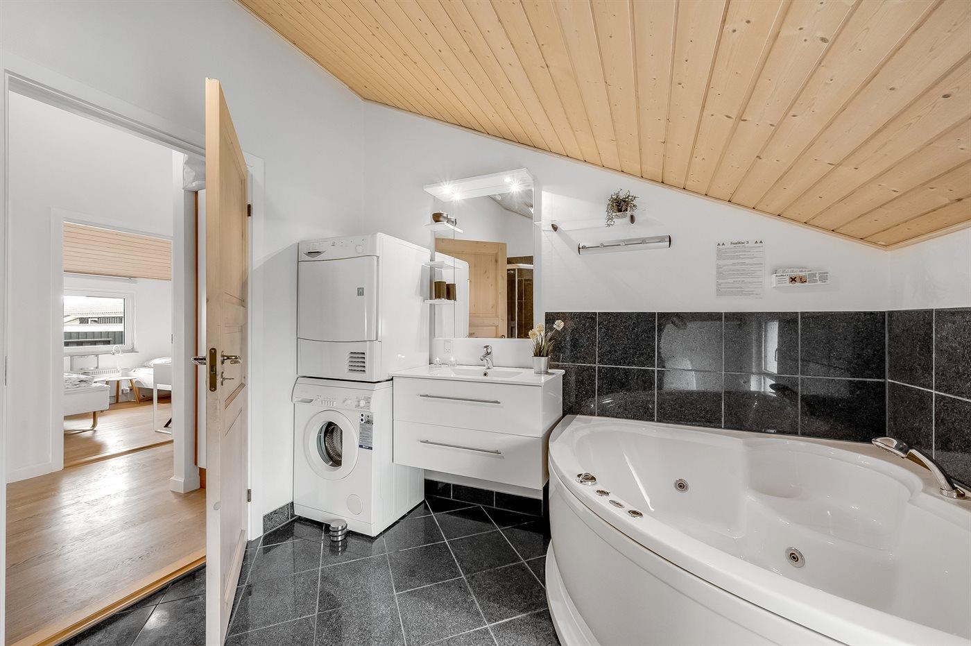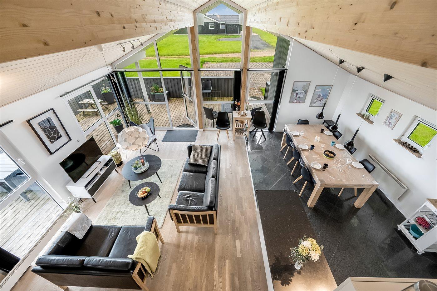 Besonders hübsches Ferienhaus aus Holz, 2005 gebaut, auf einem schönen Natur-/Gartengrundstück nur 300 m vom Wasser entfernt gelegen. Sowohl vom Haus als auch vom Grundstück gibt es eine hübsche Aussicht über das Wasser. Zum Haus gehören eine schöne, große, sowohl offene als auch überdachte Terrasse mit diversen Gartenmöbeln. Hübsche beheizbare Klinkerböden in der Küche, Essabteilung und im Badezimmer. Holzböden in den übrigen Räumen. Hell gestrichene Wände sowie Holzdecken. Schönes, großes Badezimmer mit Duschnische, 2-Pers.-Whirlpool sowie direktem Zugang zur Sauna des Hauses. Ferner schöne Gästetoilette. Küche in offener Verbindung mit dem Wohnzimmer, die mit u. a. Geschirrspüler, Mikrowelle, Umluftofen, Herd mit Ceran-Feld und Tiefkühlgerät ausgestattet ist. Schönes großes und nett möbliertes Wohnzimmer mit Kaminofen, DVD-Spieler, TV mit digitalem Satellitenanschluss und Stereoanlage mit CD-Spieler sowie Kostenlose WI-FI Internetverbindung. Die Schlafplätze des Hauses verteilen sich auf 2 Schlafzimmer mit Doppelbett und 1 mit 2 Einzelbetten sowie ein gutes offenes Obergeschoss mit 2 Schlafplätze für Kinder. An weiterer Ausstattung können Waschmaschine sowie Wäschetrockner erwähnt werden und es ist eine energiesparende Wärmepumpe installiert. Für die Kinder stehen Kinderhochstuhl und Kinderbett sowie Sandkasten, Schaukel, Rutsche und verschiedene Spiele zur Verfügung. Ein sehr schönes Ferienhaus zu jeder Jahreszeit, das in einem schönen Feriengebiet mit vielen Aktivitätsmöglichkeiten liegt, u. a. Windsurfing, Angeln, Put & Take, Baden sowie Spaziergänge in der schönen Natur.
