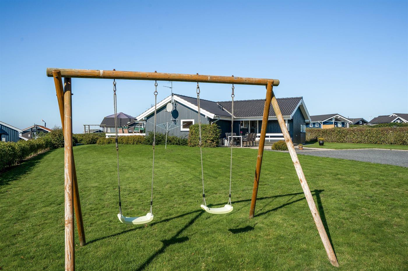 Die Ferienunterkunft liegt auf einem 1000 m² großen Gartengrundstück. Die Entfernung zum Fjord beträgt 350 m. Die nächste Einkaufsmöglichkeit liegt 500 m entfernt. Es steht ein 55 m² Terrassenareal zur Verfügung. Außerdem gibt es 15 m² überdachte Terrasse. Geräteraum. Schaukel. Sandkasten. Parkplatz auf dem Grundstück.