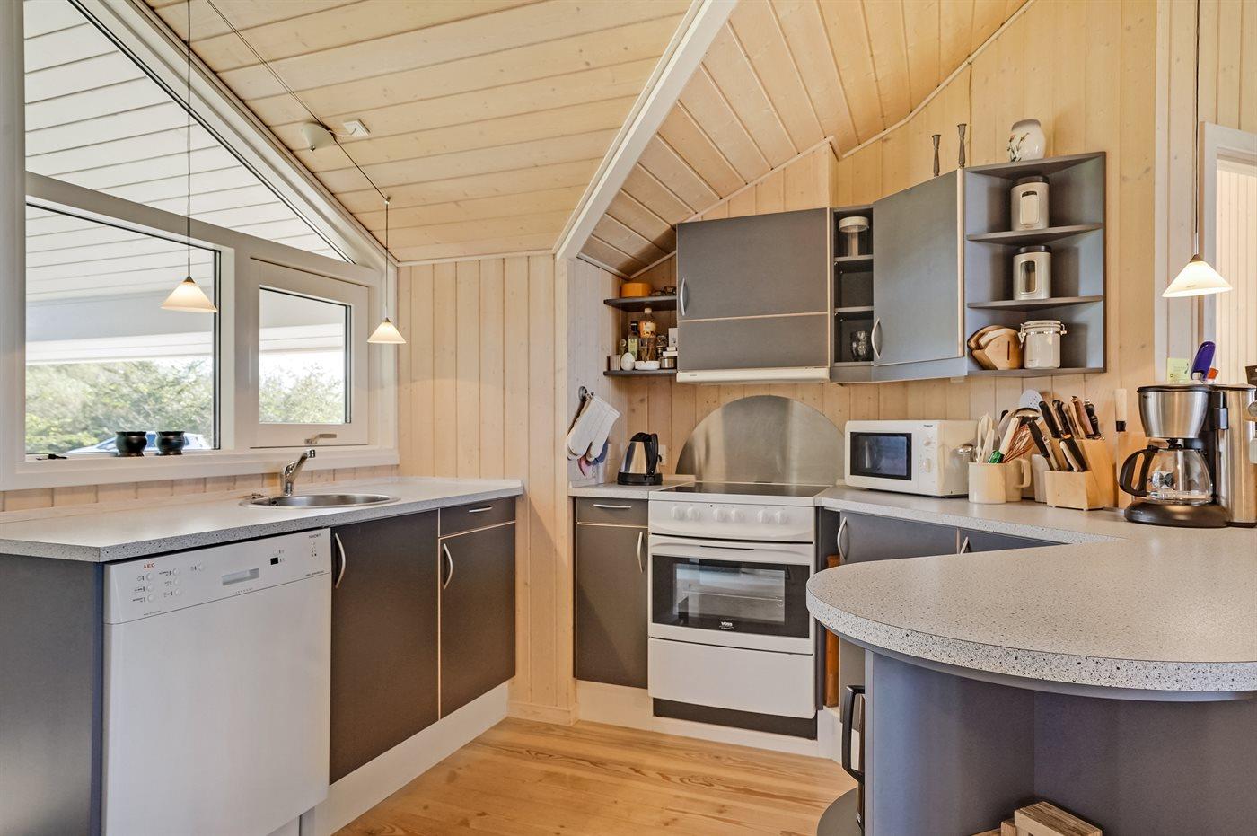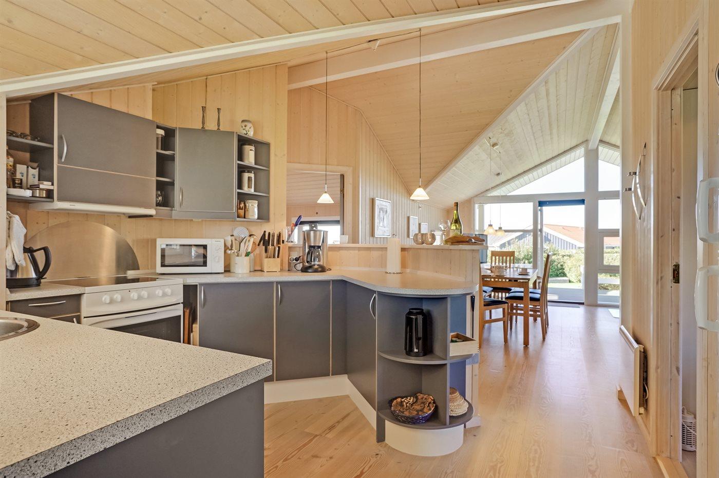 Die Küche ist mit Kühlschrank ausgestattet. Außerdem gibt es 4 Keramik-Kochfelder, Umluftofen, Mikrowelle sowie Geschirrspüler.