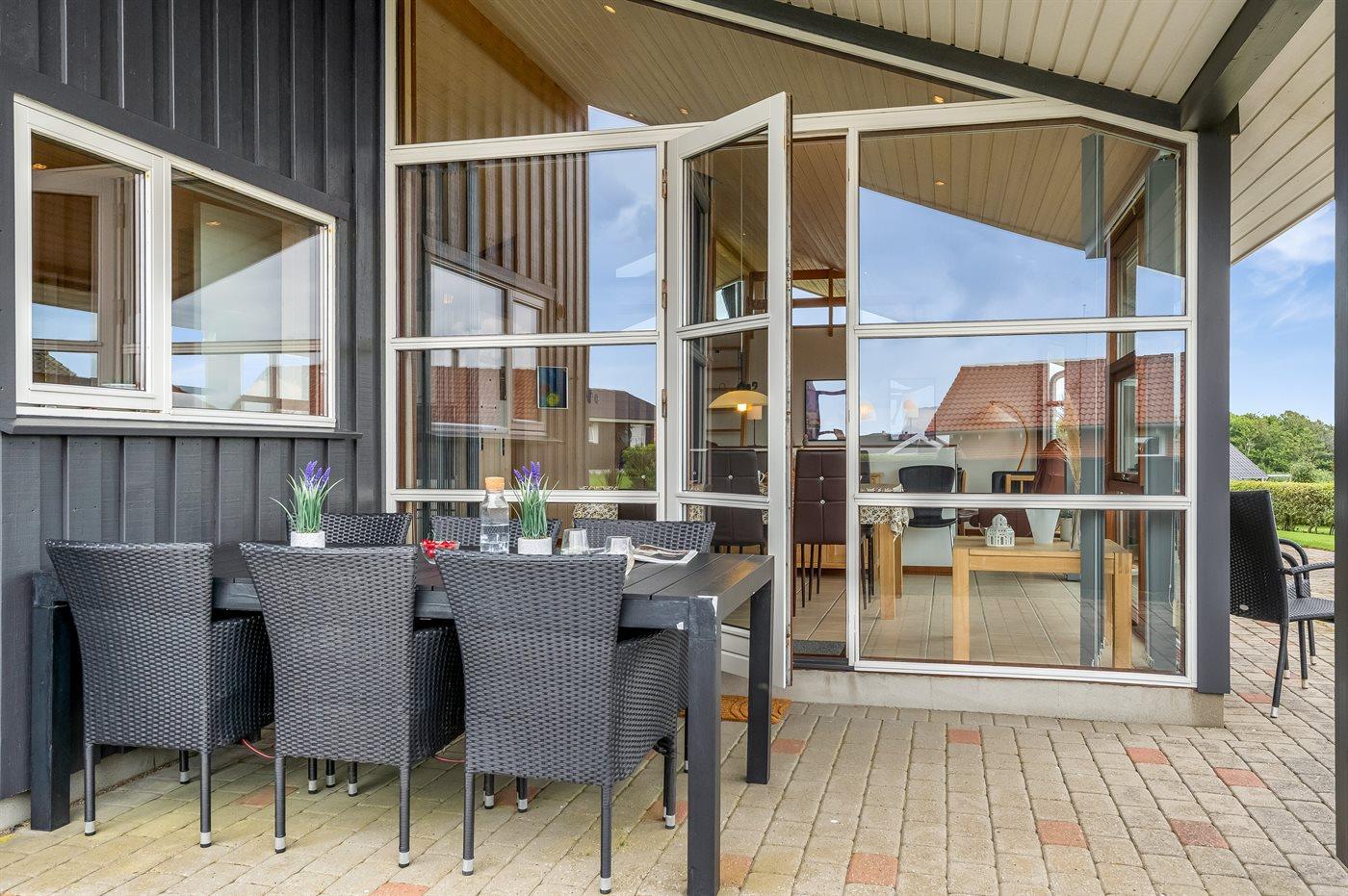 Die Ferienunterkunft liegt auf einem 1100 m² großen Naturgrundstück. Die Entfernung zum Fjord beträgt 400 m. Es gibt einen Badesteg in der Nähe. Die nächste Einkaufsmöglichkeit liegt 1000 m entfernt. Es steht ein 75 m² Terrassenareal zur Verfügung. Außerdem gibt es 15 m² überdachte Terrasse. Schaukel. Es steht ein Grill zur Verfügung. Parkplatz auf dem Grundstück.