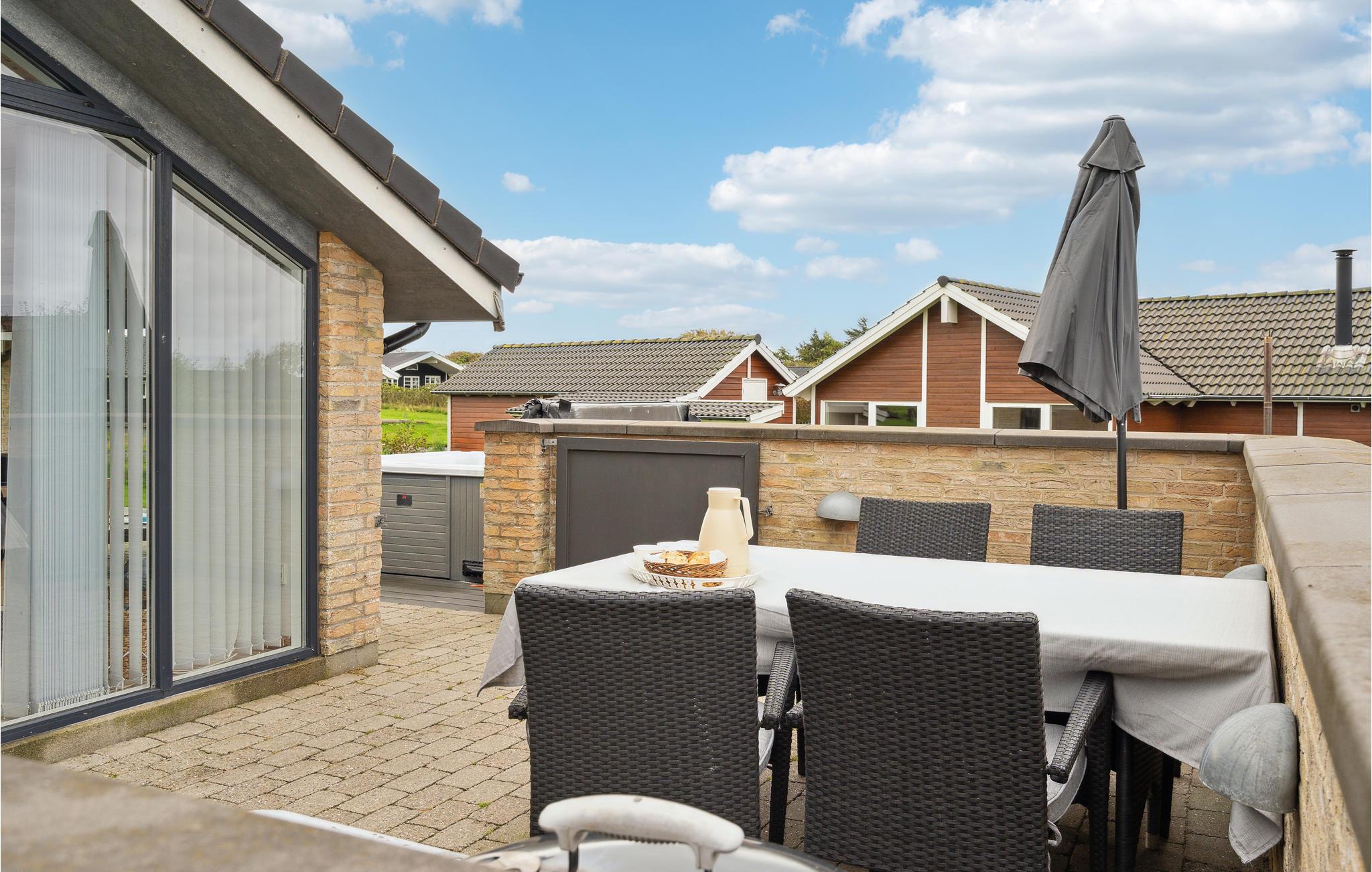 Hier ist die Rede von einem Ferienhaus, dessen Eigentümer wirklich auf Qualität geachtet hat bei der Einrichtung sowohl als bei der Wahl der Materialien. Ein exklusives Ferienhaus für den wählerischen Gast oder Gäste, die gewisse Extras zu schätzen wissen. Das Haus ist die perfekte Urlaubsbasis für Familien, auch wenn Sie Urlaub mit mehreren Generationen verbringen möchten. Auf der teilweise überdachten Terasse des Hauses steht ein Whirlpool für 5 Personen, wo Sie ganzjährig das warme Wasser und den Blick auf die Umgebung genießen können. Das Gebiet um Ejsingholm ist als landschaft "der offenen Weiten" bekannt. Die Grundstücke sind auf verschiedenen Ebenen gelegen so dass fast aus allen Häusern eine gute Aussicht auf den Limfjord zu genießen ist. Es gibt gute Möglichkeiten zum Angeln und Surfen. In fußläufiger Entfernung liegt ein Campingplads, dessen Einrichtungen sie benutzen können. Nur wenige Kilometer von Ejsing liegt die Handbjerg Marina wo Sie Stjerneskud und andere lokale Spezialitäten probieren können. Auch die Orte Skive und Holstebro sind nur eine halbe Autostunde entfernt und locken mit Einkaufsmöglichkeiten, Kultur und Gastronomie.
