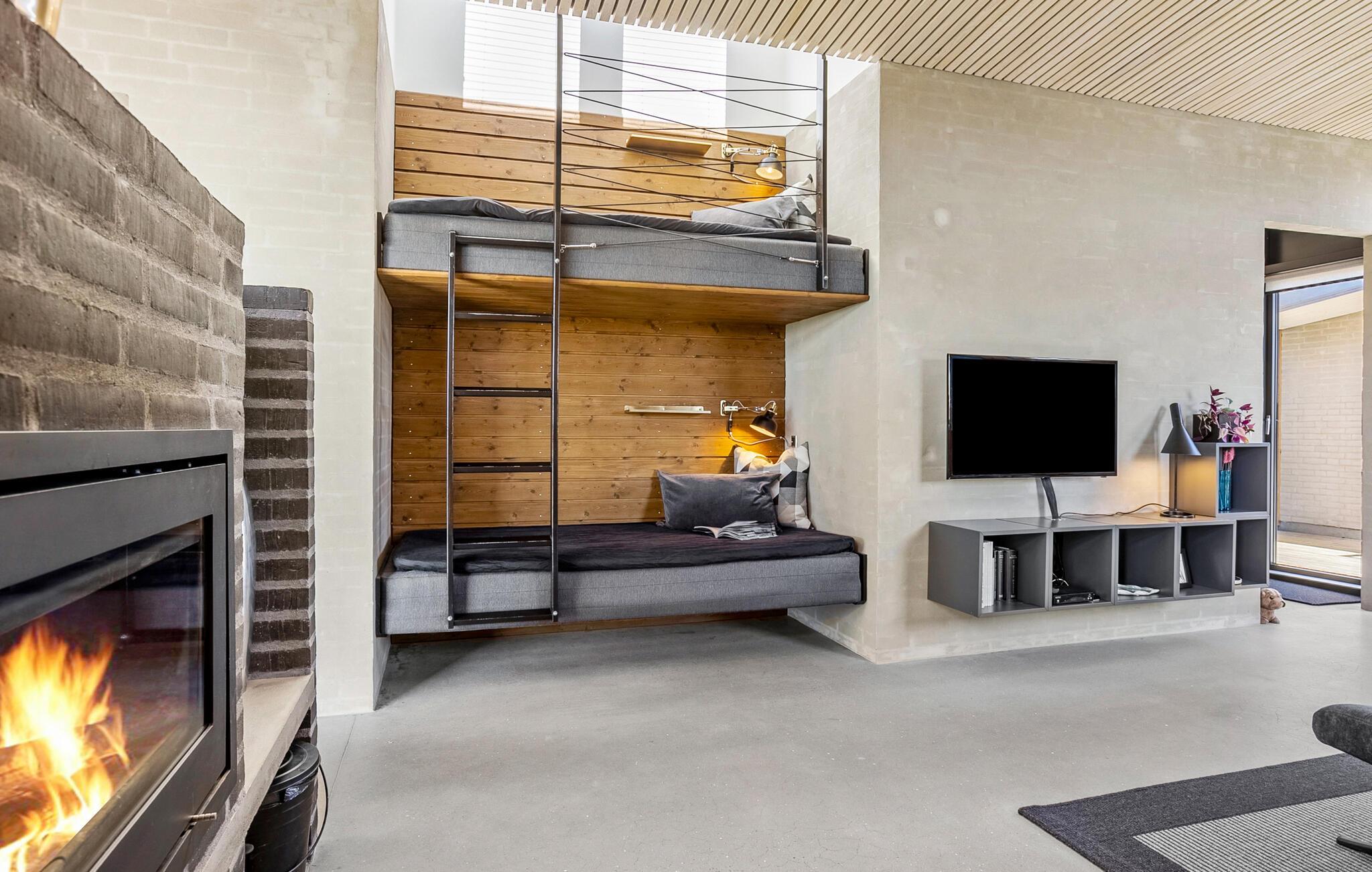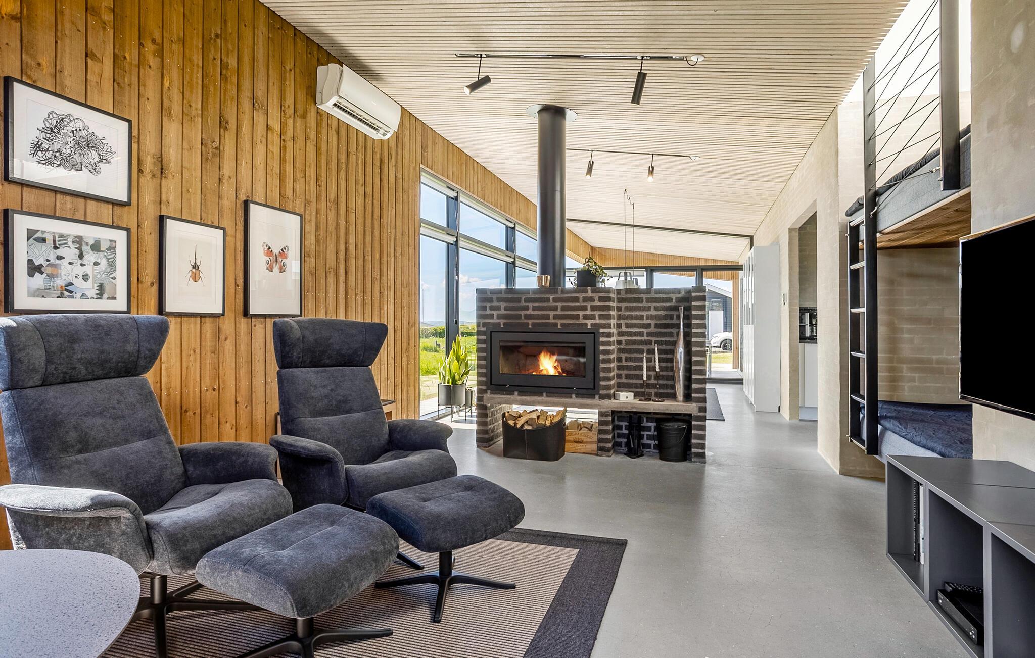 Dieses Ferienhaus liegt mit Blick über den Limfjord. Das von einem Architekt entworfene Haus ist aus erwählten und für die Region typischen Materialien gebaut worden. Besonders hervorzuheben sind die weiten Fensterpartien und der offene Dachfirst, beides Faktoren, die den fantastischen Lichteinfall begünstigen.