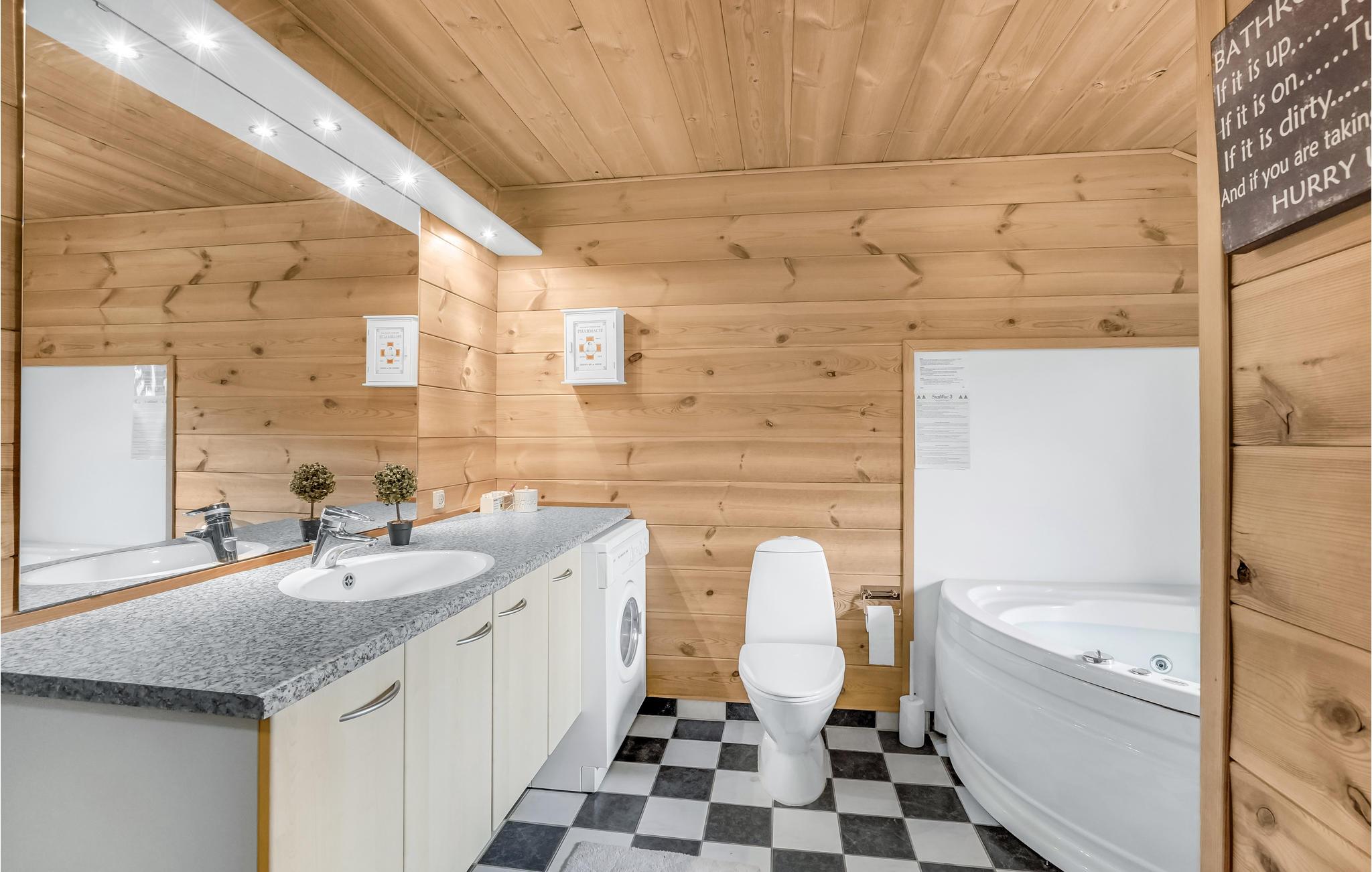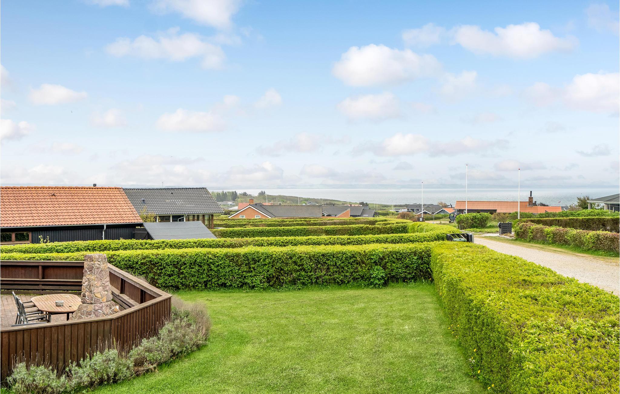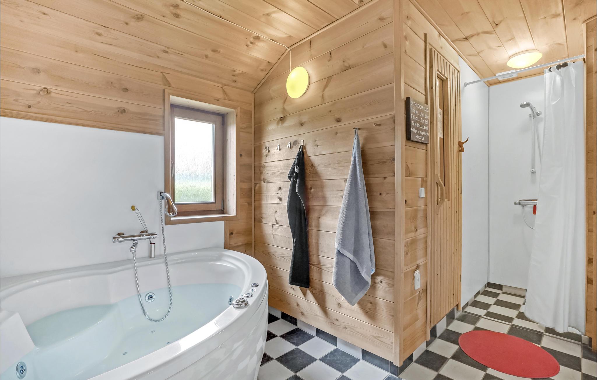 Willkommen in diesem geräumigen Ferienhaus in Nordjütland. Der Mittelpunkt des Hauses ist der Wohnbereich mit gemütlicher Sofaecke und Esstisch, wo Sie viele schöne Abende oder ruhige Nachmittage mit einem guten Buch verbringen können, während im Kamin ein Feuer prasselt. Von hier gelangen Sie auch zu dem Wintergarten, der extra Platz für gesellige Abendessen mit allen Gästen bietet. Nach einem langen Spaziergang am Fjord laden die Sauna und der Whirlpool zu schönen Wellness-Momenten ein.