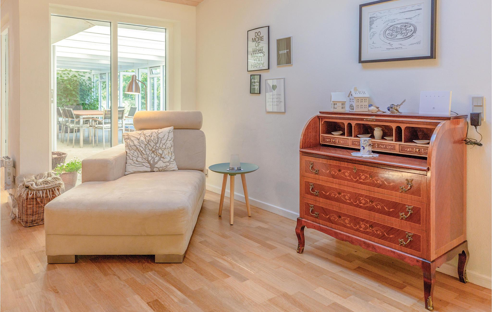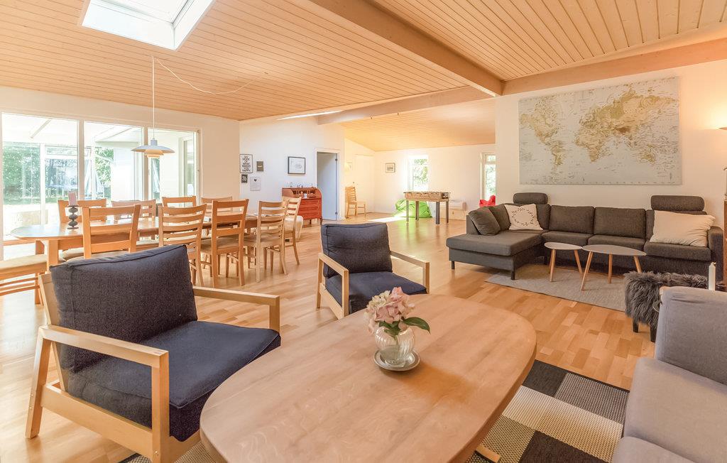 Das geräumige Ferienhaus bietet der großen Familie ein charmantes Ambiente für den Urlaub. 5 Schlafzimmer, Gäste-WC, Badezimmer mit Dusche und Wohnküche mit offenem Kamin sind im Inneren vorhanden. Auf der Terrasse haben Sie es bei jedem Wetter schön. Im Garten haben die Kinder Platz zum Toben und auch ein Grill ist vorhanden. Durch die Lage am Ende einer Sackgasse ist die Umgebung ruhig. So ruhig, dass sogar Rehe nicht verscheucht werden. Das Haus es liegt nahe an einem sehr guten Sandstrand mit Dünen. Als Betätigungsfelder in der Nähe sind ein Besuch im Kunstmuseum, Golfplatz, Tennis und gute Fischgründe überall an der Küste vorhanden. Auch eine Fahrt mit dem Fahrrad durch die Natur hier wird Ihnen gefallen. Denn die Landschaft, entstanden in der letzten Eiszeit, ist hügelig und abwechslungsreich. Oddsherred ist auch ein UNESCO-Geopark. An der Nordküste treffen Sie auf Kieselstrände, an der südwestlich gelegenen auf herrlichen Sand zum Baden. Frischen Fisch können Sie in Havnebyen kaufen, auch in Rørvig im Osten ist eine gute Fischräucherei zu finden. Schätzen werden Sie es auch, dass Sie auf einem Tagesausflug einfach den Dom von Roskilde, ebenso ein UNESCO-Welterbe, erreichen können. In Roskilde ist auch das interessante Wikingerschiffsmuseum anwesend.