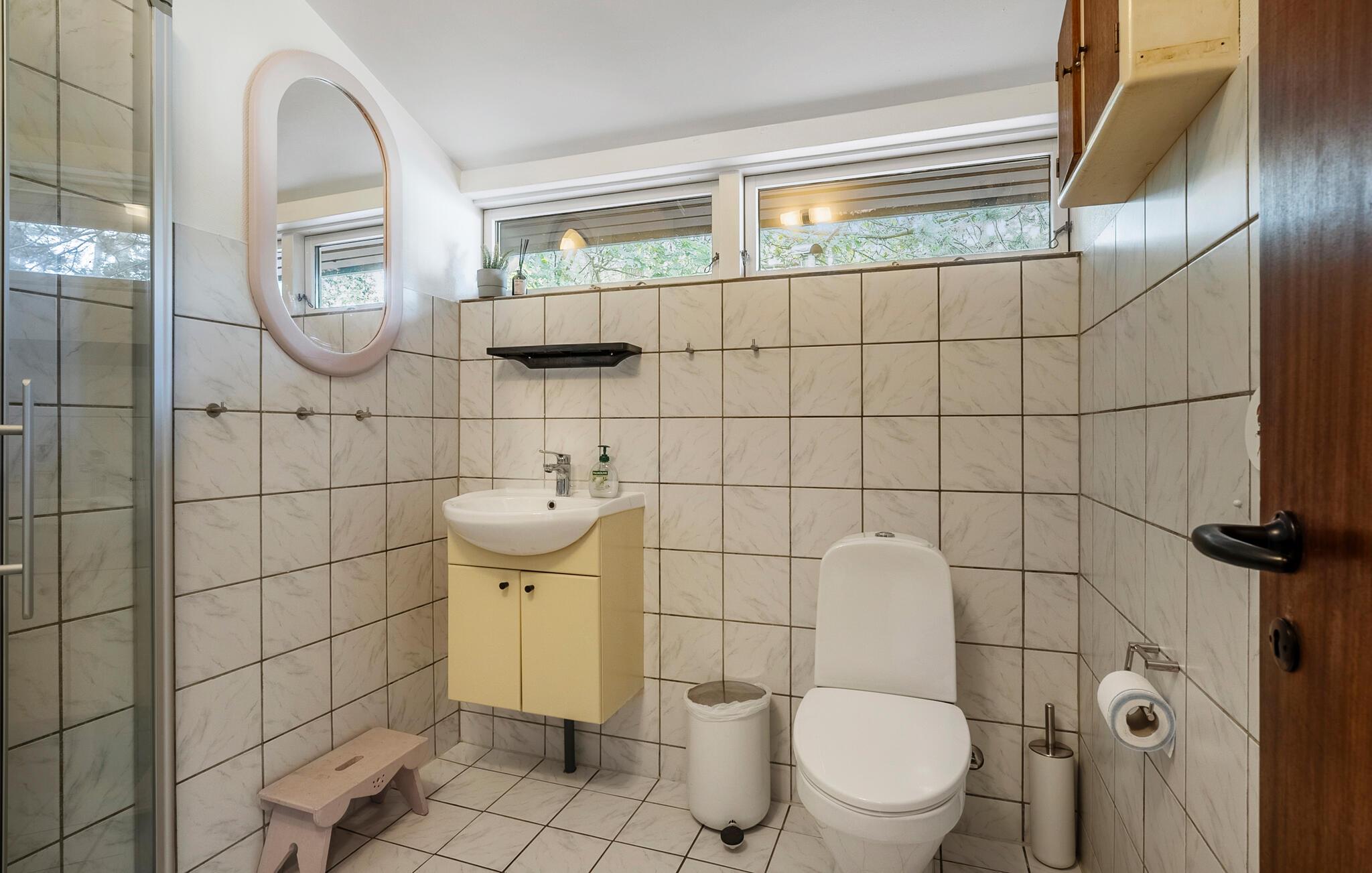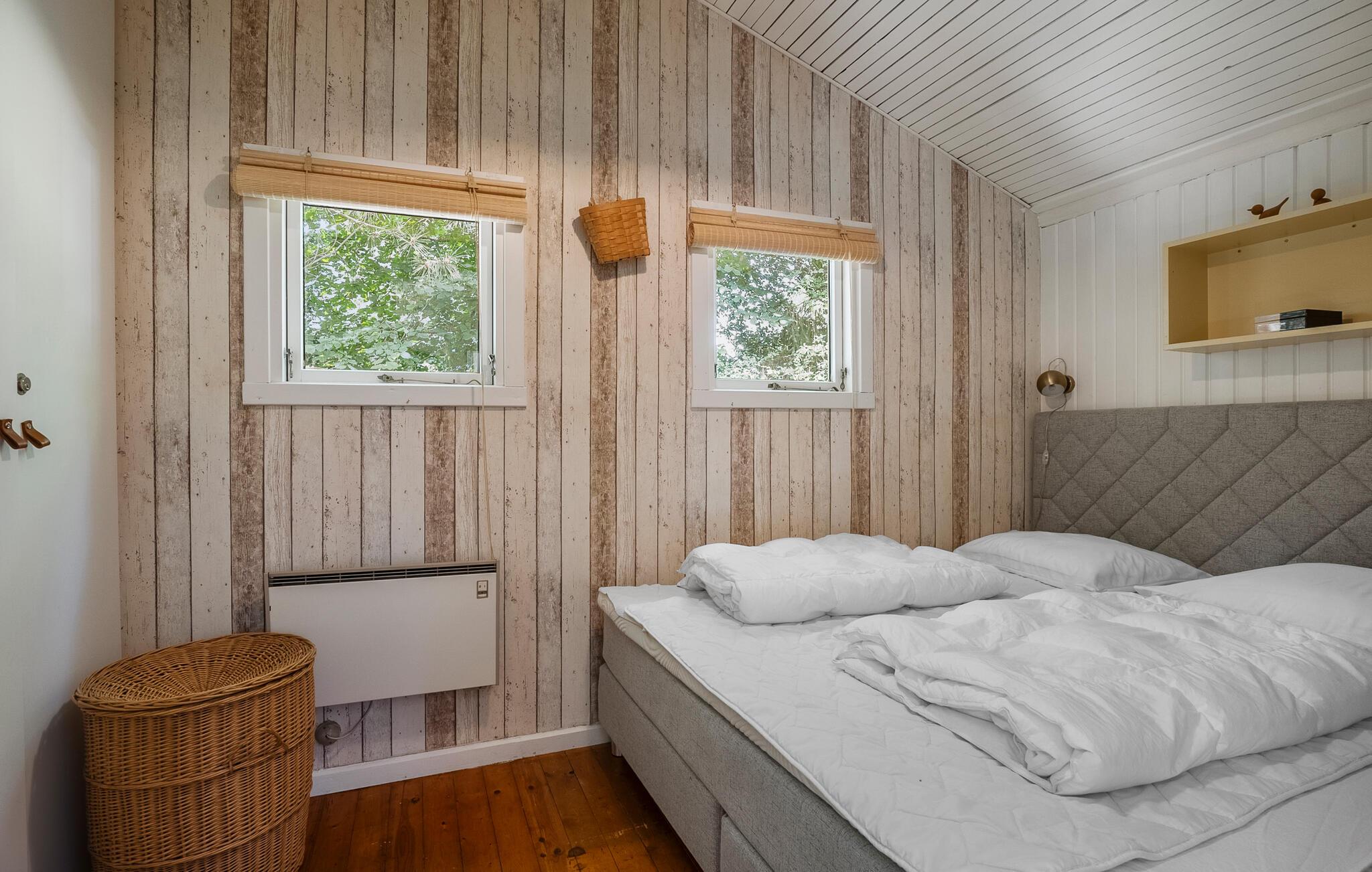 Erleben Sie Erholung und Komfort in diesem familienfreundlichen Ferienhaus mit Kamin und finnischem Holzbad in Ellinge Lyng.