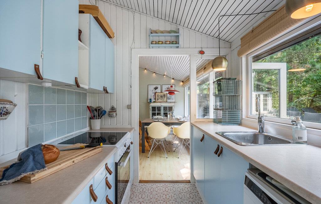 Lassen Sie den Alltag hinter sich und verbringen Sie unbeschwerte Ferientage in diesem kinderfreundlichen Ferienhaus. Hier genießen Sie die Ruhe der Natur, den Komfort der durchdachten Ausstattung und die Nähe zum Strand. Machen Sie es sich in Ihrem Haus auf dem Sofa am Kaminofen gemütlich. Bereiten Sie Ihre Mahlzeiten in der praktischen Küche zu und genießen Sie diese im lichtdurchfluteten Essbereich mit Blick ins Grüne.