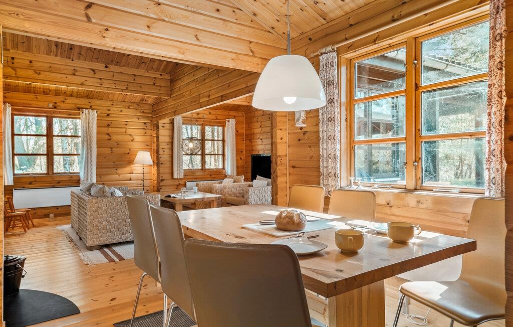 Ihr Ferienhaus liegt auf einem idyllischen Naturgrundstück und bietet eine Oase der Entspannung und dänischen Gemütlichkeit. Das Haus besticht durch seine warmen Holzelemente. Beginnen Sie Ihren Tag mit einem gemeinsamen Frühstück am Esstisch, das Sie in der großzügigen Küche in Ruhe zubereiten können. Oder servieren Sie Ihre Mahlzeiten auf der schönen Holzterrasse. Der Wohnbereich mit seinen bequemen Sofas lädt zu geselligen Stunden ein. Ob Sie ein gutes Buch lesen, mit den Kindern malen oder ein spannendes Kreuzworträtsel lösen, hier haben Sie alle Zeit der Welt. Das natürliche Licht, das durch die großen Fenster strömt, verstärkt die friedliche Atmosphäre.