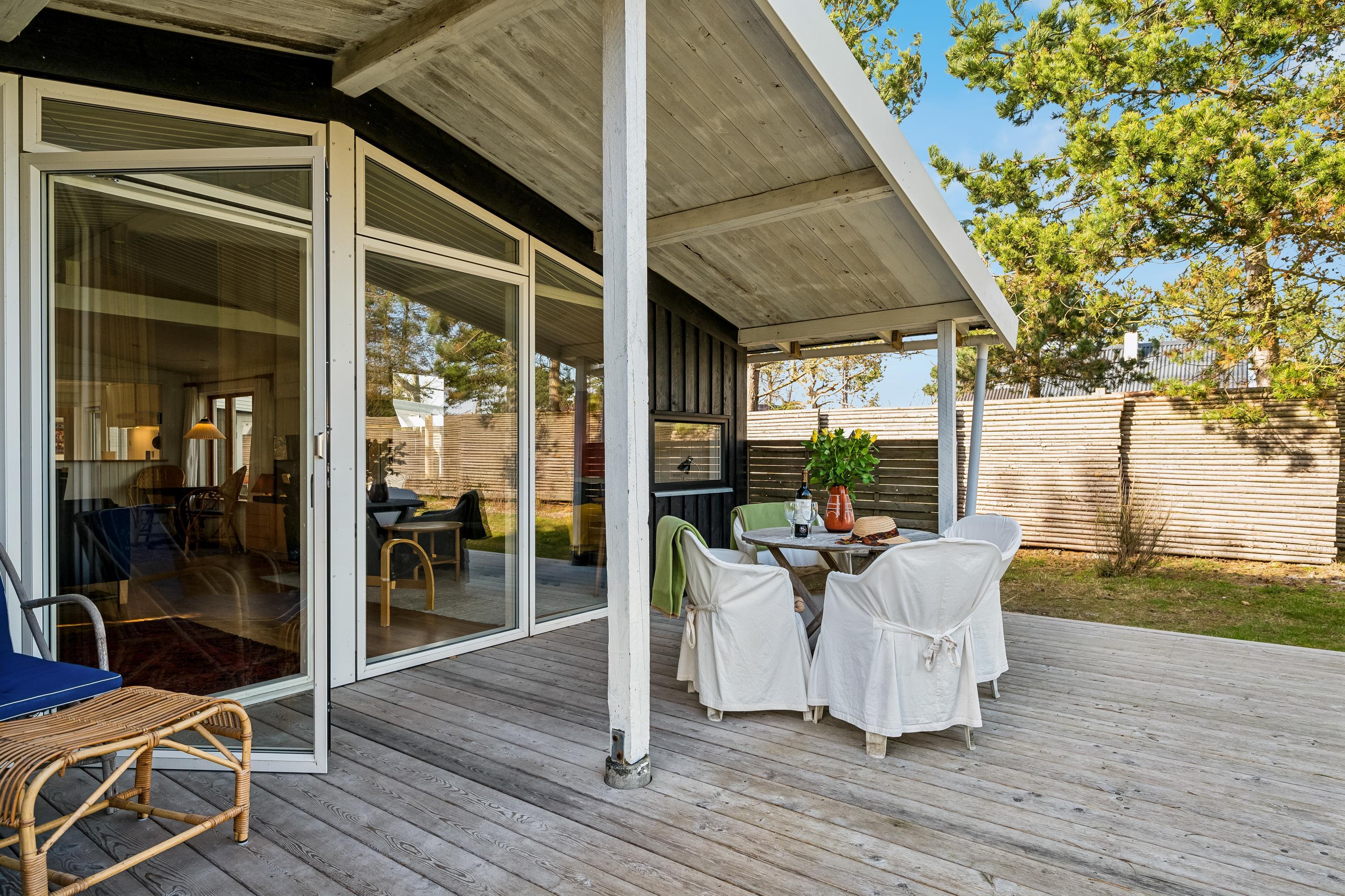 Sobald Sie die Tür dieses supergemütlichen Ferienhauses betreten, spüren Sie die echte Ferienhausatmosphäre im Haus. Hier finden Sie ein gemütliches und gut eingerichtetes Wohnzimmer mit Holzofen und Wärmepumpe und von dem aus Sie Zugang zu einer schönen überdachten Terrasse haben. Neu renovierte und funktionale Küchenabteilung mit u.a. Geschirrspüler. Die Schlafplätze des Hauses sind in drei gute Zimmer aufgeteilt, davon zwei mit Doppelbetten und ein Zimmer mit zwei Einzelbetten. Von einem Schlafzimmer gibt es direkten Zugang zu einem gemütlichen Sonnengarten. Schönes neues Badezimmer mit Dusche und Fußbodenheizung. Ein deutscher Sender: ZDF. Draußen finden Sie schöne Terrassenbereiche mit Gartenmöbeln und einen sehr gemütlichen überdachten Sonnengarten, sodass Sie an einem kühlen Abend problemlos draußen sitzen können. Mit der fantastischen Lage, die das Ferienhaus hat, haben Sie den schönsten Strand im „Hinterhof“. Vom Gelände aus können Sie auf die kleine Insel Hjelm blicken, die für Marsk Stigs Zuflucht im Jahr 1287 bekannt ist. Große Rasenfläche, die zum Spielen und Genießen im Freien einlädt.