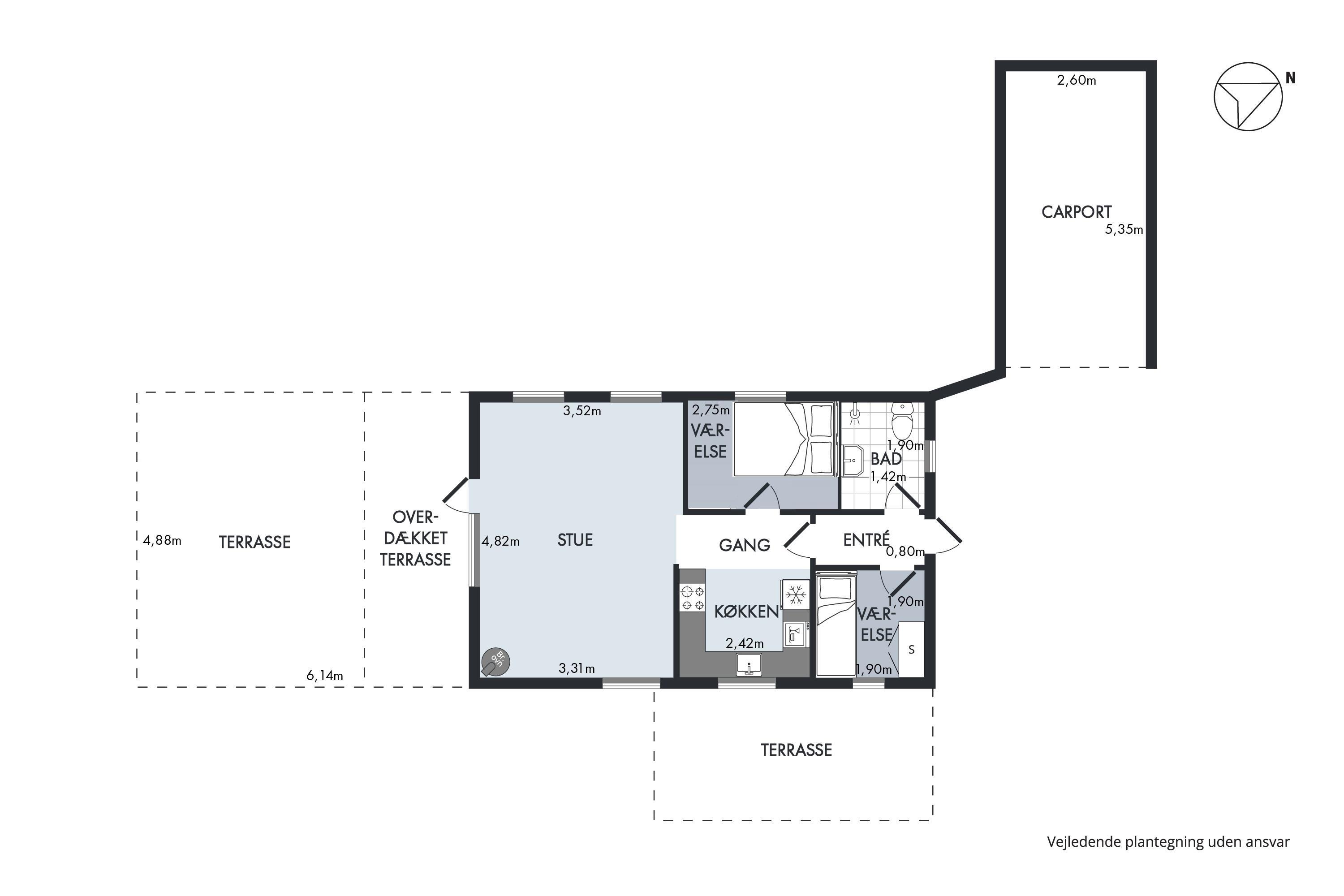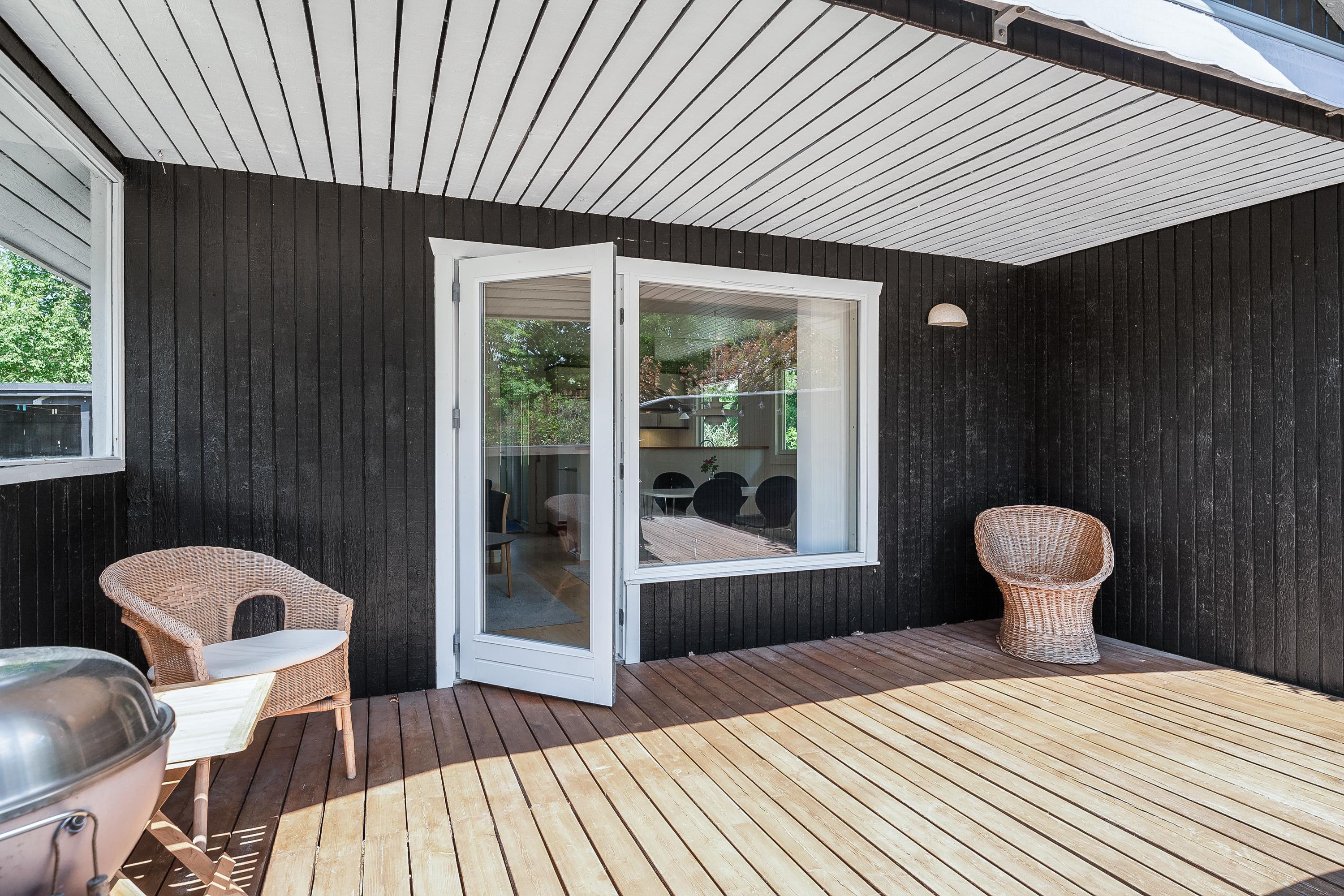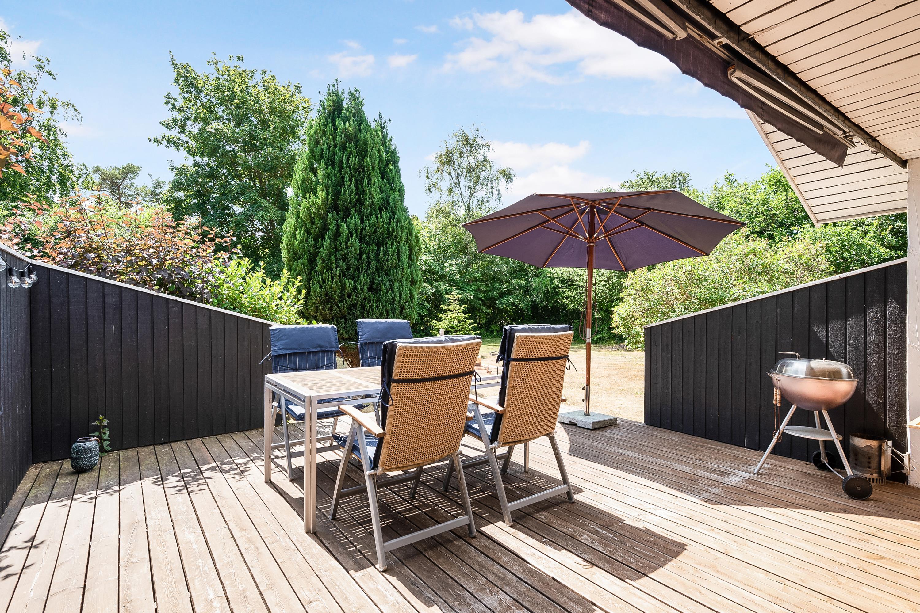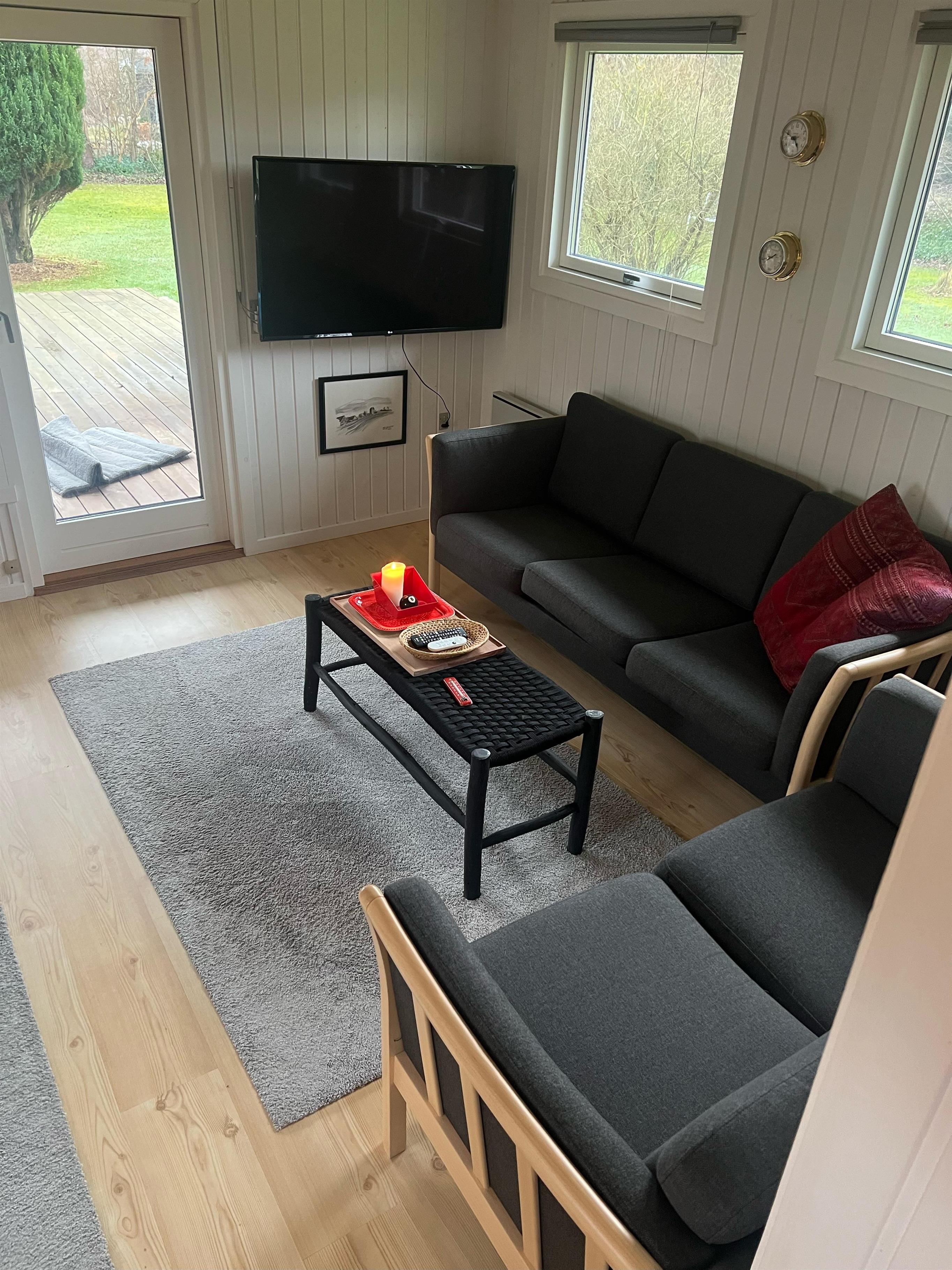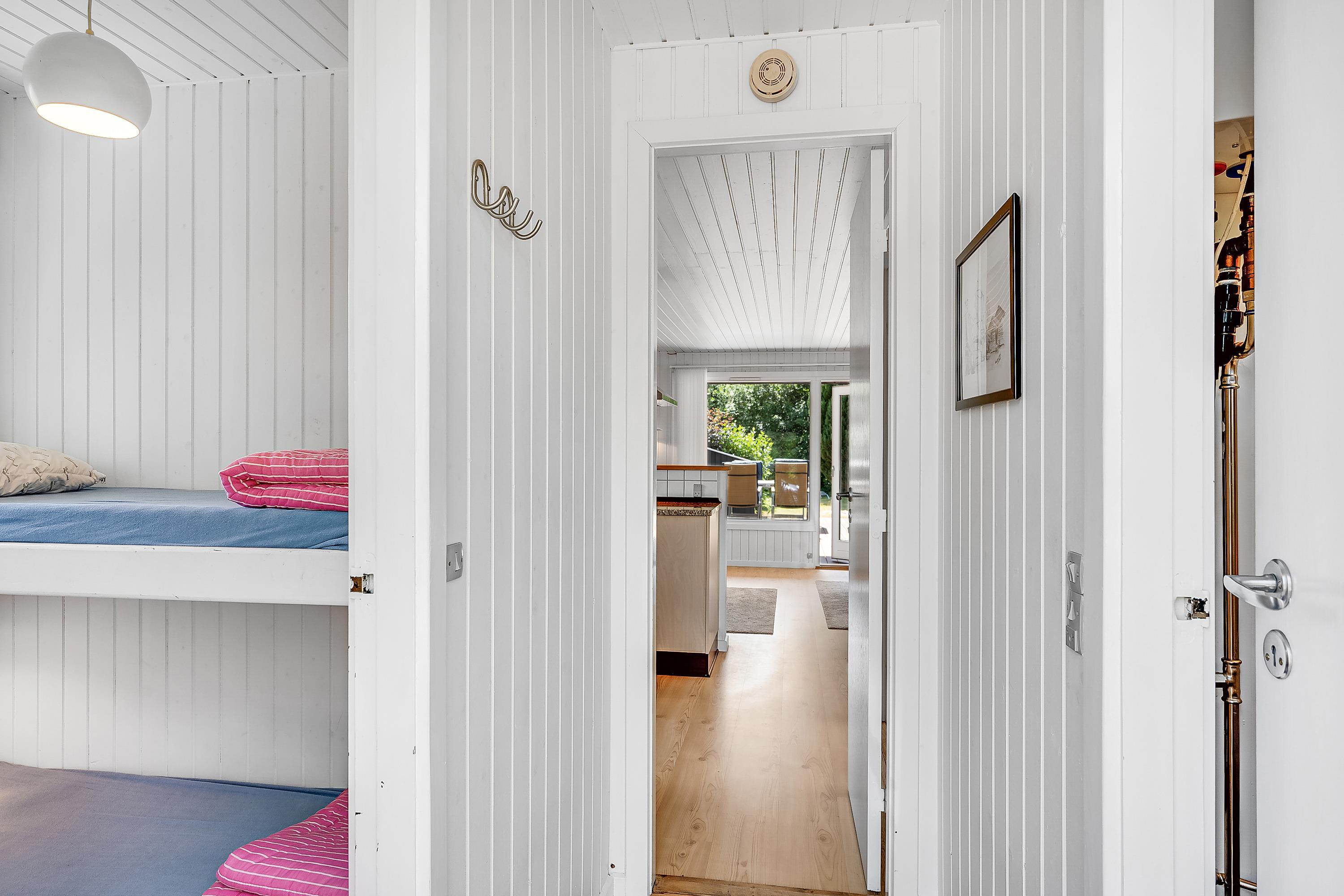 Sobald Sie die Tür betreten, spüren Sie die gemütliche Ferienhausatmosphäre, die Sie im Haus finden. Hier finden Sie ein gemütliches und gut eingerichtetes Wohnzimmer mit Holzofen und Zugang zu einer wirklich schönen Terrasse mit Gartenmöbeln. In Verbindung mit dem Wohnzimmer finden Sie die gemütliche Küchenabteilung mit unter anderem Geschirrspüler. Zwei kleinere Schlafzimmer, eines davon mit zwei Einzelbetten und das andere mit einem Etagenbett. Alle Betten sind 90 cm breit. Schönes Badezimmer mit Dusche und Fußbodenheizung. Es gibt WLAN im Haus und TV läuft über Chromecast. Das Mitbringen eines Hundes ist gestattet. Das Haus liegt auf einem schönen Grundstück, das sich zum Spielen, Ballspielen und für Freizeitaktivitäten im Freien eignet. Es gibt schöne Terrassenbereiche mit Gartenmöbeln, Liegestühlen, Sonnenschirmen und Grills und zum Strand sind es nur 5 Gehminuten.