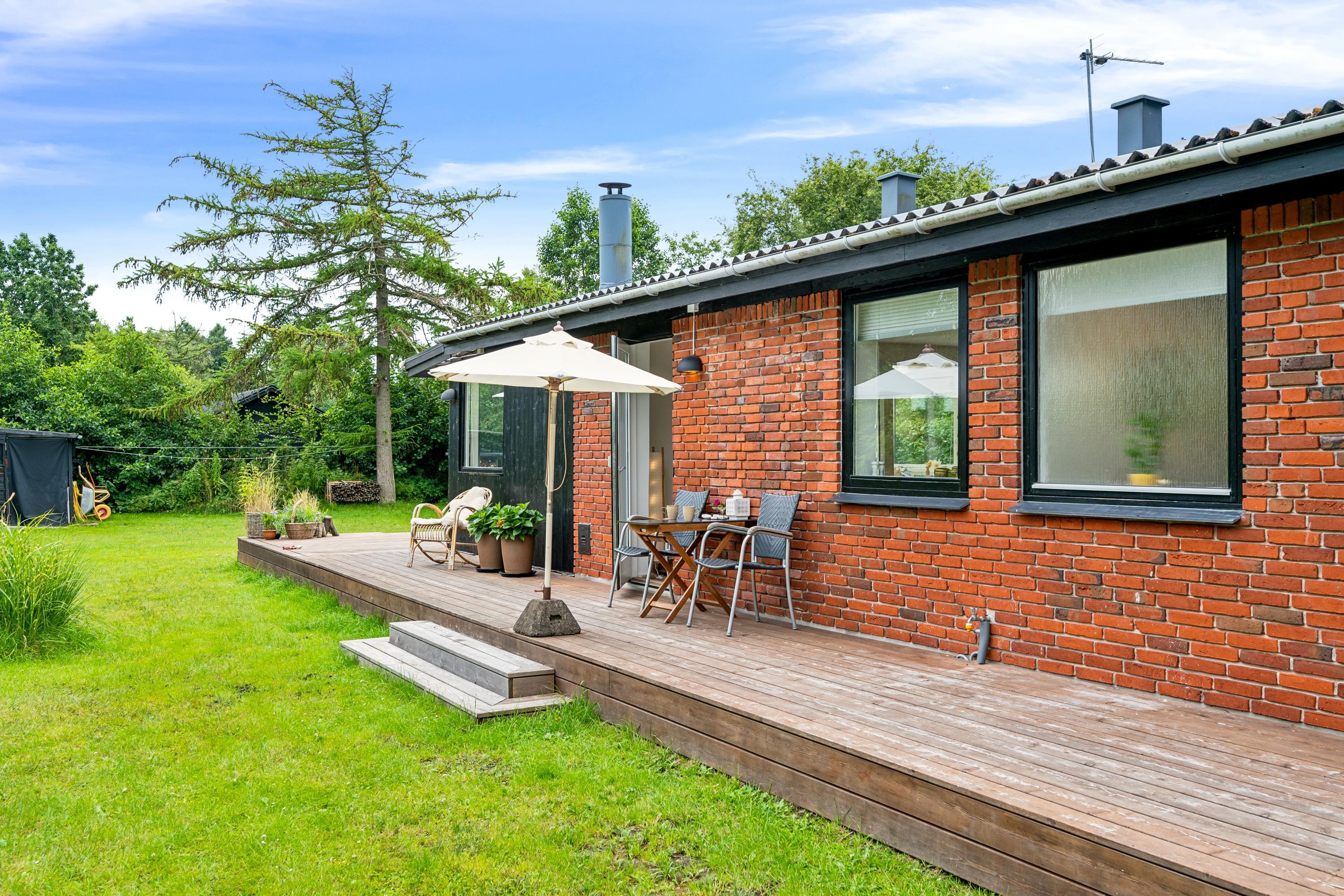 In der Nähe eines schönen Strandes finden Sie dieses gemütliche und gepflegte Ferienhaus. Hier finden Sie ein schönes und gut eingerichtetes Wohnzimmer mit Holzofen und Wärmepumpe. In Verbindung mit dem Wohnzimmer befindet sich die gemütliche Küche mit u.a. Geschirrspüler und eine gemütliche Essecke. Vom Wohnzimmer aus gelangt man in einen schönen eingerichteten Wintergarten. Die Schlafplätze des Ferienhauses befinden sich in drei Schlafzimmern, darunter ein Zimmer mit zwei Einzelbetten, ein Zimmer mit einem Etagenbett und ein Zimmer mit einem Doppelbett. Schönes Badezimmer mit Dusche. Für die kleinen Feriengäste gibt es einen Hochstuhl und ein Kinderbett. Es gibt Internet im Haus und Fernsehen läuft über Streaming.