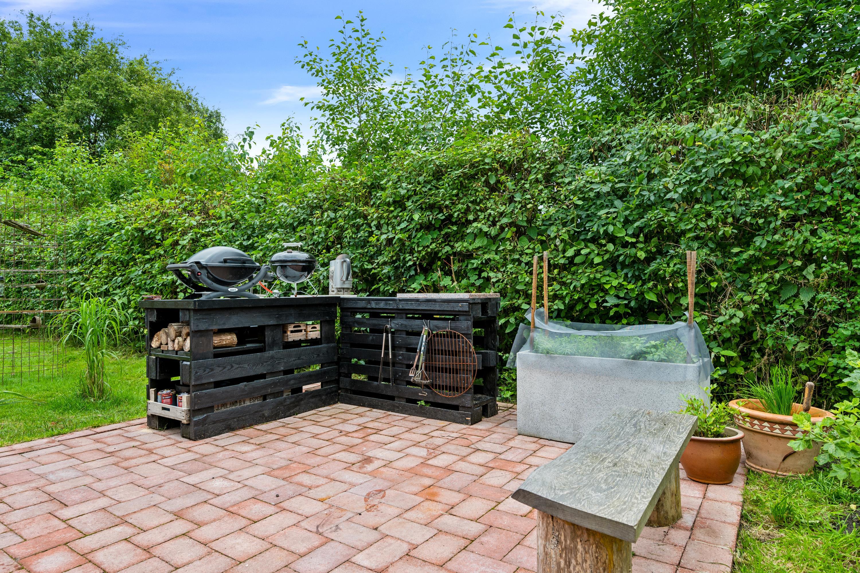 Das Haus liegt auf einem schönen und gepflegten Grundstück mit großer Liegewiese, geeignet zum Spielen und Ballspielen und mit Feuerstelle. Es gibt eine cirka 80 m2 neu angelegte Terrasse mit Gartenmöbeln und Grill. Für Angler gibt es einen Fischreinigungsplatz.