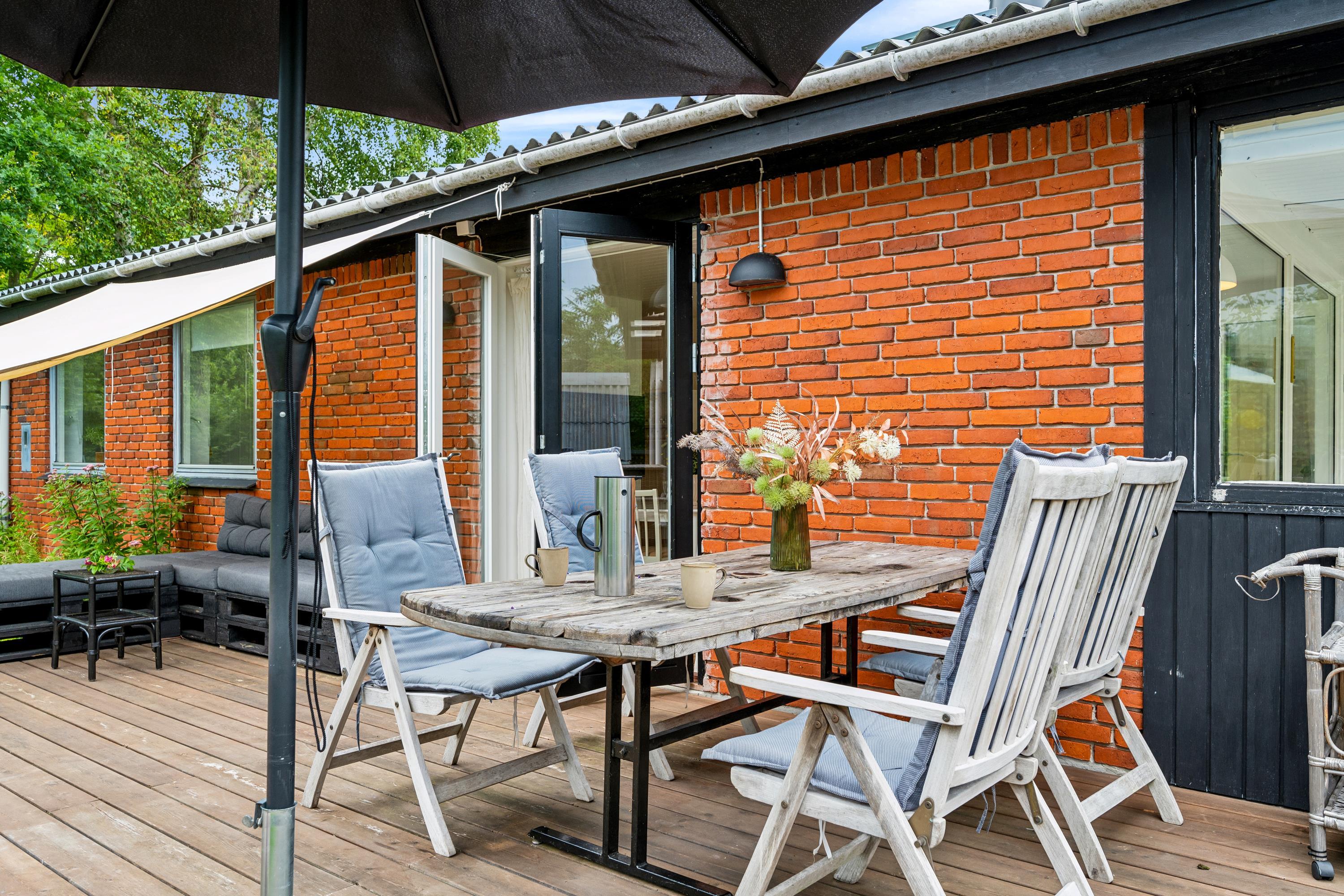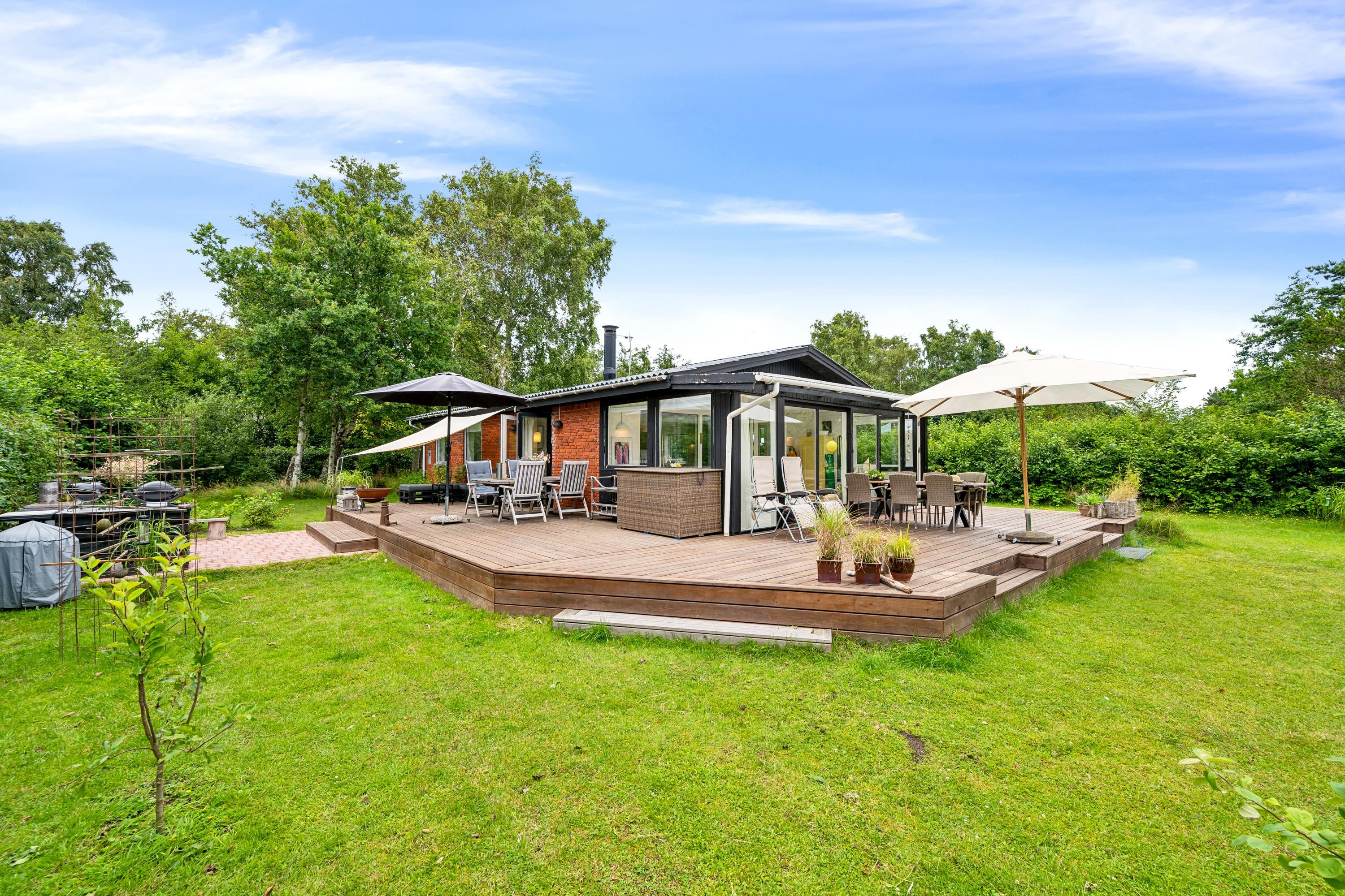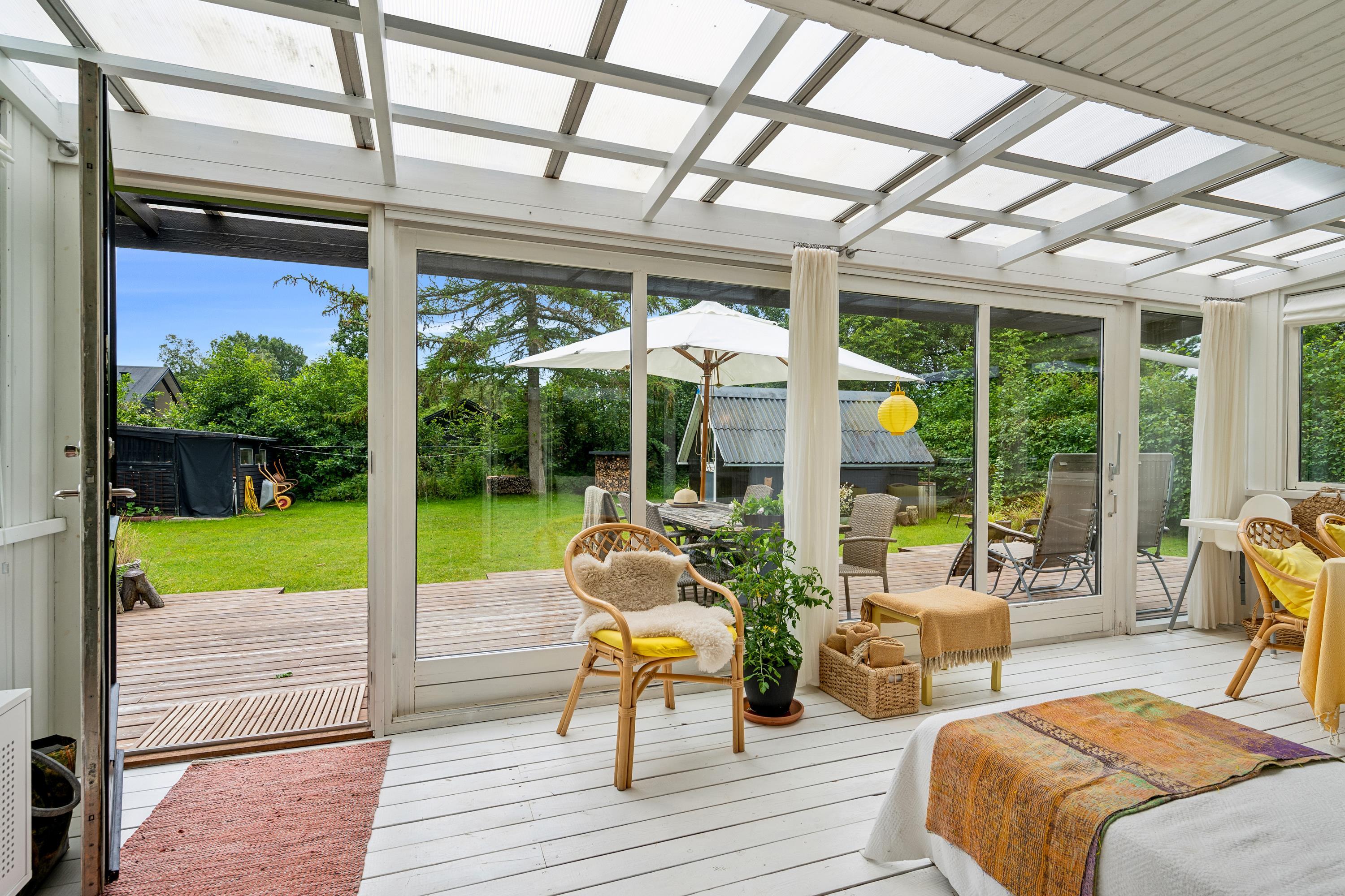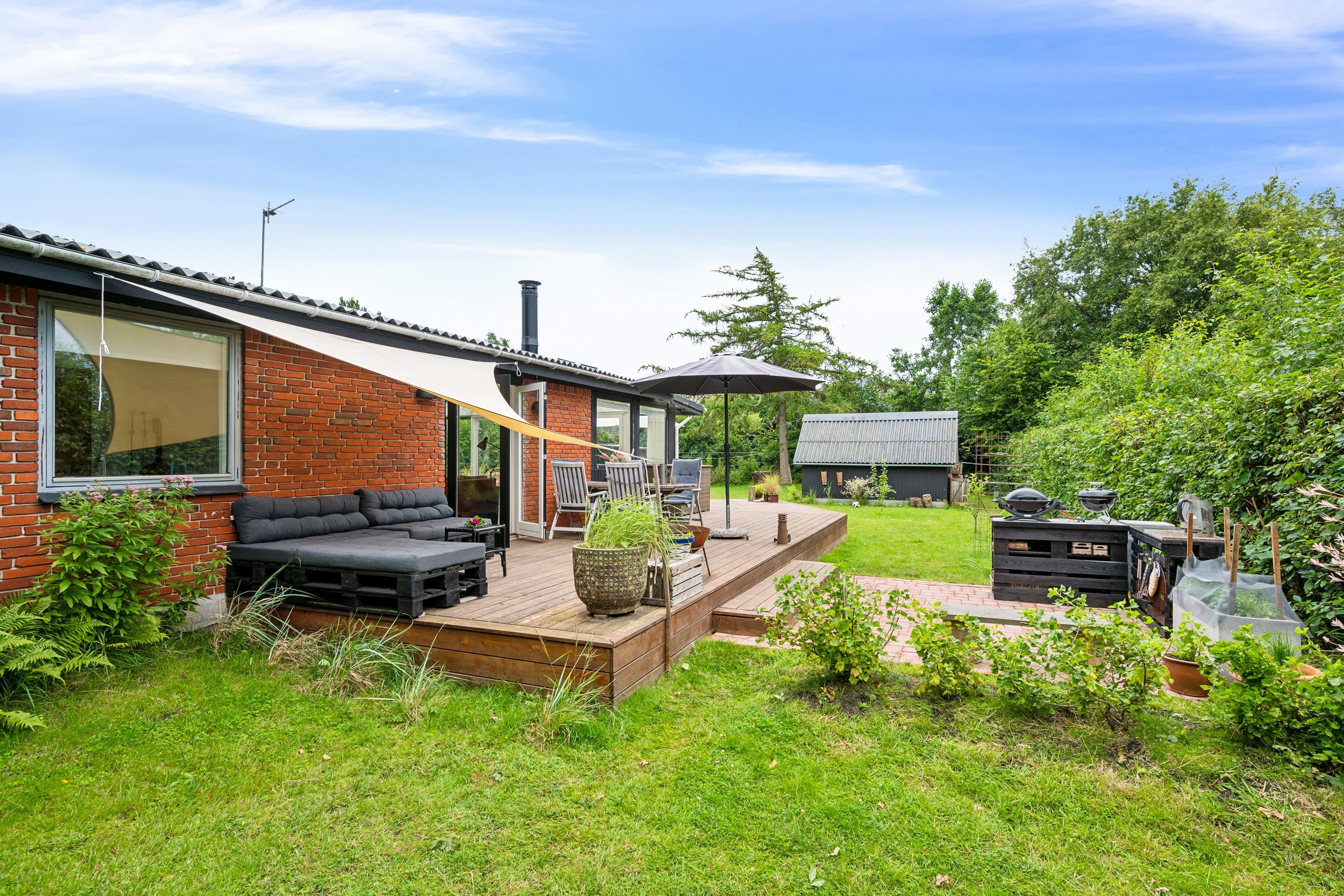 Gemütliches Ferienhaus nahe Elsegårde Strand mit Holzofen, Wintergarten und großem Garten für entspannte Tage am Meer.