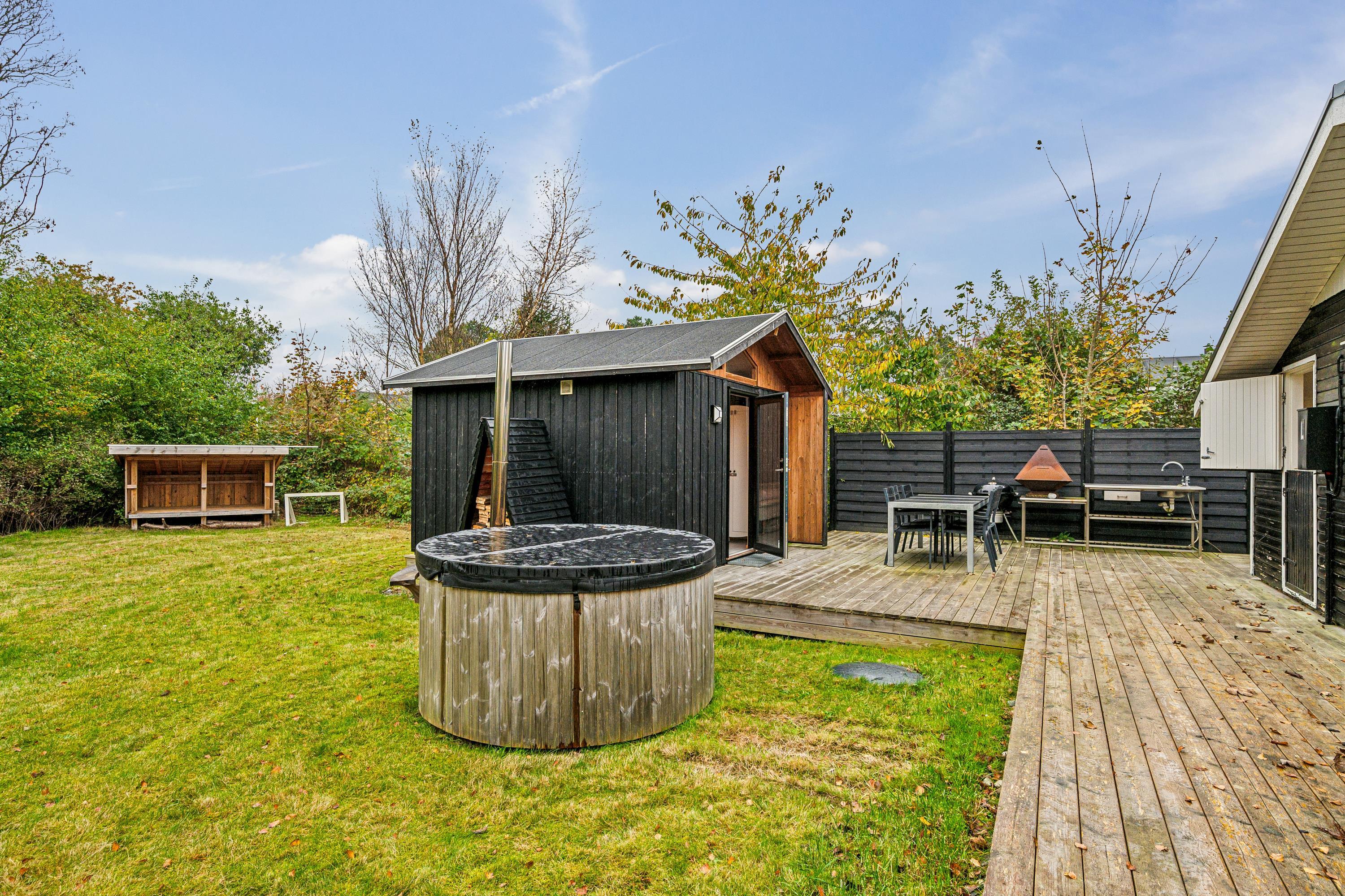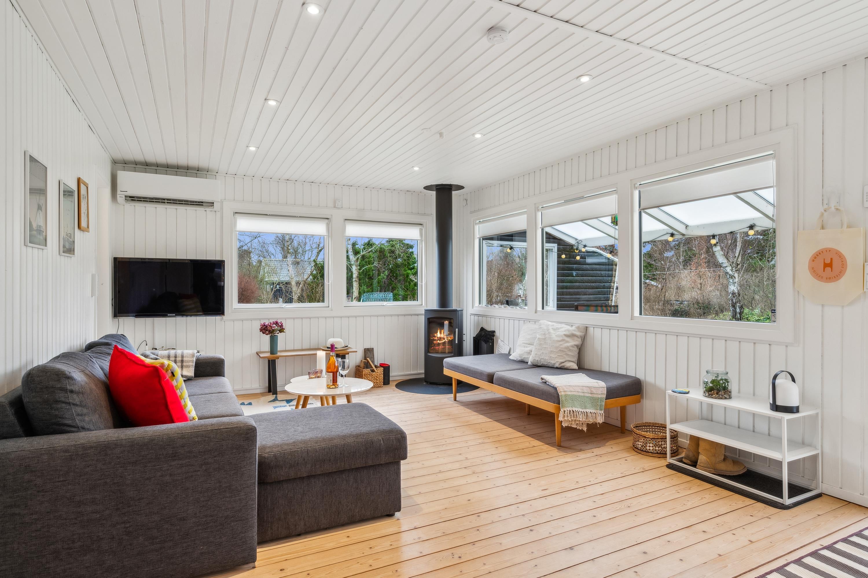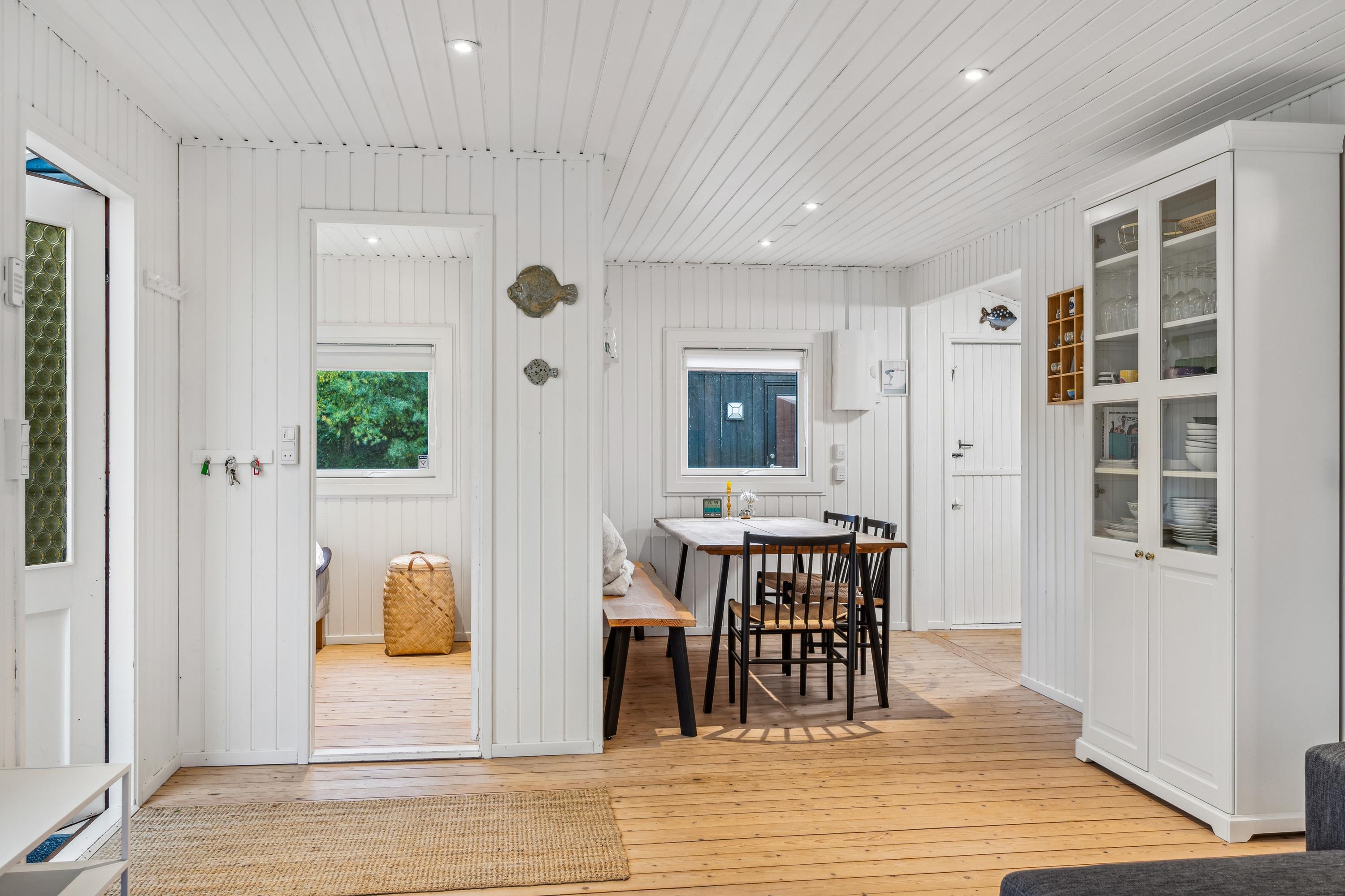 Nur 5 Gehminuten vom Strand entfernt liegt dieses ältere, aber gemütliche Ferienhaus. Das Ferienhaus verfügt über ein helles Wohnzimmer mit Kaminofen und Wärmepumpe sowie eine gemütliche Essecke. Vom Wohnzimmer aus gelangen Sie auf eine überdachte Terrasse. Die Küche ist klein, aber funktionell und mit Geschirrspüler ausgestattet. Von der Küche aus haben Sie Zugang zu einer großen offenen Terrasse mit Gartenmöbeln, Grill und Außenküche. Das Badezimmer ist gepflegt und mit einer Dusche ausgestattet. Es gibt WLAN im Ferienhaus und TV läuft über Chromecast/Streaming. Die Schlafplätze verteilen sich auf zwei Schlafzimmer sowie ein neueres Nebengebäude mit zwei Einzelbetten. Auf dem Grundstück gibt es eine gemütliche Schutzhütte (Shelter) sowie ein Wildnisbad, in dem Sie laue Sommerabende genießen und dem Rauschen des Meeres lauschen können.