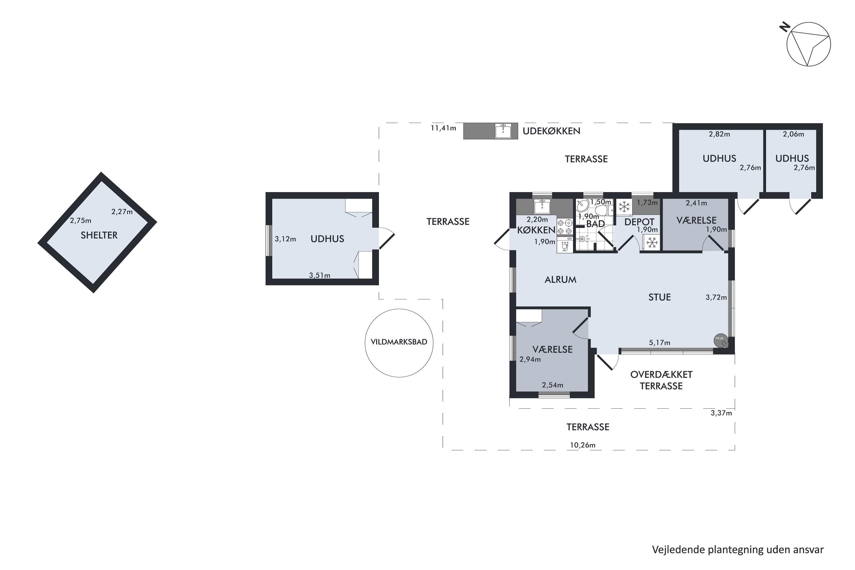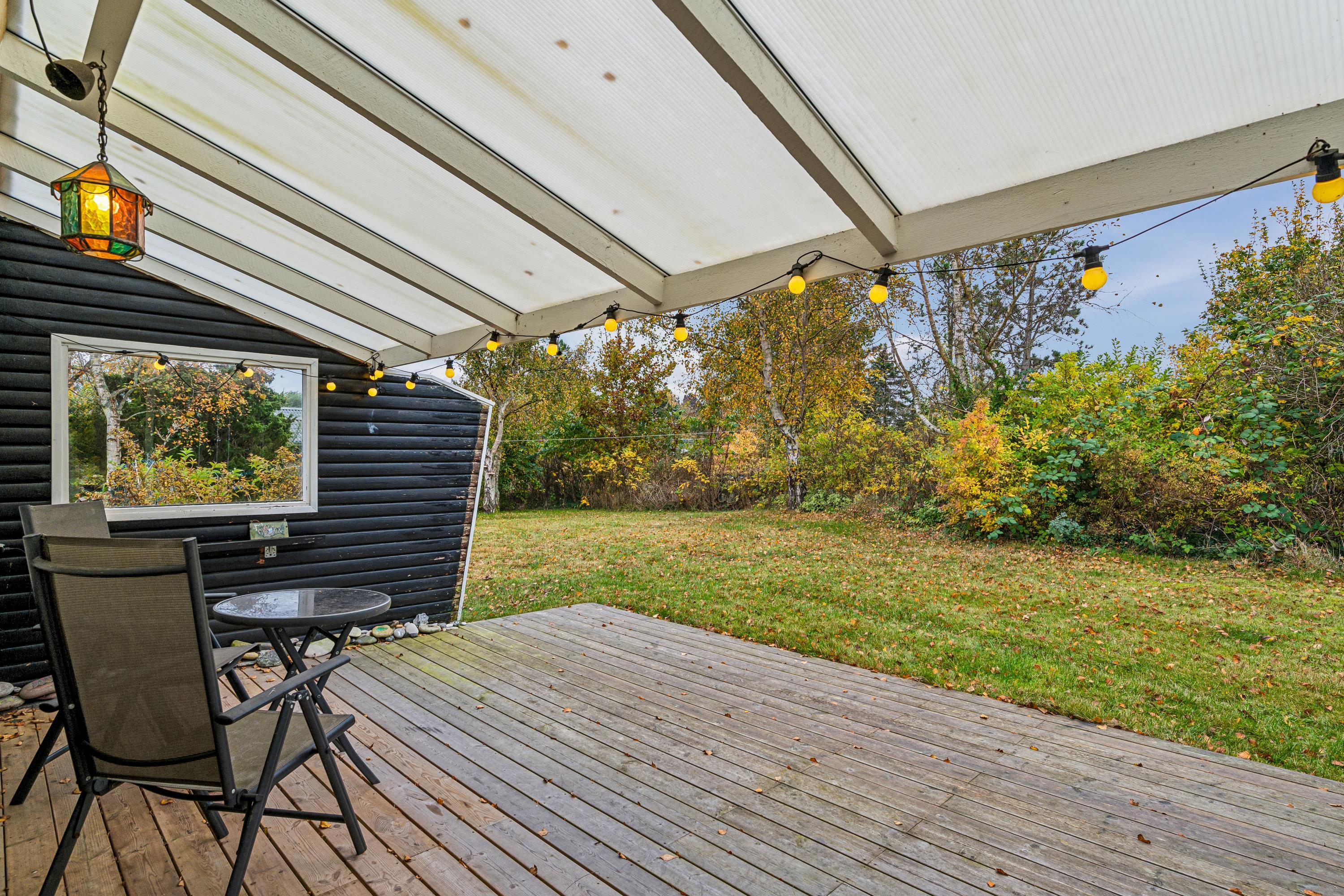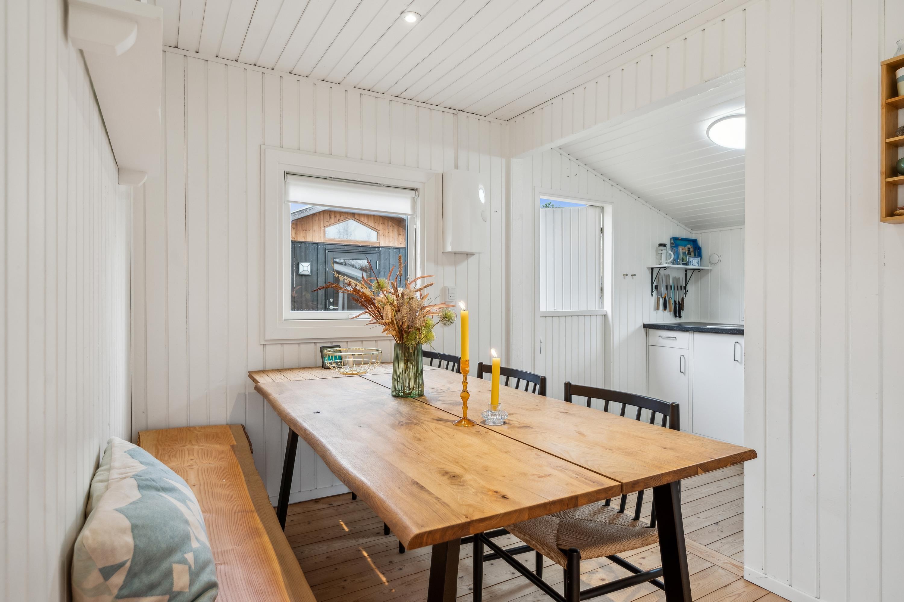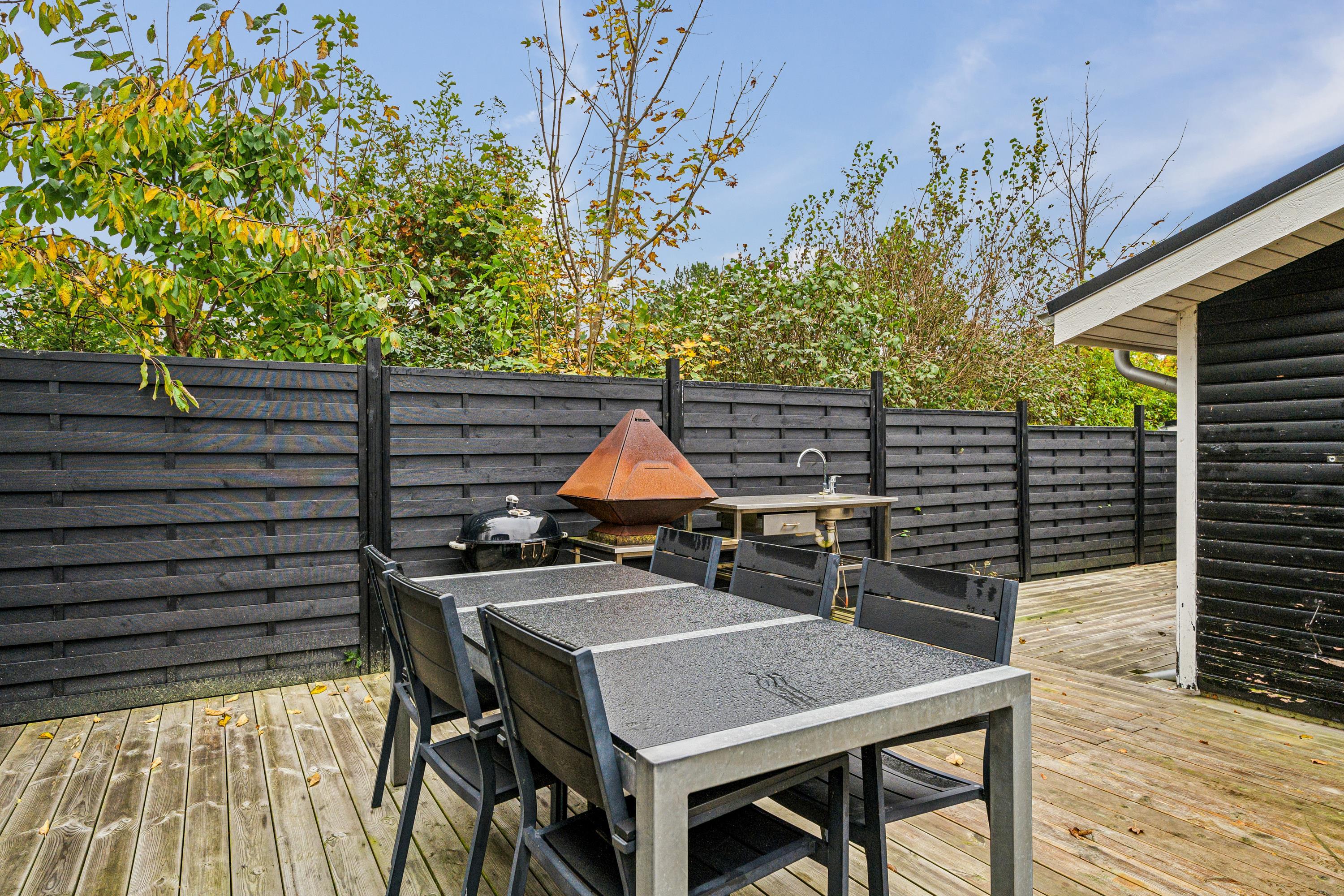 Nur 5 Gehminuten vom Strand entfernt liegt dieses ältere, aber gemütliche Ferienhaus. Das Ferienhaus verfügt über ein helles Wohnzimmer mit Kaminofen und Wärmepumpe sowie eine gemütliche Essecke. Vom Wohnzimmer aus gelangen Sie auf eine überdachte Terrasse. Die Küche ist klein, aber funktionell und mit Geschirrspüler ausgestattet. Von der Küche aus haben Sie Zugang zu einer großen offenen Terrasse mit Gartenmöbeln, Grill und Außenküche. Das Badezimmer ist gepflegt und mit einer Dusche ausgestattet. Es gibt WLAN im Ferienhaus und TV läuft über Chromecast/Streaming. Die Schlafplätze verteilen sich auf zwei Schlafzimmer sowie ein neueres Nebengebäude mit zwei Einzelbetten. Auf dem Grundstück gibt es eine gemütliche Schutzhütte (Shelter) sowie ein Wildnisbad, in dem Sie laue Sommerabende genießen und dem Rauschen des Meeres lauschen können.
