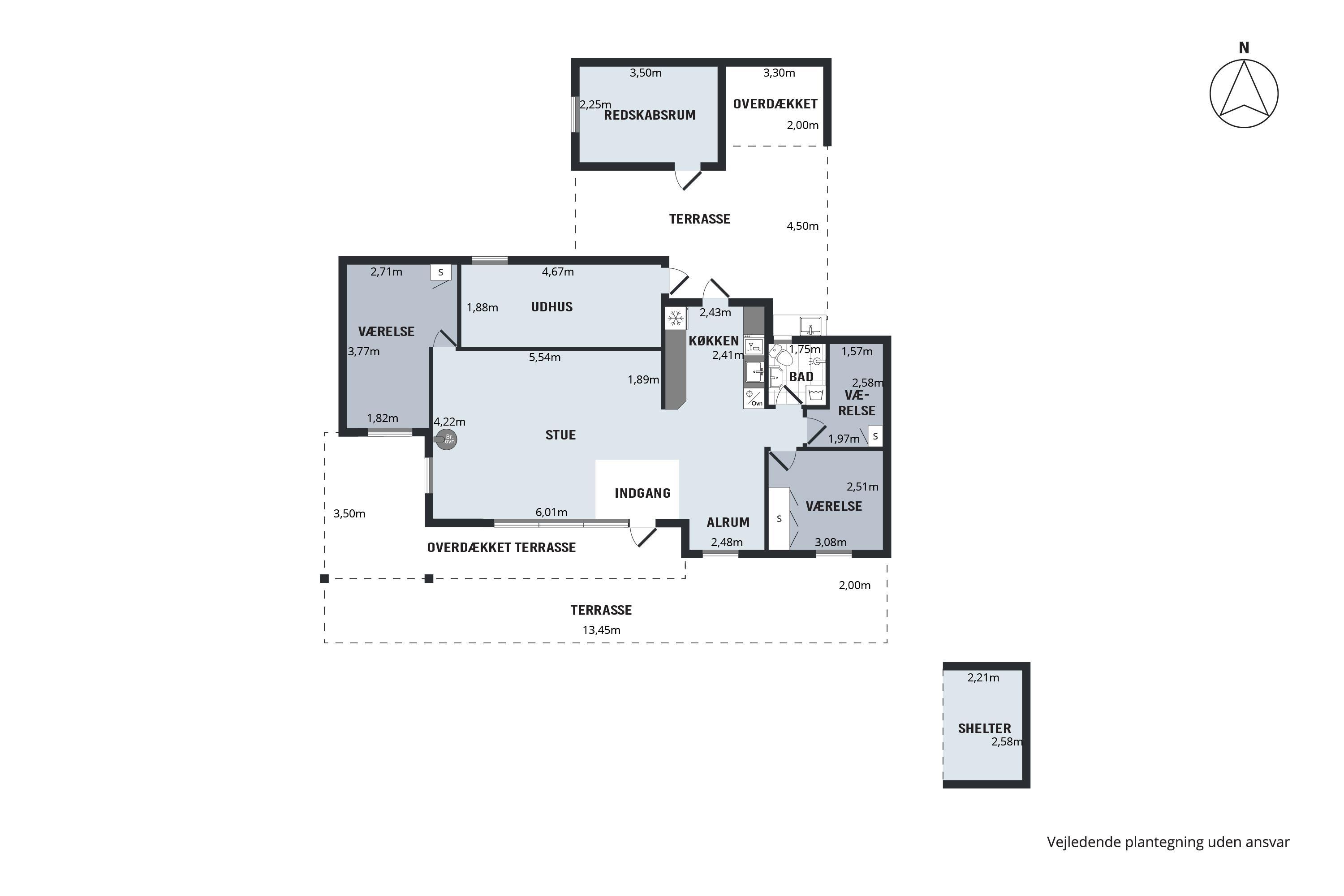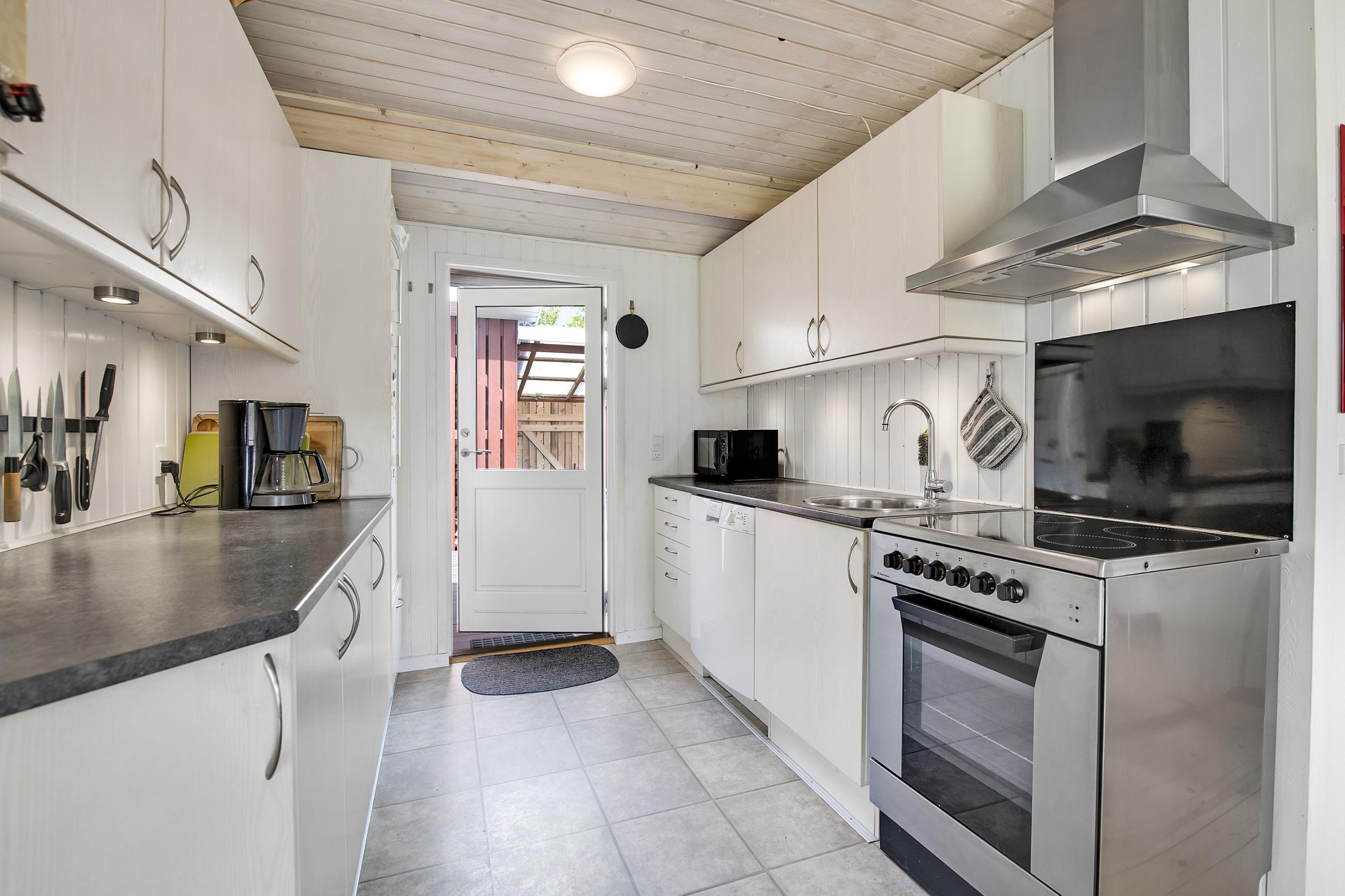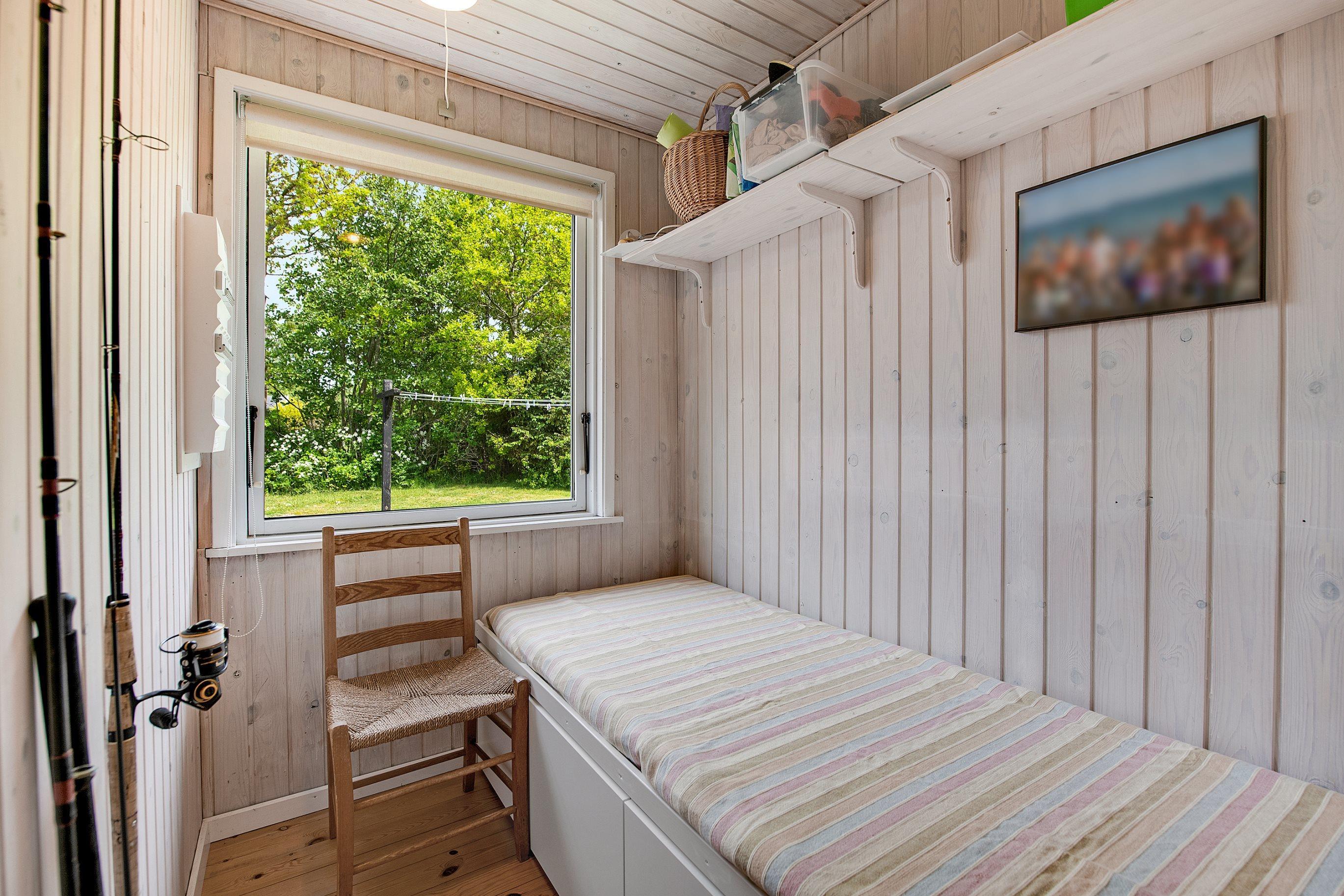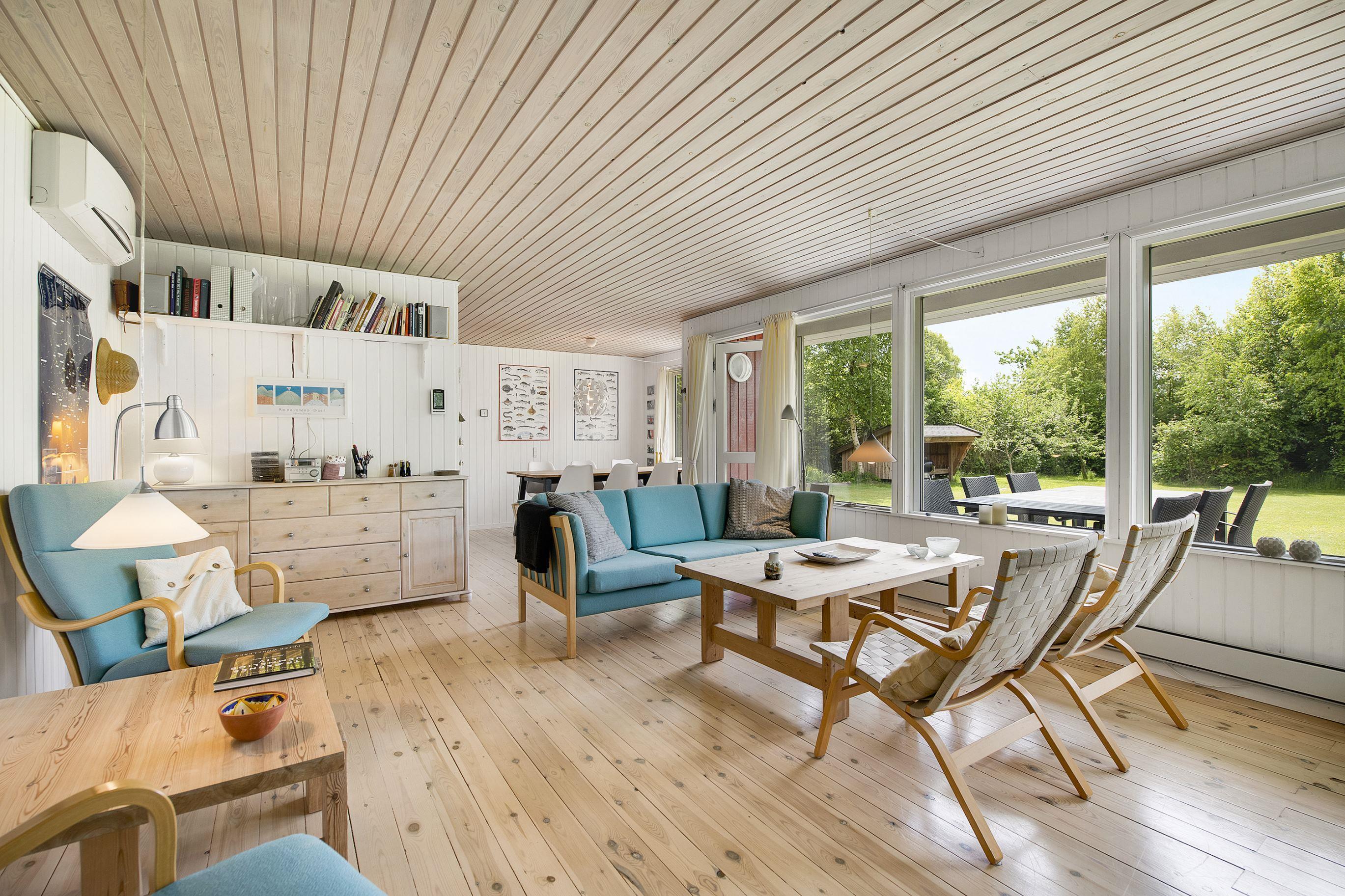 Helles und gut eingerichtetes Wohnzimmer mit Holzofen, Wärmepumpe mit Klimaanlage und Fernseher mit dänischen und deutschen (ZDF) Sendern. Schöner Essbereich mit Zugang zur schönen, funktionell und gut ausgestatteten Küche mit Cerankochfeld mit Backofen, Kühlschrank mit kleinem separatem Gefrierfach, Geschirrspüler und Mikrowelle. Extra Gefrierschrank im Werkzeugraum. Von der Küche aus gelangt man auf die hintere Terrasse. Das Haus schläft sechs Personen wie folgt: 1 Schlafzimmer mit Doppelbett und 1 Schlafzimmer mit Doppelbett und ein Etagenbett. Darüber hinaus gibt es ein kleineres Zimmer mit 1 Einzelbett. Freies WLAN.