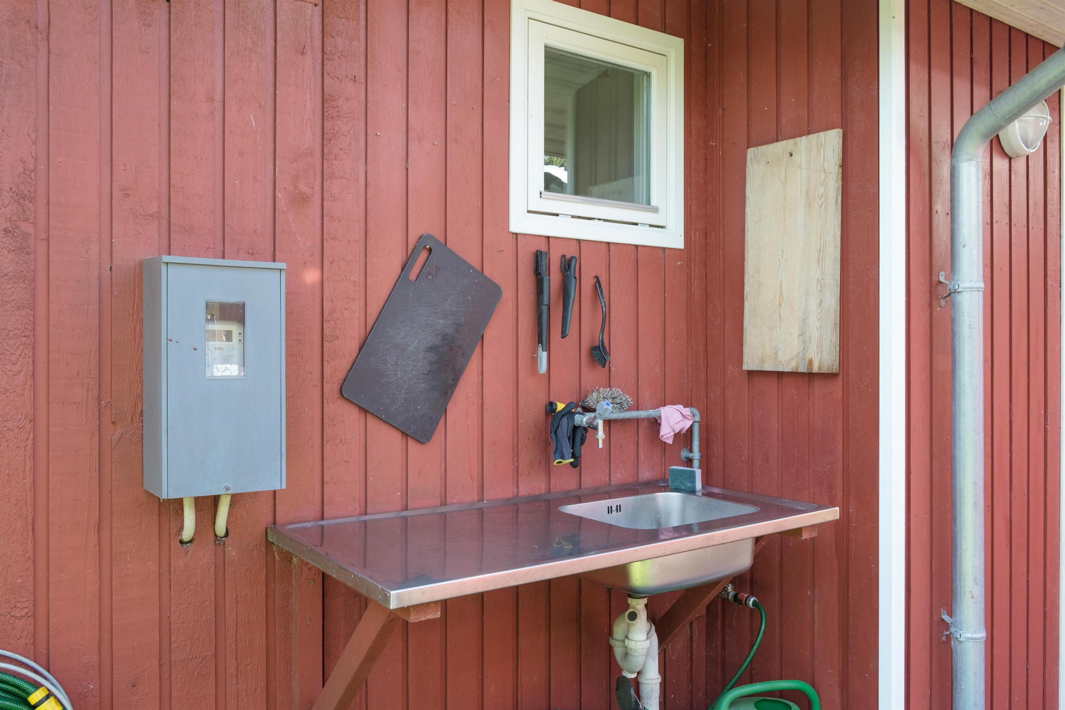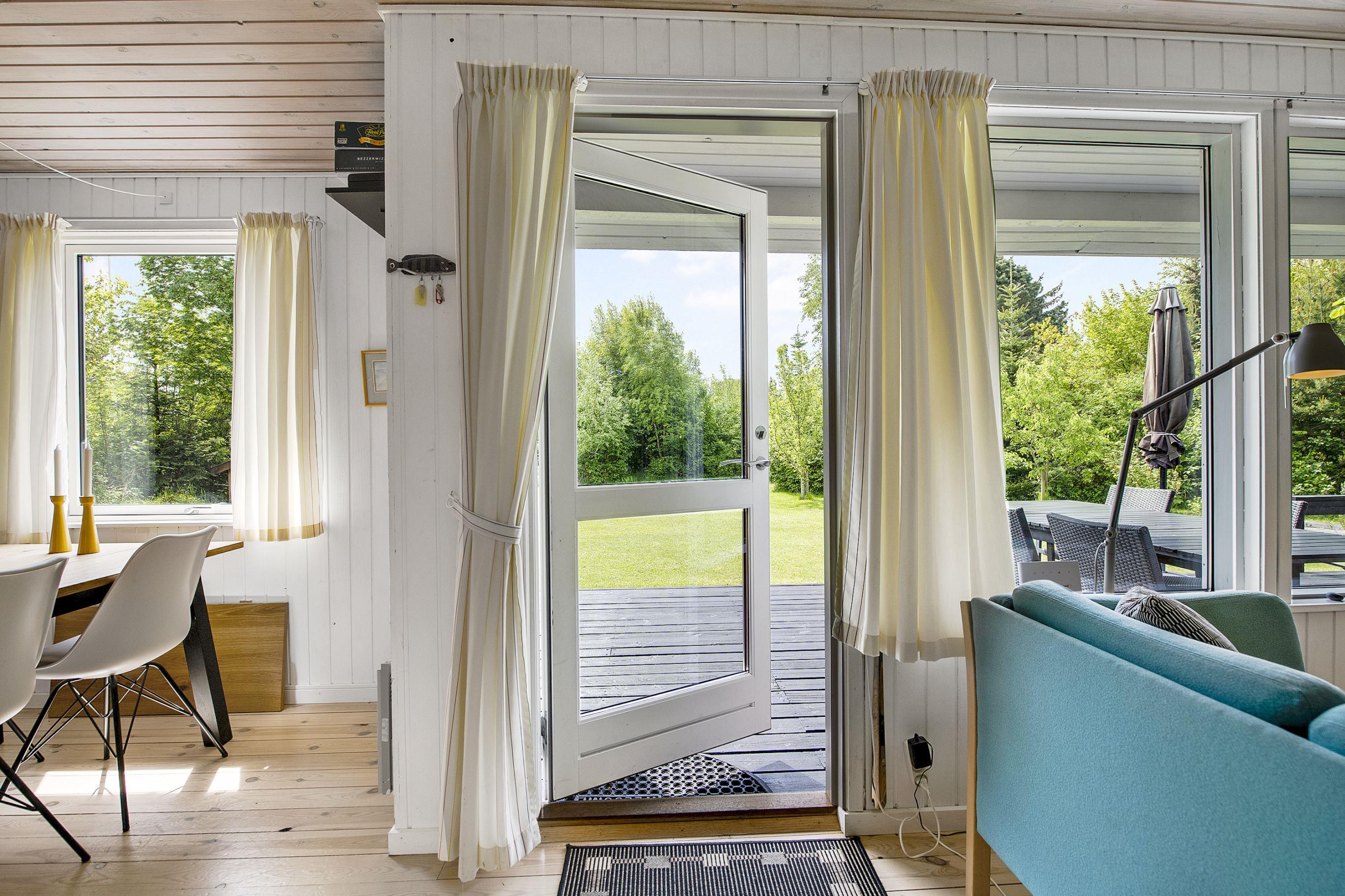 Schönes, traditionelles und modernisiertes Ferienhaus auf einem großen Naturgrundstück am Ende einer geschlossenen Straße und nur 250 Meter von einem der besten Strände der Gegend entfernt. Große, nach Süden ausgerichtete und teilweise überdachte Holzterrasse mit Gartenmöbeln, Sonnenliegen, Sonnenschirm und Grill sowie eine gemütliche, kleinere Holzterrasse nach Norden, wo sich auch ein Fischreinigungsplatz und ein abschließbarer Schuppen befinden. Auf dem Grundstück gibt es auch eine Lagerfeuerstelle und ein schönes Shelter.