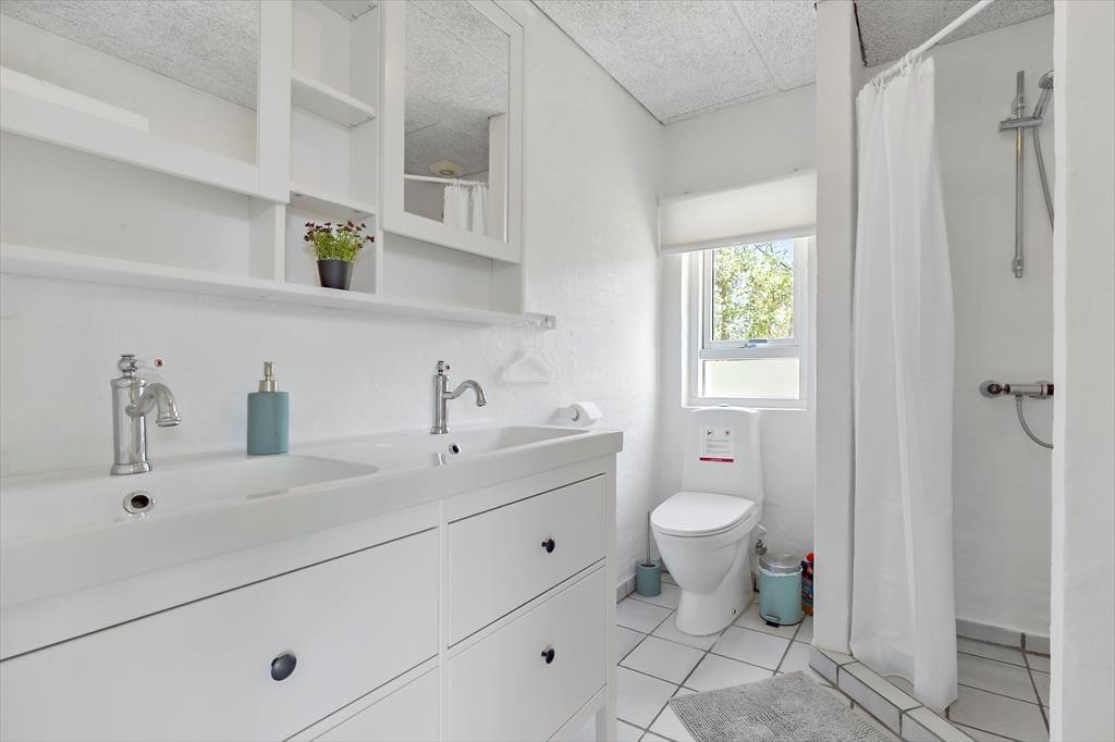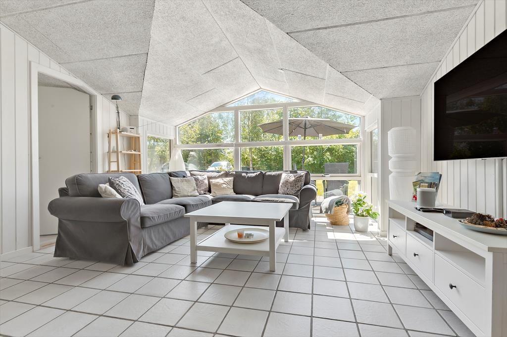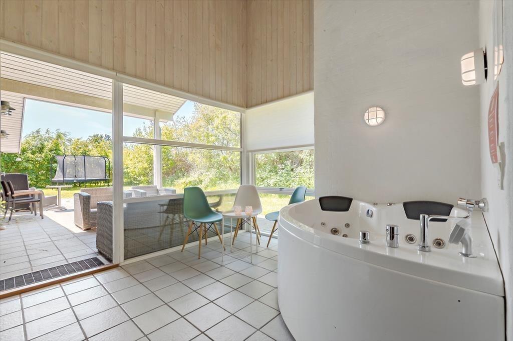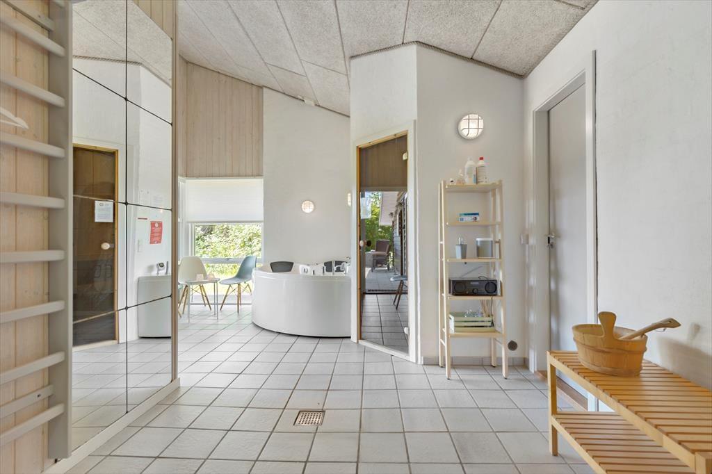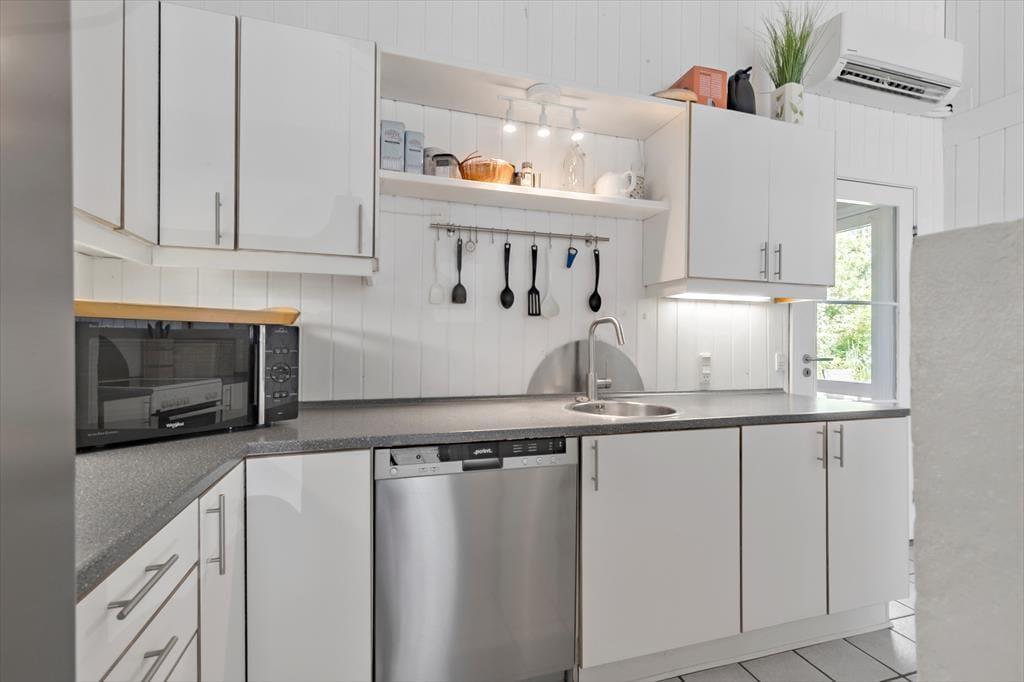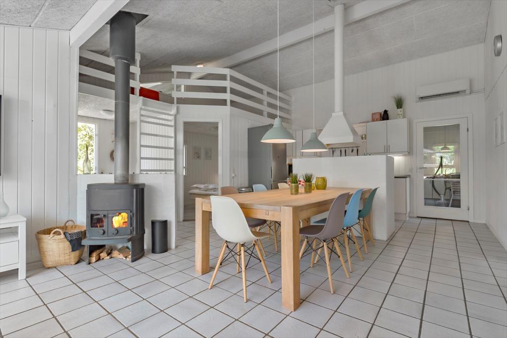 In der Nähe eines der schönsten Strände von Ebeltoft liegt dieses gepflegte und einladende Ferienhaus. Hier erwartet dich Entspannung pur in hellen und gemütlichen Räumen. Das geräumige Wohnzimmer ist mit bequemen Möbeln, einer Wärmepumpe mit Kühlfunktion und einem Kaminofen ausgestattet, der an kalten Tagen für Gemütlichkeit sorgt. Die gut ausgestattete Küche bietet alles, was du brauchst, einschließlich Geschirrspüler, zusätzlichem Kühlschrank und Gefrierschrank. Das Haus verfügt über zwei Badezimmer mit Dusche und Fußbodenheizung sowie einen separaten Wellnessbereich mit Whirlpool und Sauna – ideal, um nach einem erlebnisreichen Tag zu entspannen. Es gibt vier komfortable Schlafzimmer, zwei mit Doppelbetten und zwei mit Einzelbetten, sowie zusätzliche Schlafmöglichkeiten auf dem Dachboden. Ein Hauswirtschaftsraum mit Waschmaschine und Trockner sorgt für zusätzlichen Komfort. Mit der Chromecast- und Apple-TV-Ausstattung kannst du bequem deine Lieblingsserien streamen.