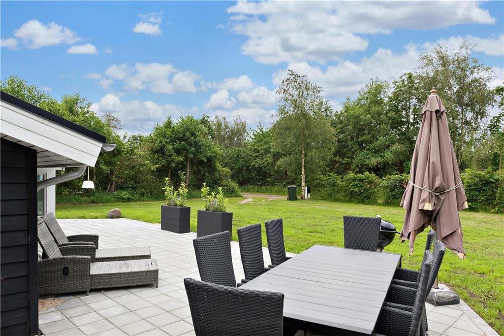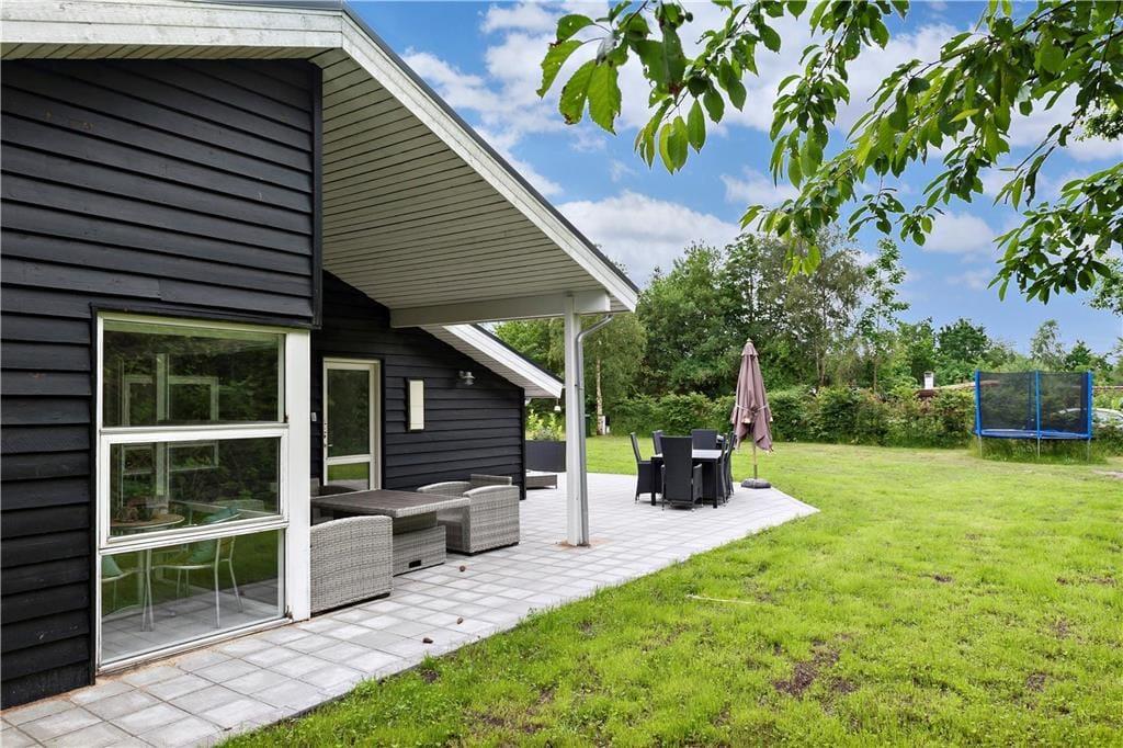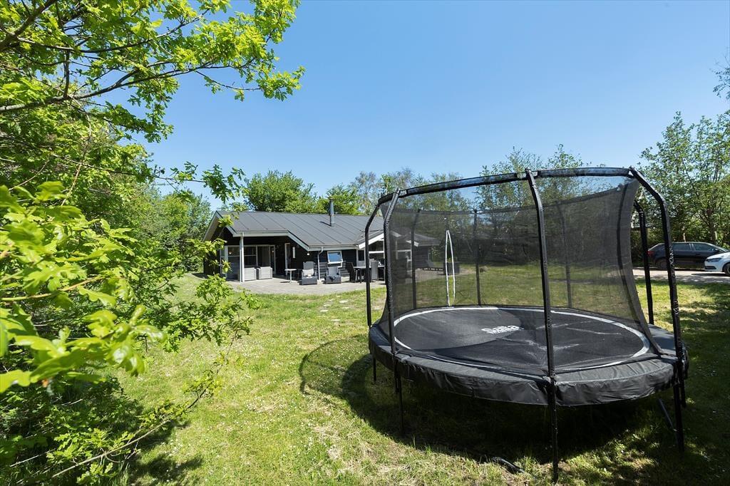 Auf dem wunderschönen Naturgrundstück kann sich die ganze Familie austoben. Der Rasen lädt zum Spielen und zu Ballaktivitäten ein und das Trampolin wird vor allem bei den jüngsten Gästen für Begeisterung sorgen. Die überdachte Terrasse ist mit hochwertigen Gartenmöbeln ausgestattet, sodass ihr gemütliche Abende mit gegrilltem Essen und Blick ins Grüne genießen könnt. In nur fünf Minuten seid ihr zu Fuß am Strand, um ein Bad in der warmen Sonne oder im kühlen Wasser zu genießen.