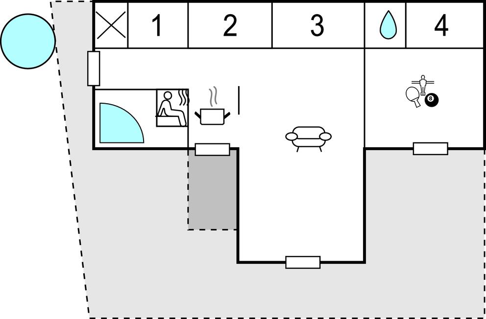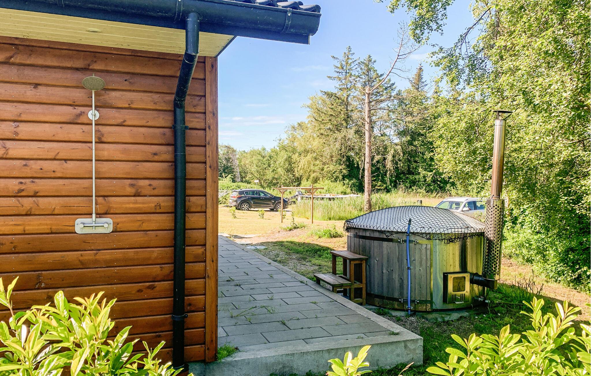 Im Freien erwarten Sie schöne Terrassen mit einem Wildnisbad und einer Dusche - ideal, wenn Sie vom Schwimmen oder vom Strand nach Hause kommen. Das Grundstück ist schön eben und bietet sowohl Platz zum Spielen als auch für Ballspiele und bietet einen schönen Blick.