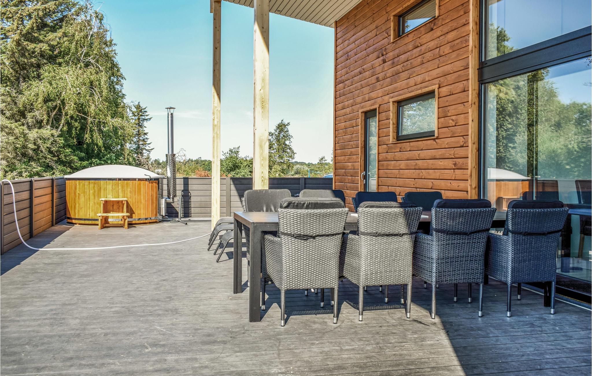 Modernes Ferienhaus mit gut gewählter Einrichtung. Genießen Sie in ihm z. B. den Komfort einer Bodenheizung, zwei schöne Badezimmer und vier behagliche Schlafzimmer. Ein Pooltisch sorgt im Inneren für Unterhaltung, für draußen sind Terrasse, Holzbadewanne und eine Außendusche vorhanden. Das Grundstück ist eben und bietet Platz für Spiele wie Aussicht auf das Meer. Am nahe Strand ist das Küstenfischen sehr populär. In ca. 10 Minuten ist Ebeltoft erreicht. In der Nähe vom Ferienhaus können Sie in Wäldern spazieren und natürlich am Strand entlang wandern.