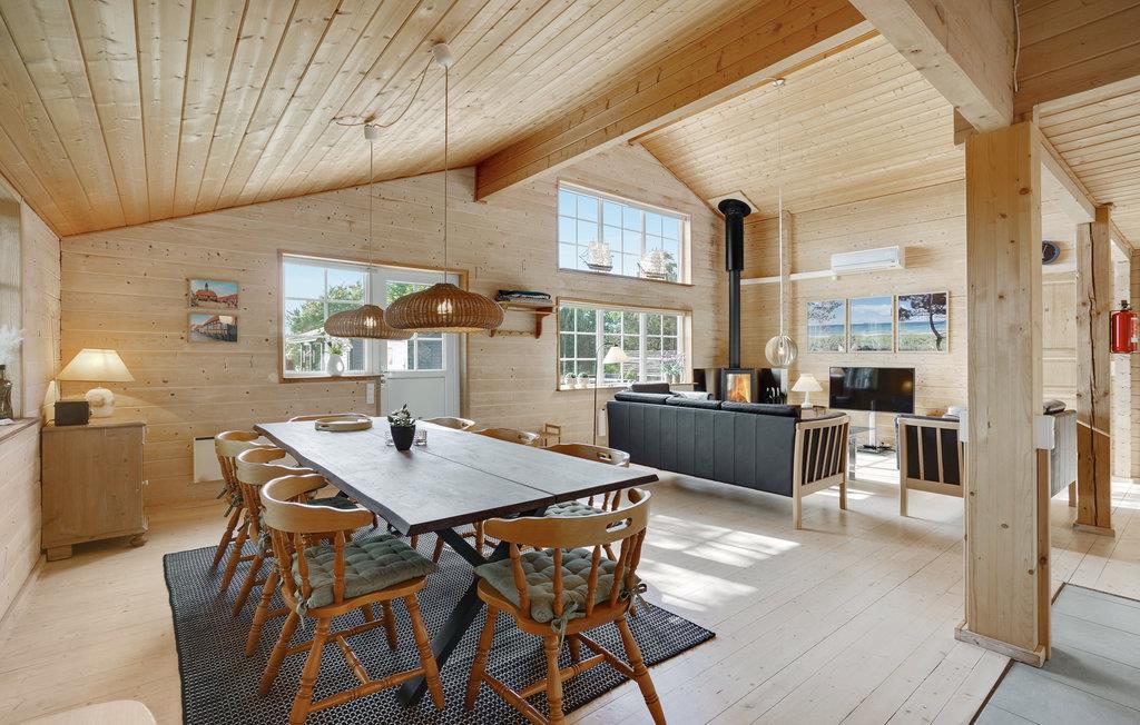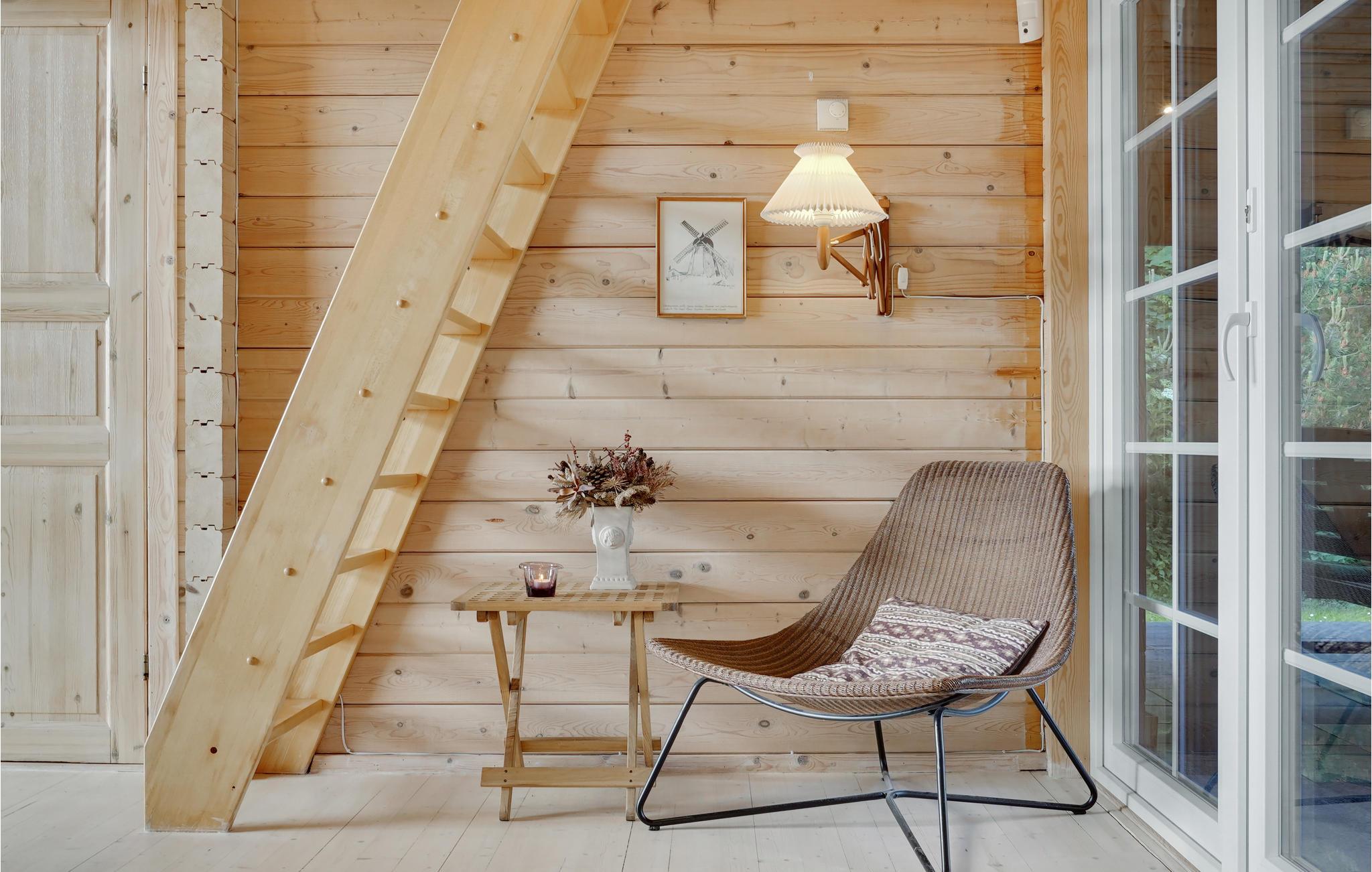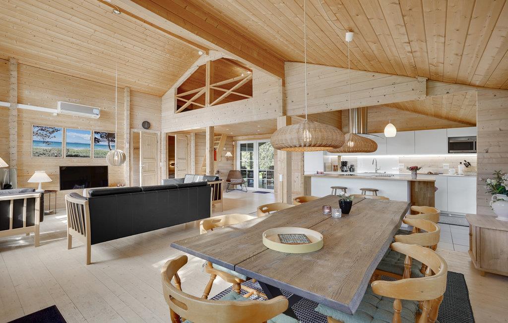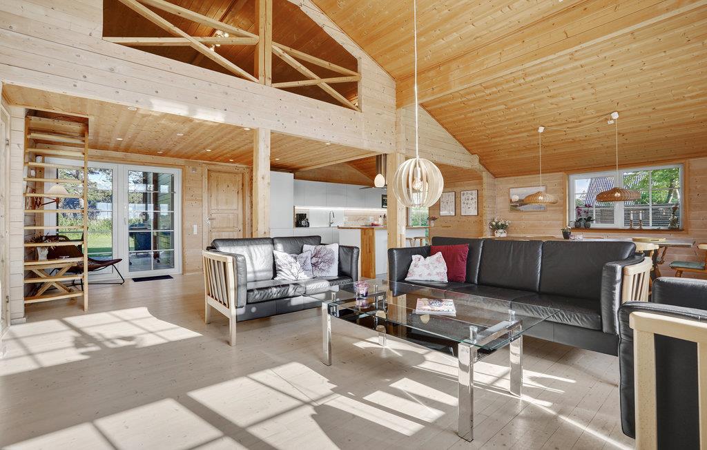 Das charmante Ferienhaus ist spannend eingerichtet und sehr geräumig, sodass zwei Familien dort gleichzeitig Ferien machen können. Das Haus verfügt über drei Schlafzimmer und ein offenes, mit der Küche kombiniertes, Wohnzimmer, von wo aus man hinauf auf den großen offenen Boden mit Stehhöhe gelangen kann. Hier treffen Sie auf beste Materialien und können sich wirklich wohlfühlen. Es gibt auch zwei schöne Badezimmer mit moderner Ausstattung, eines mit Badewanne, die zum Entspannen einlädt. Die Terrasse vor dem Wohnbereich liegt teilweise unter einem Dach und bietet so die Möglichkeit, bei jedem Wetter draußen zu sein.