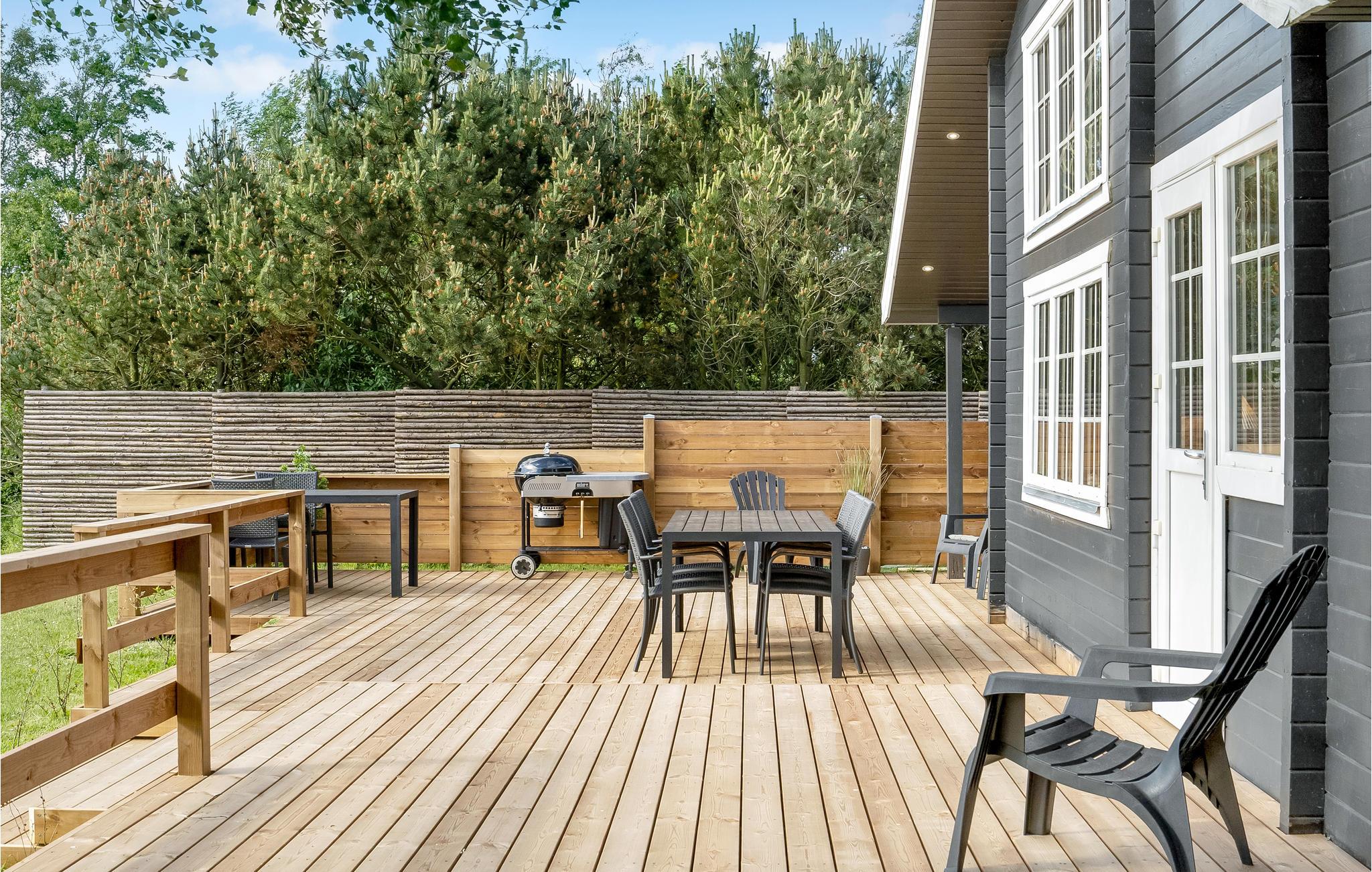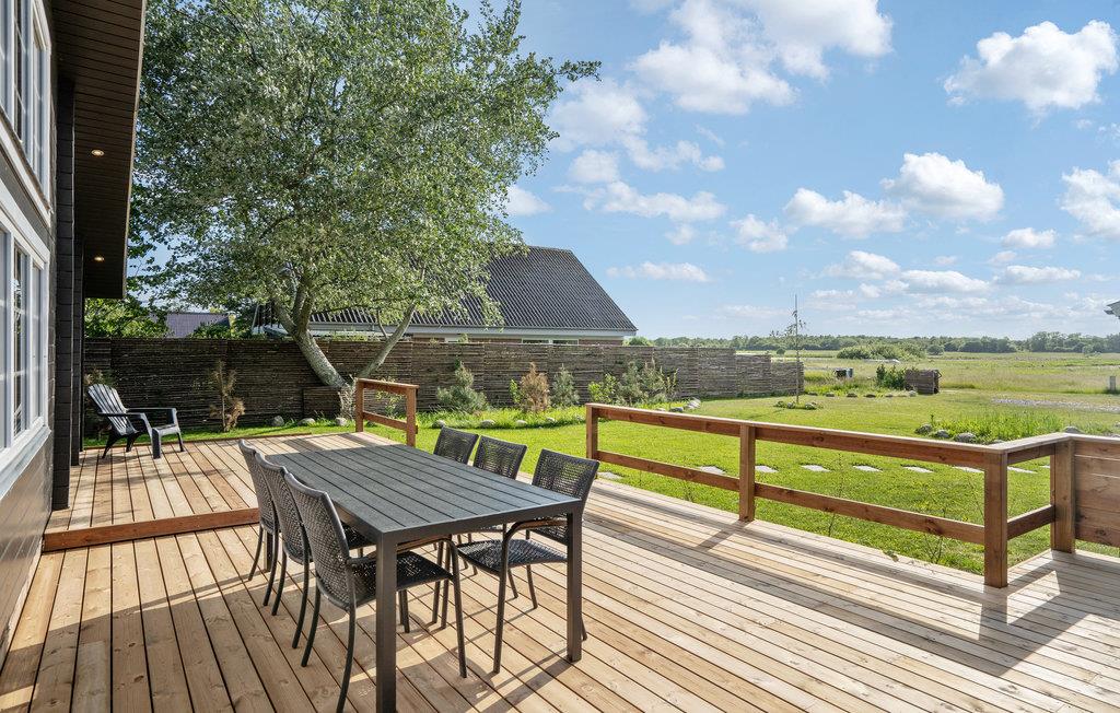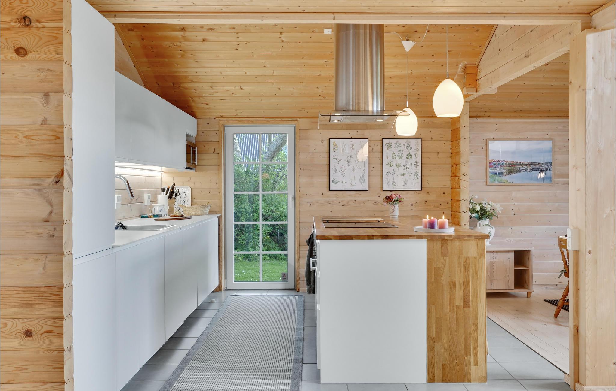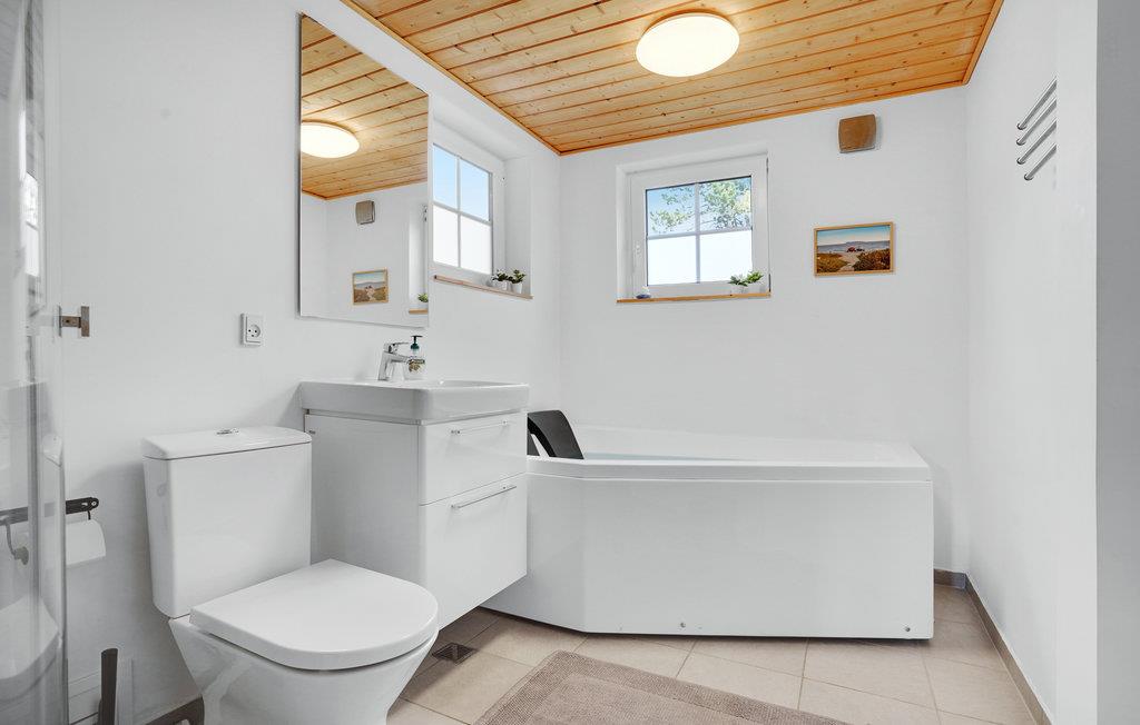 Das charmante Ferienhaus ist spannend eingerichtet und sehr geräumig, sodass zwei Familien dort gleichzeitig Ferien machen können. Das Haus verfügt über drei Schlafzimmer und ein offenes, mit der Küche kombiniertes, Wohnzimmer, von wo aus man hinauf auf den großen offenen Boden mit Stehhöhe gelangen kann. Hier treffen Sie auf beste Materialien und können sich wirklich wohlfühlen. Es gibt auch zwei schöne Badezimmer mit moderner Ausstattung, eines mit Badewanne, die zum Entspannen einlädt. Die Terrasse vor dem Wohnbereich liegt teilweise unter einem Dach und bietet so die Möglichkeit, bei jedem Wetter draußen zu sein.