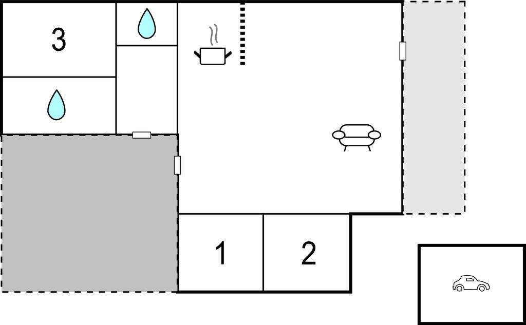 - WC mit warmem und kaltem Wasser, Dusche und Badewanne