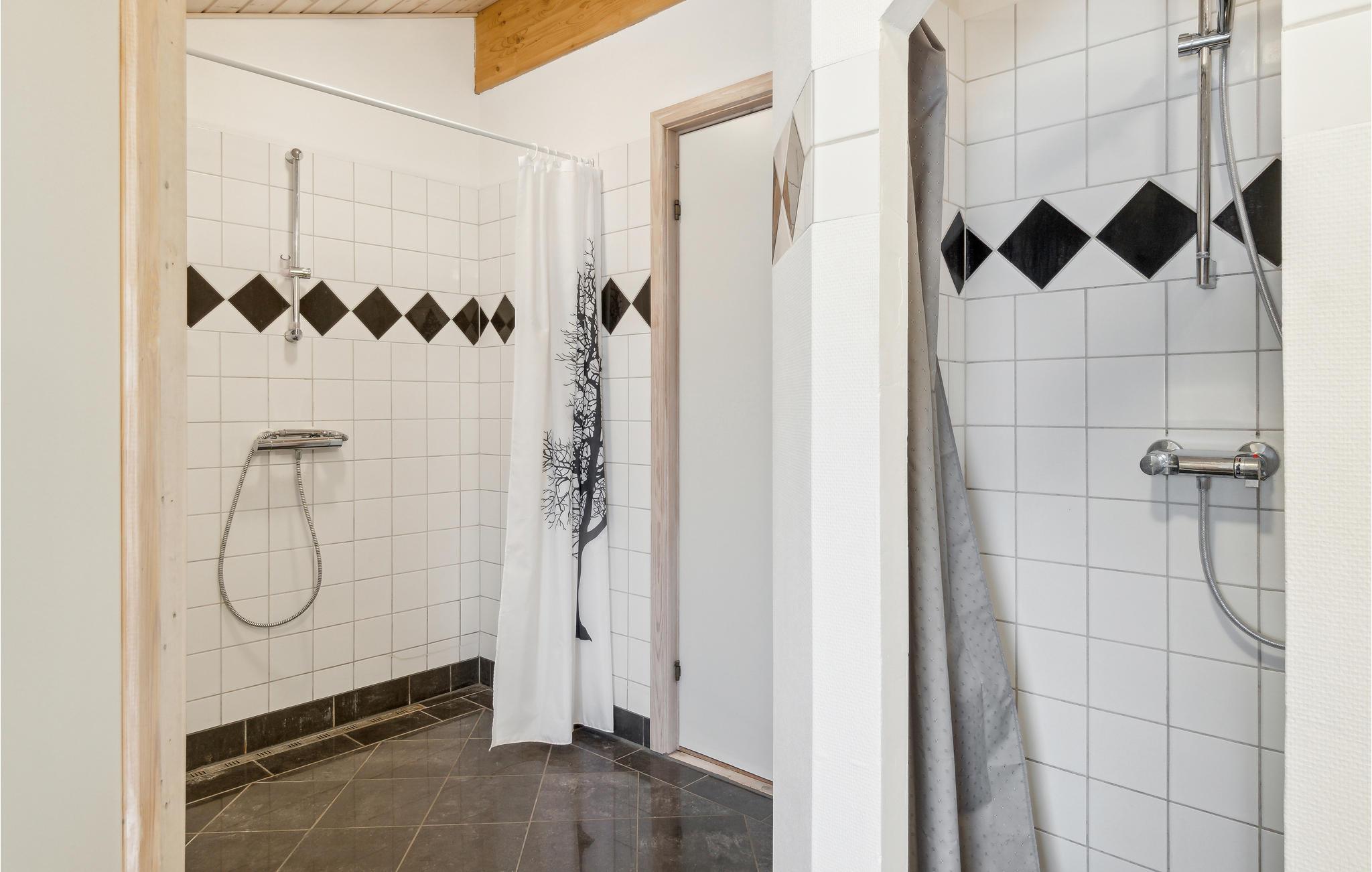 Sehr praktisches Ferienhaus in einzigartiger Lage, in der ersten Reihe zum Badestrand. Von Haus und Grundstück besteht Panoramaaussicht auf das Meer und hinüber zur Insel Hjelm. Hier können Sie windsurfen, angeln und mehr. Eine schöne Wohnküche erwartet die Gäste im Inneren des Hauses, auch zwei Badezimmer. Es eignet sich daher auch für zwei Familien. Entspannen Sie besonders im großen Whirlpool. Terrasse und Grund sind großzügig dimensioniert und für allerlei Spiele geeignet. Die Schlafgelegenheiten auf dem Hems eignen sich am besten für Kinder.