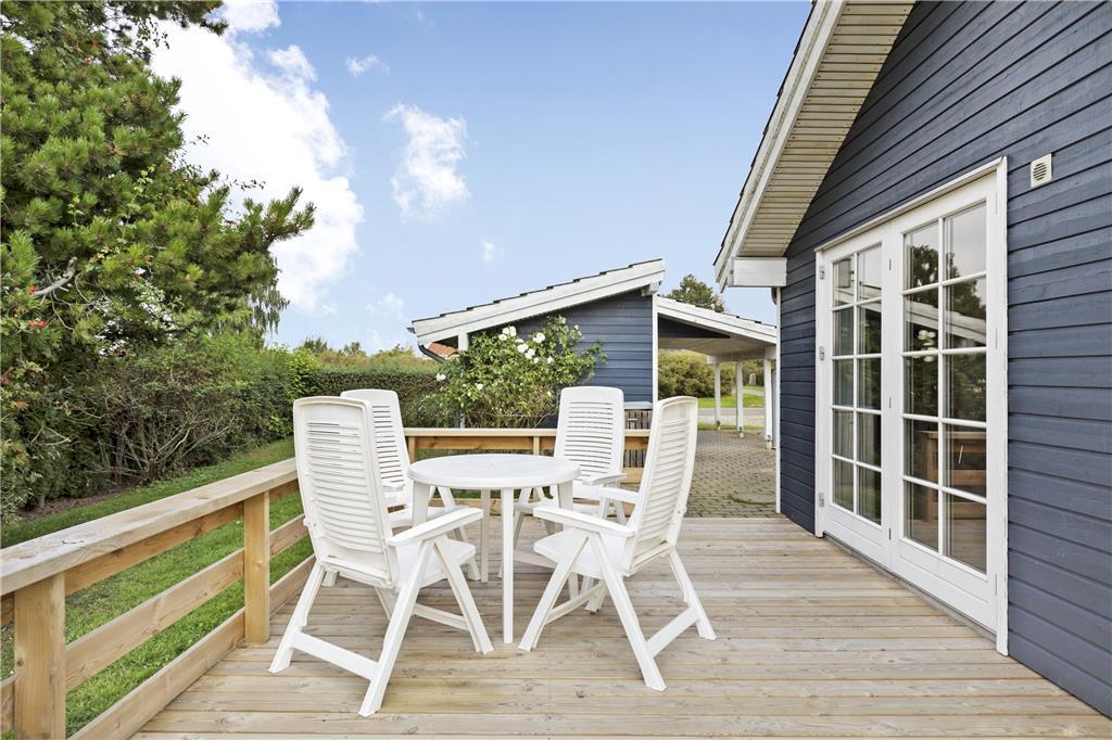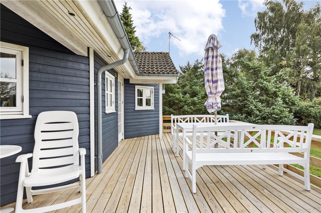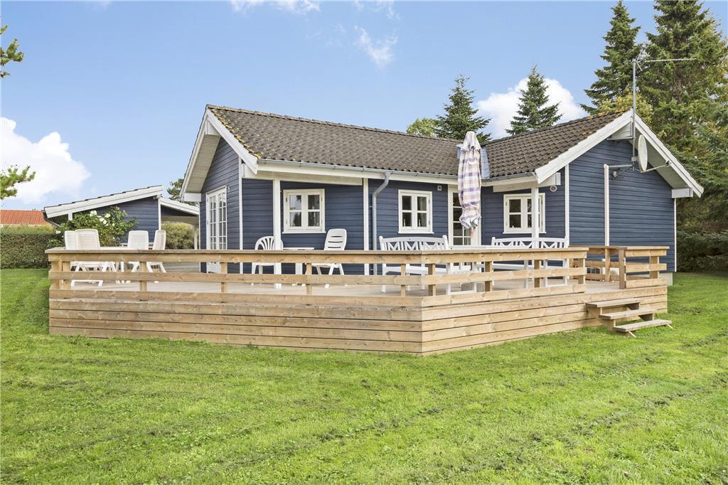 Das schöne Ferienhaus liegt auf einem 710 m² großen Grundstück. Eine große Holzterrasse umgibt nahezu das gesamte Haus und bietet Ihnen somit beste Möglichkeiten, den gesamten Tag hindurch die Sonnenstrahlen zu genießen und gemütliche Stunden während des Sonnenunterganges zu verbringen. Gartenmöbel und ein Grill stehen selbstverständlich am Haus für Sie bereit.