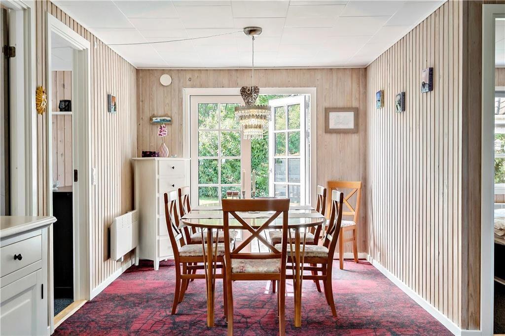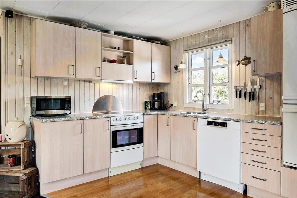 Von der roten Holzfassade mit den weißen Sprossenfenstern bis zur gemütlichen Inneneinrichtung ist das Haus gepflegt und gut erhalten. Im Inneren stehen Ihnen 79 m² zur Verfügung, auf denen sechs Personen einen angenehmen Urlaub verbringen können. Nachts können Sie sich auf drei Schlafzimmer verteilen, die alle mit Doppelbetten ausgestattet sind, während Sie tagsüber im Wohnzimmer entspannen können. Hier steht der Holzofen bereit wie auch die Wärmepumpe, die sowohl kühlen als auch heizen kann. Die gut ausgestattete Küche ist zum Wohnzimmer hin offen, während ein Badezimmer mit Dusche und Fußbodenheizung ebenfalls zu Ihrer Verfügung steht. Im Schuppen, der an den Carport angebaut ist, stehen eine Waschmaschine und ein Wäschetrockner für Sie bereit, und für Angler gibt es einen extra Tisch.