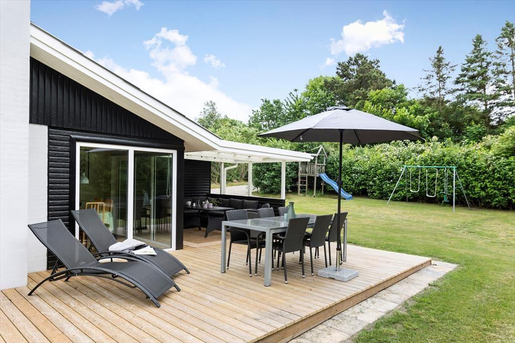 Vom Wohnzimmer aus hast du direkten Zugang zu nicht nur einer, sondern gleich zwei schönen Holzterrassen, sodass du je nach Sonnenstand und Windverhältnissen den besten Aufenthaltsort wählen kannst. Die südwestlich ausgerichtete Terrasse ist teilweise überdacht, sodass ein vorbeiziehender Sommerregen kein Hindernis ist, das Leben im Freien zu genießen. Bei fast jedem Wetter werden die Kinder es lieben, auf dem Rasen zu spielen, zu schaukeln, auf dem Trampolin zu springen und Sandburgen zu bauen. Und die ganze Familie kann den Tag in der Dämmerung ausklingen lassen, indem sie sich am Lagerfeuer versammelt, um Stockbrot zu rösten und Geschichten zu erzählen.