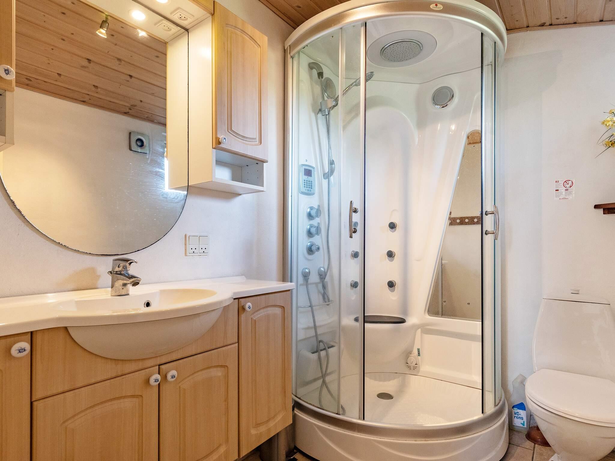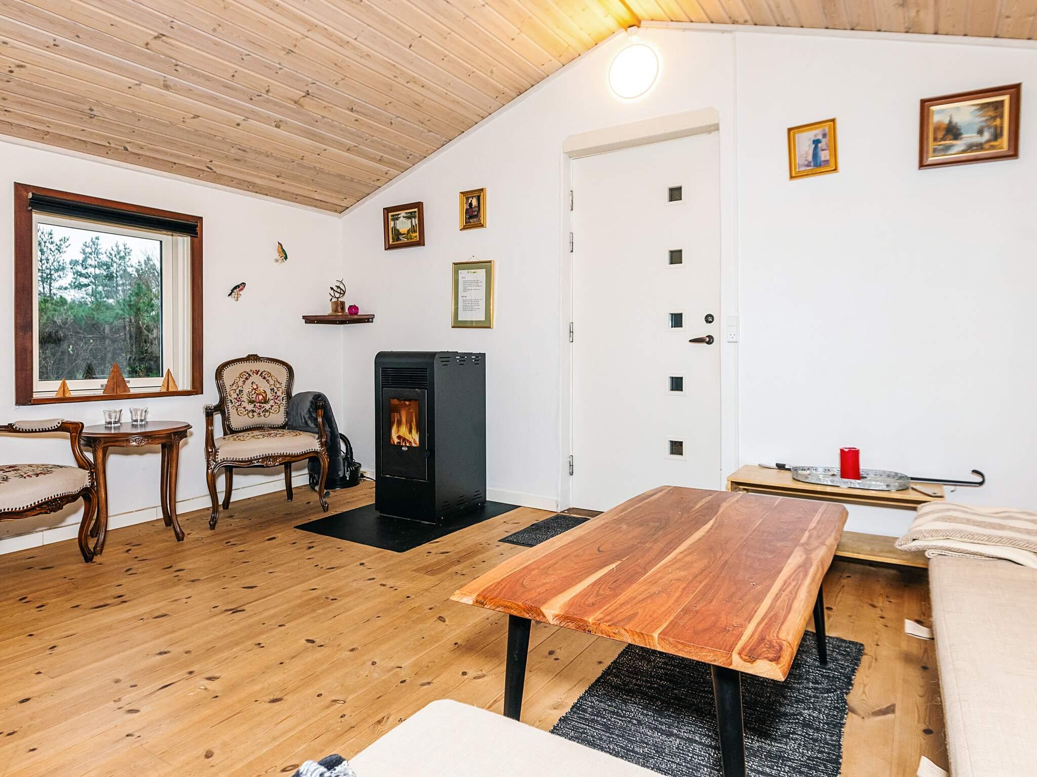 Mit seinem offene Küchen-/Wohnbereich bietet das Ferienhaus viel Platz für das Familienleben und für gemeinsame Aktivitäten. Von der offen integrierten Küche aus hat man sowohl Zugang zu einem der Schlafzimmer als auch zur Ostterrasse für das Frühstück im Freien. Außerdem Badezimmer mit Dusche, Fußbodenheizung und Dampfkabine im Haus. Darüber hinaus gibt es oben unter der Dachschräge ein Schlafzimmer sowie einen offenen Hems. Für kühlere Tage gibt es eine Wärmepumpe und einen Pelletofen im Haus, für den man 6 mm Pellets verwendet.
